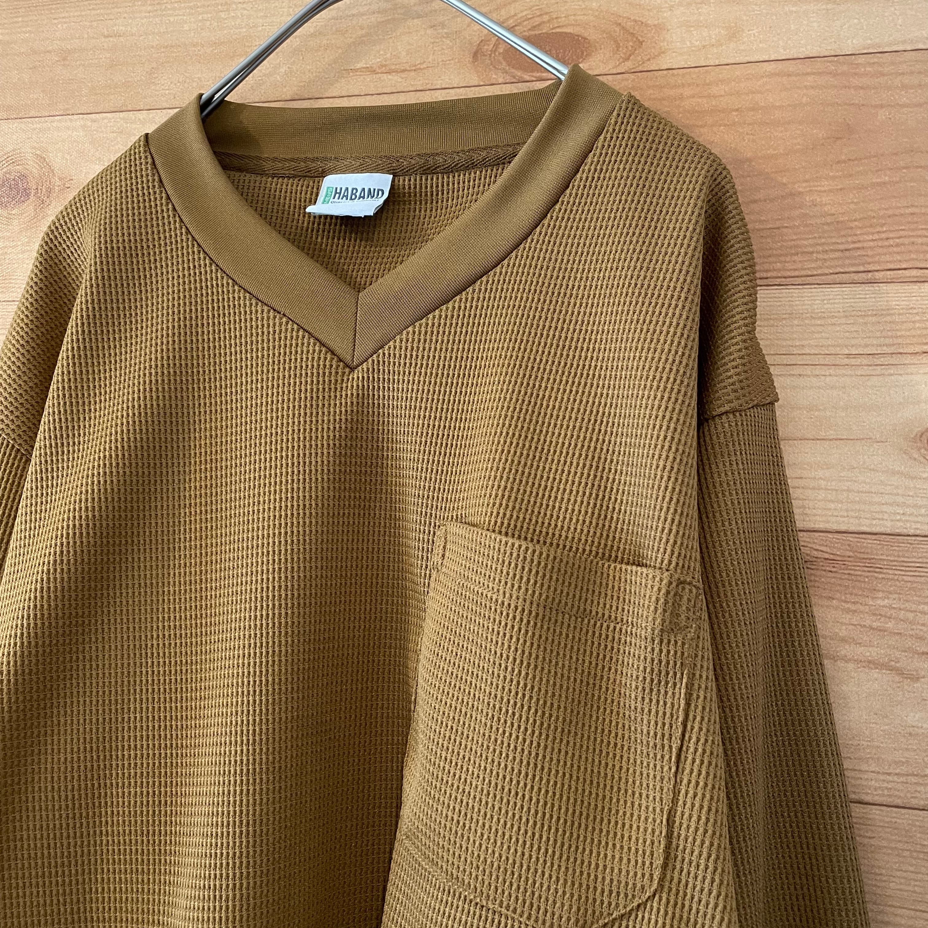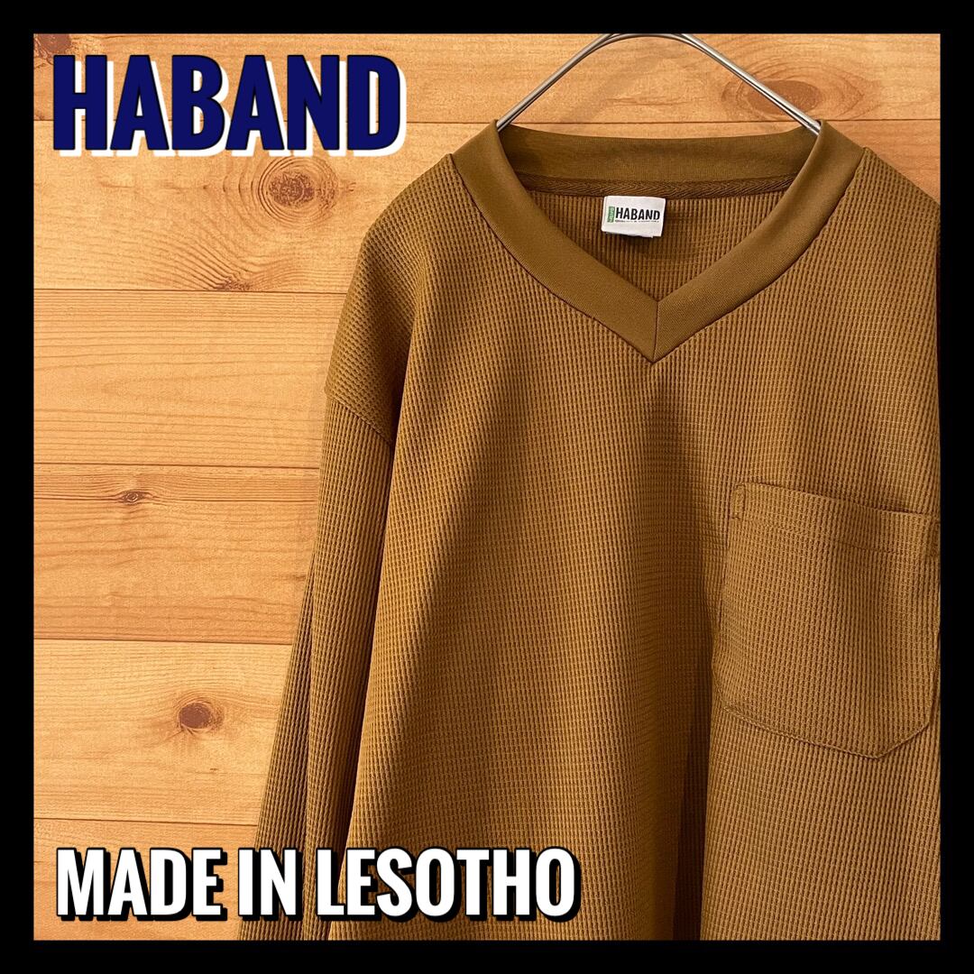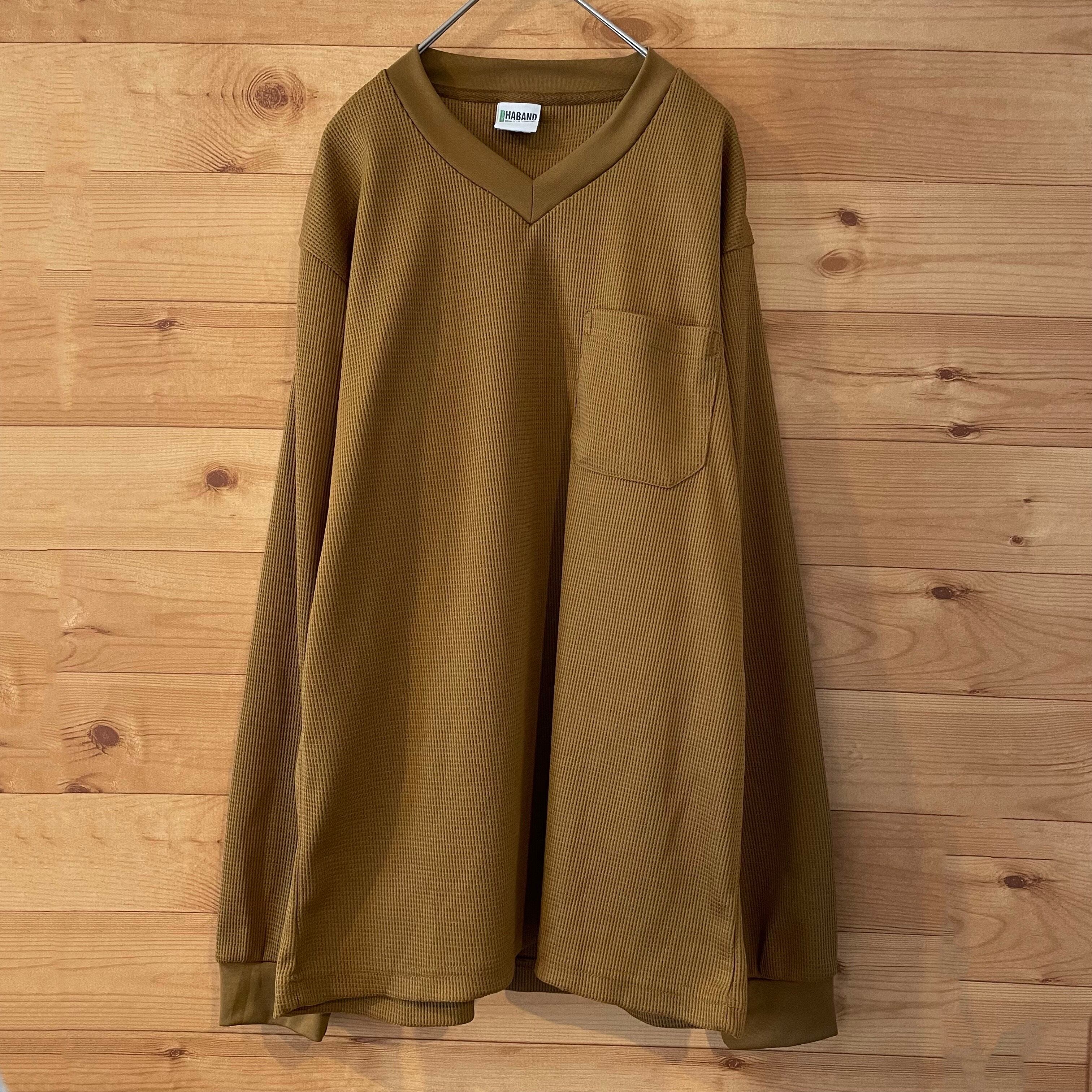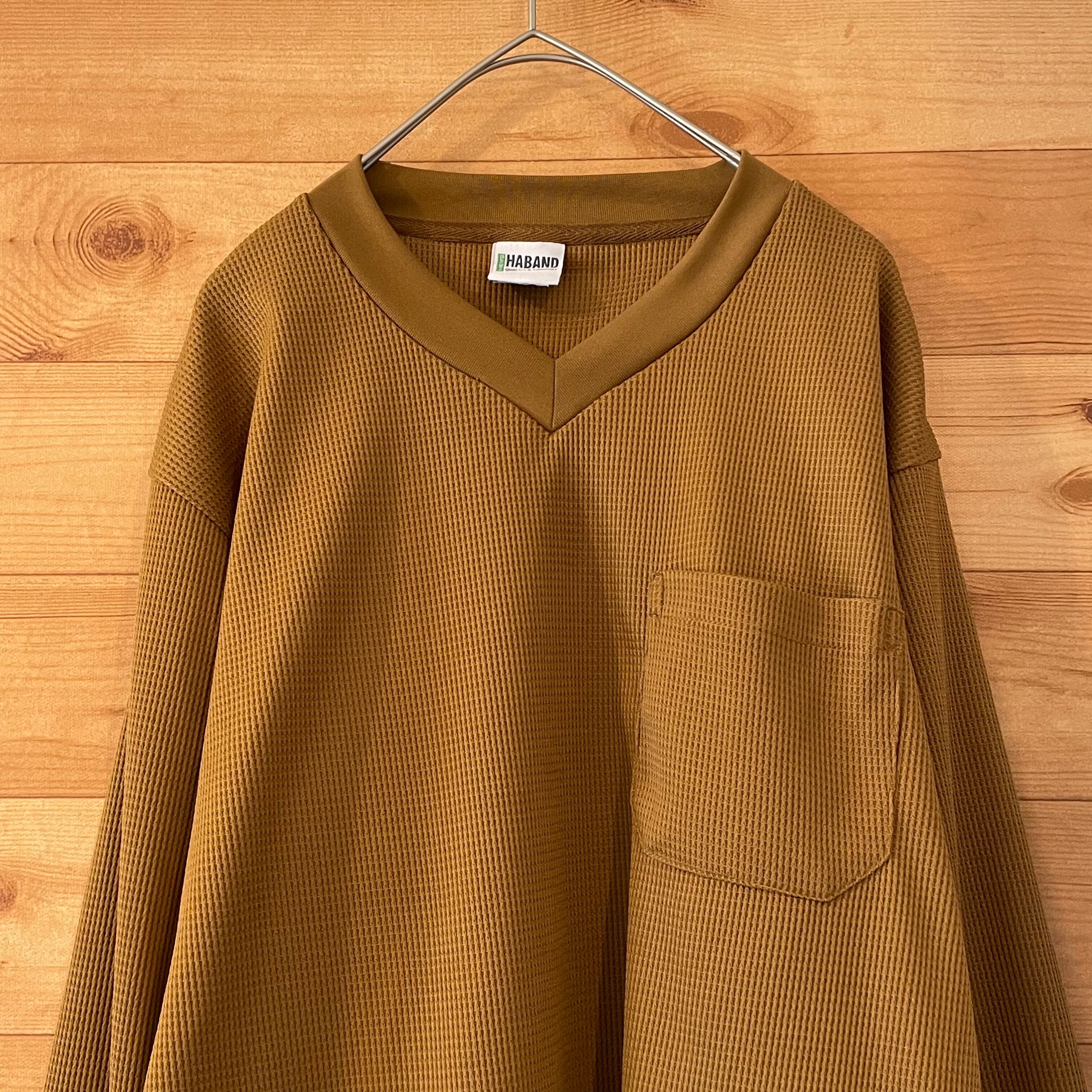【HABAND】 長袖 シャツ Vネック ワッフル生地 アメリカ古着