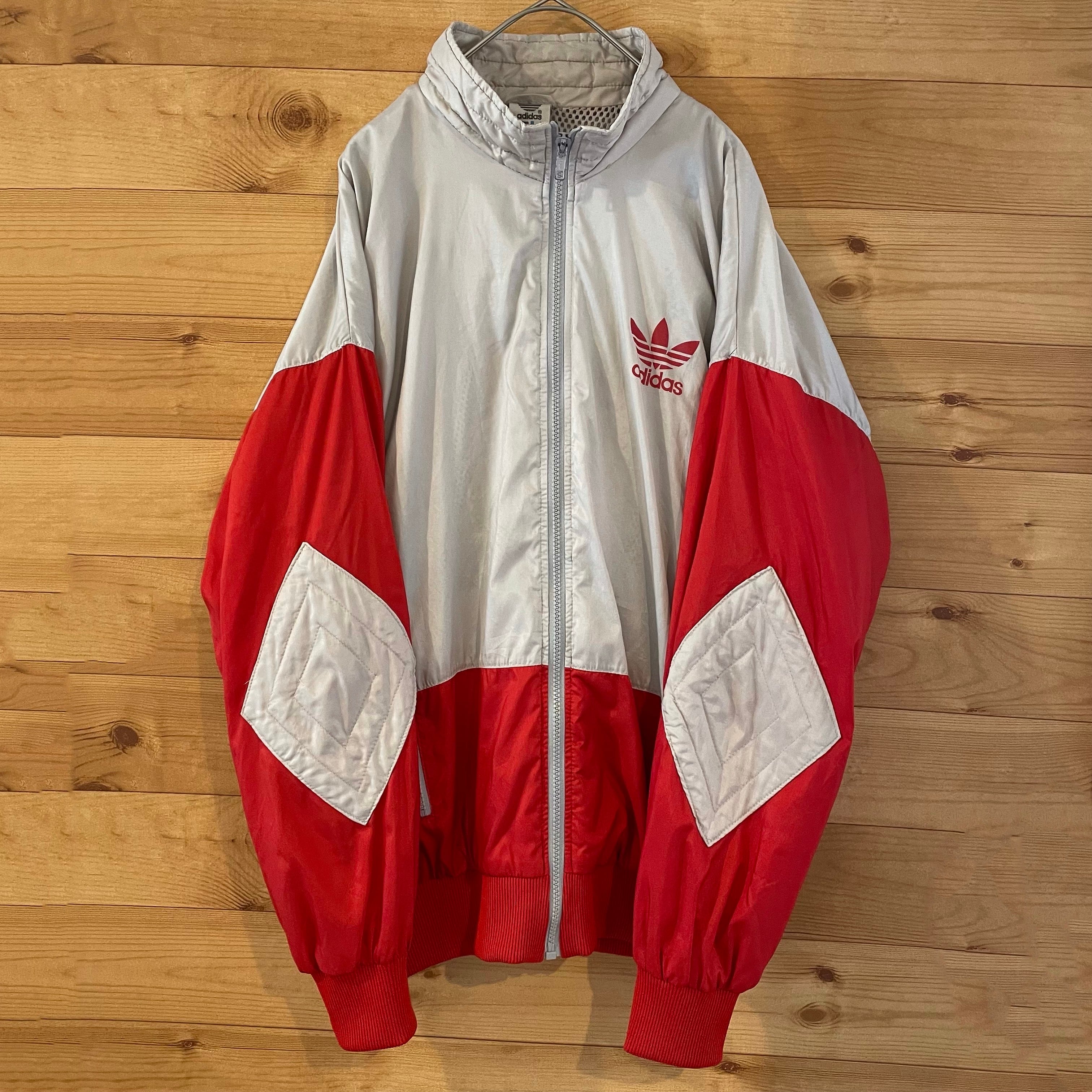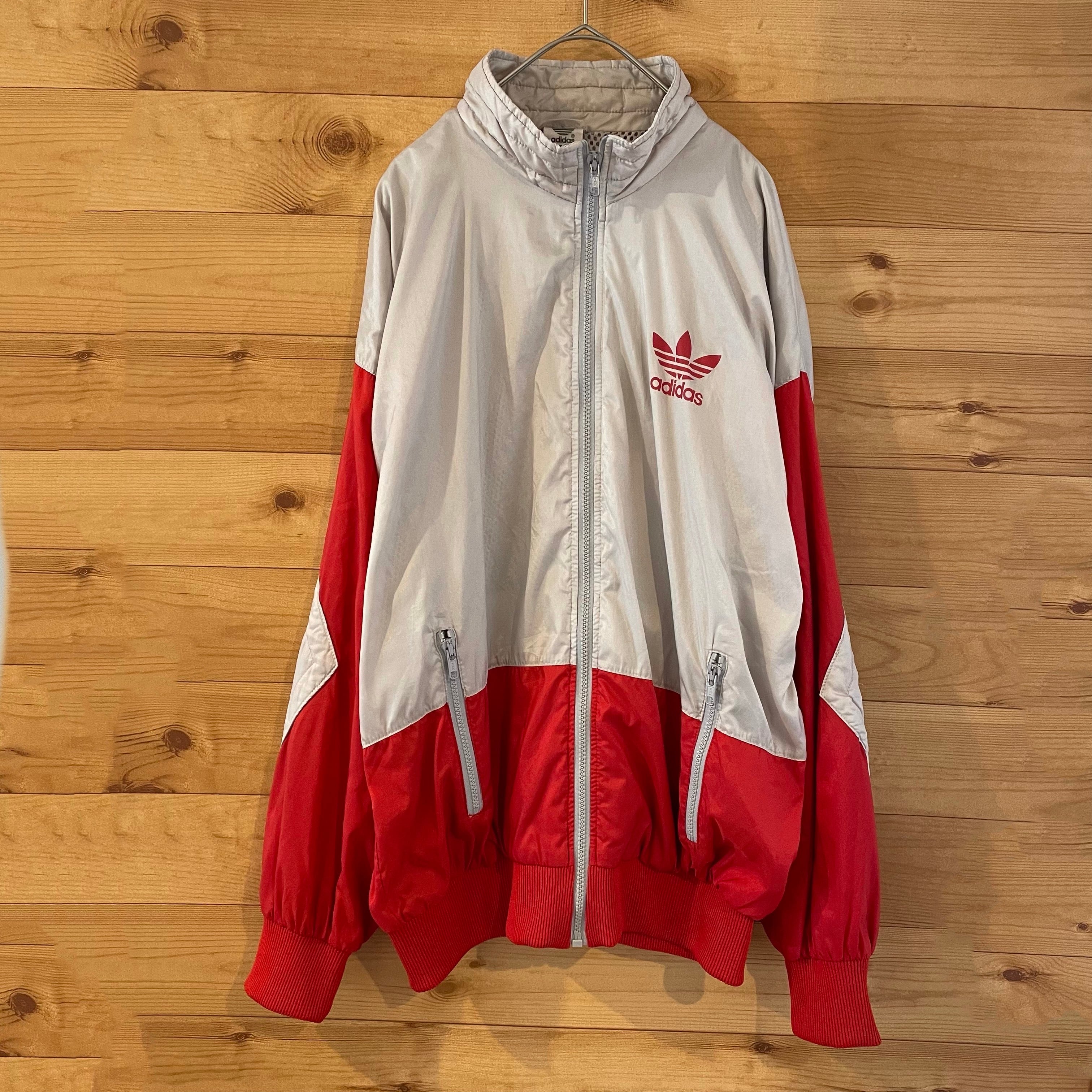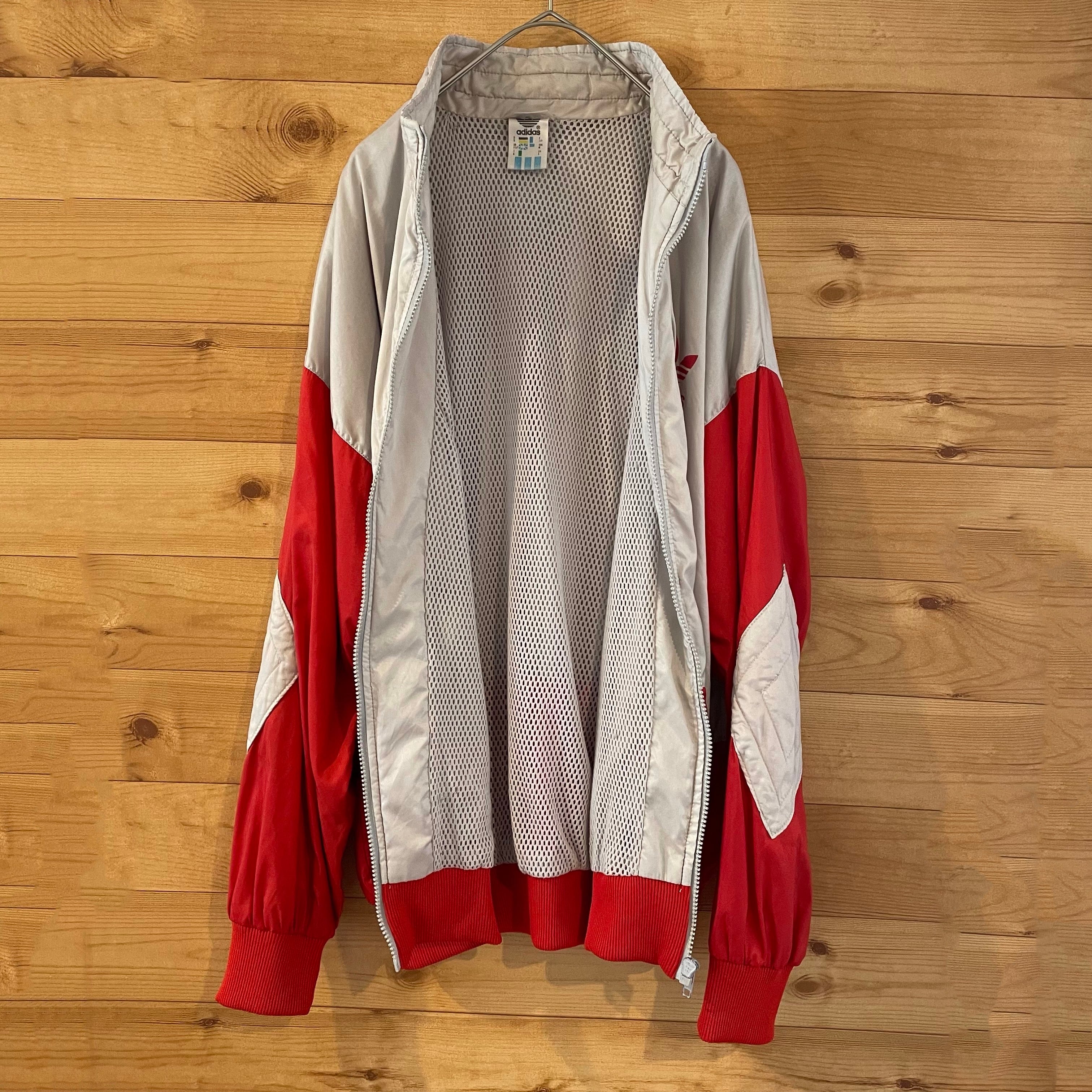 【adidas】80s 万国旗タグ ナイロンジャケット トレフォイル M バックプリント アディダス ビンテージ アメリカ古着