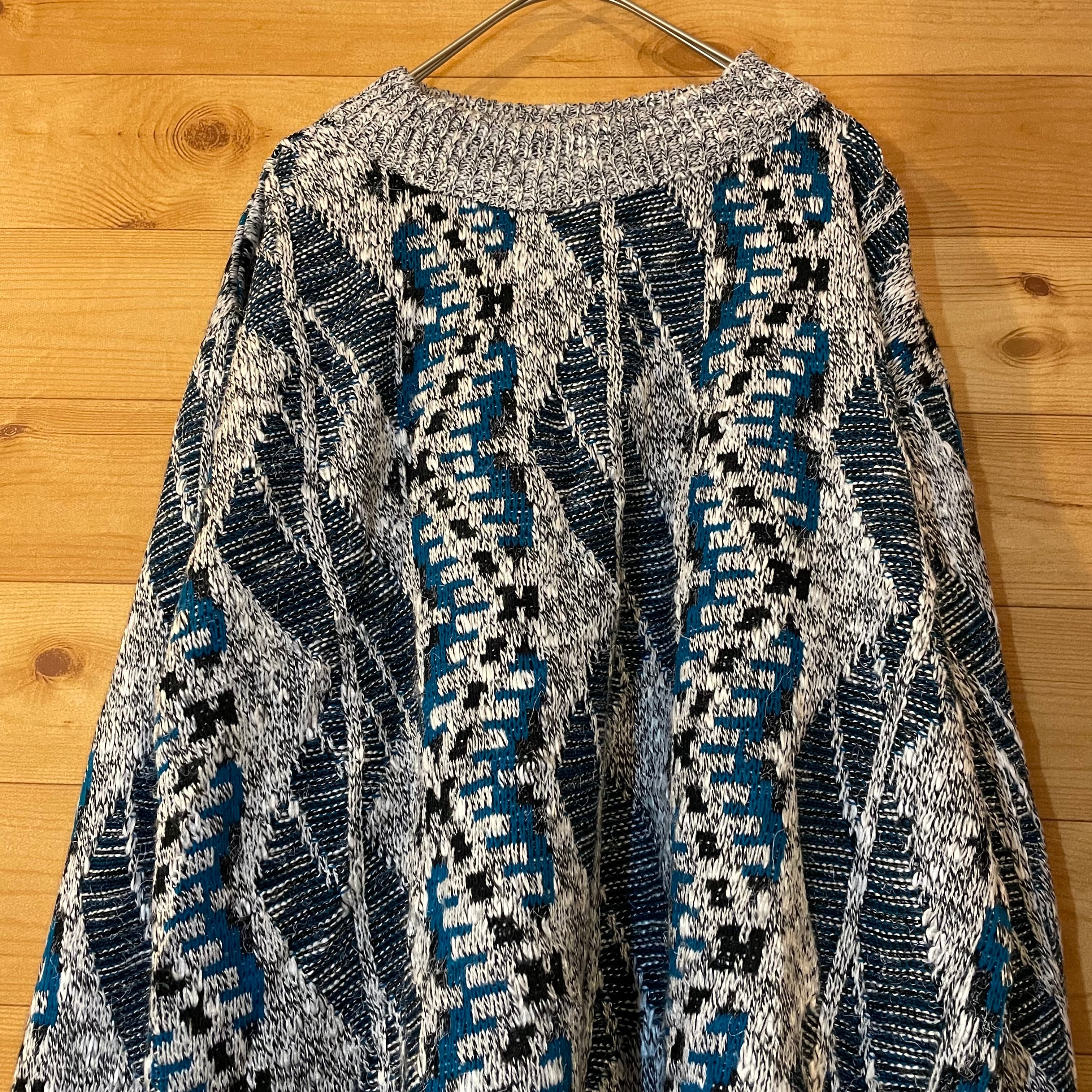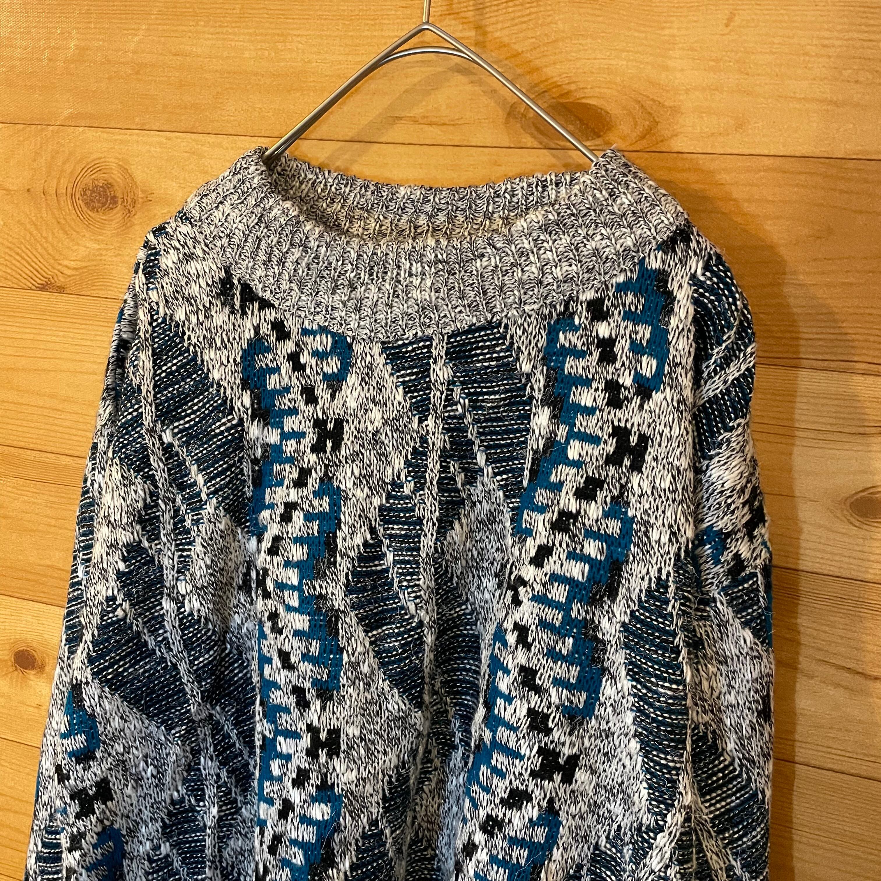 【TODAYS NEWS】柄ニット セーター 個性的 アクリル L US古着