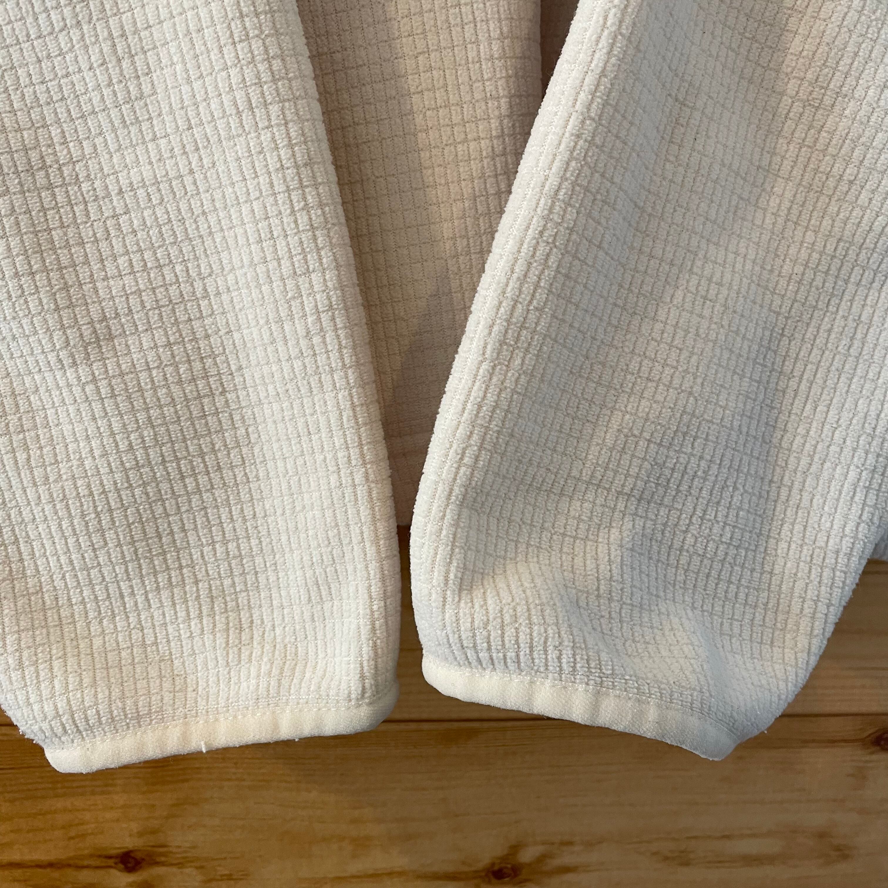 ラグランスリーブで胸にワンポイントでハーフドームの刺繍ロゴが入っています。表はワッフル生地、裏起毛で暖かいです。