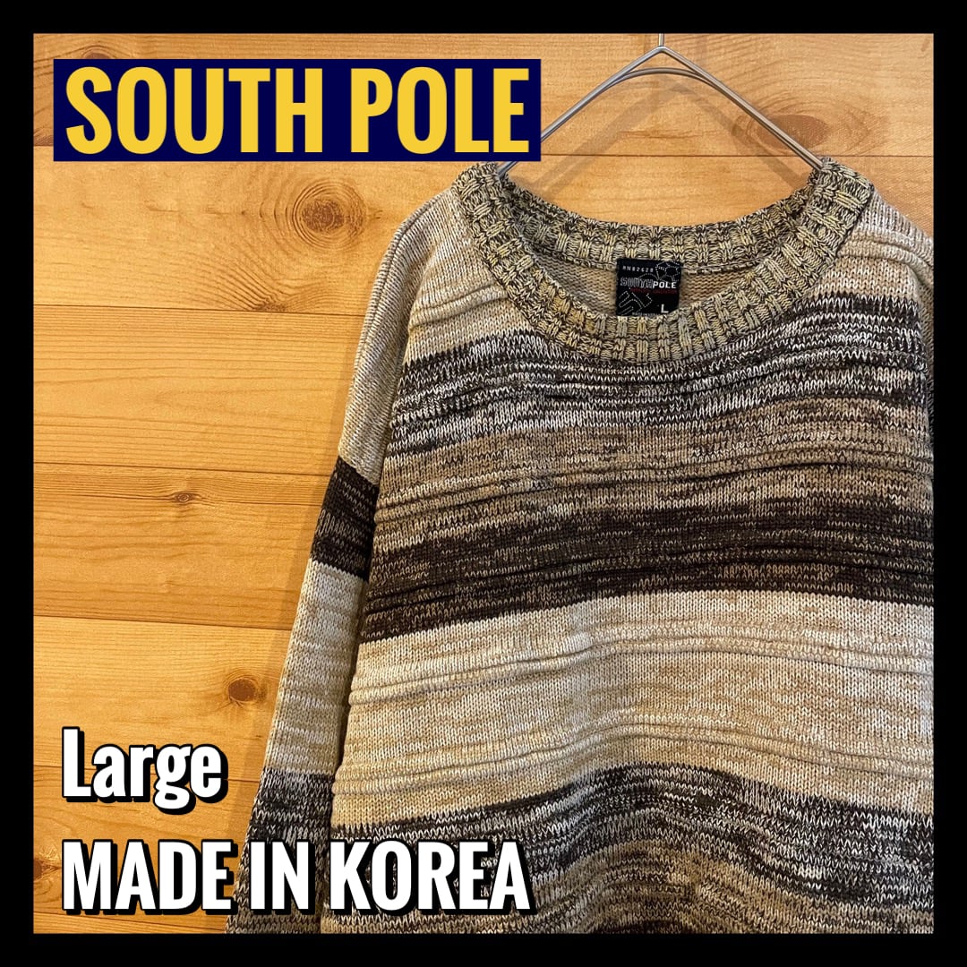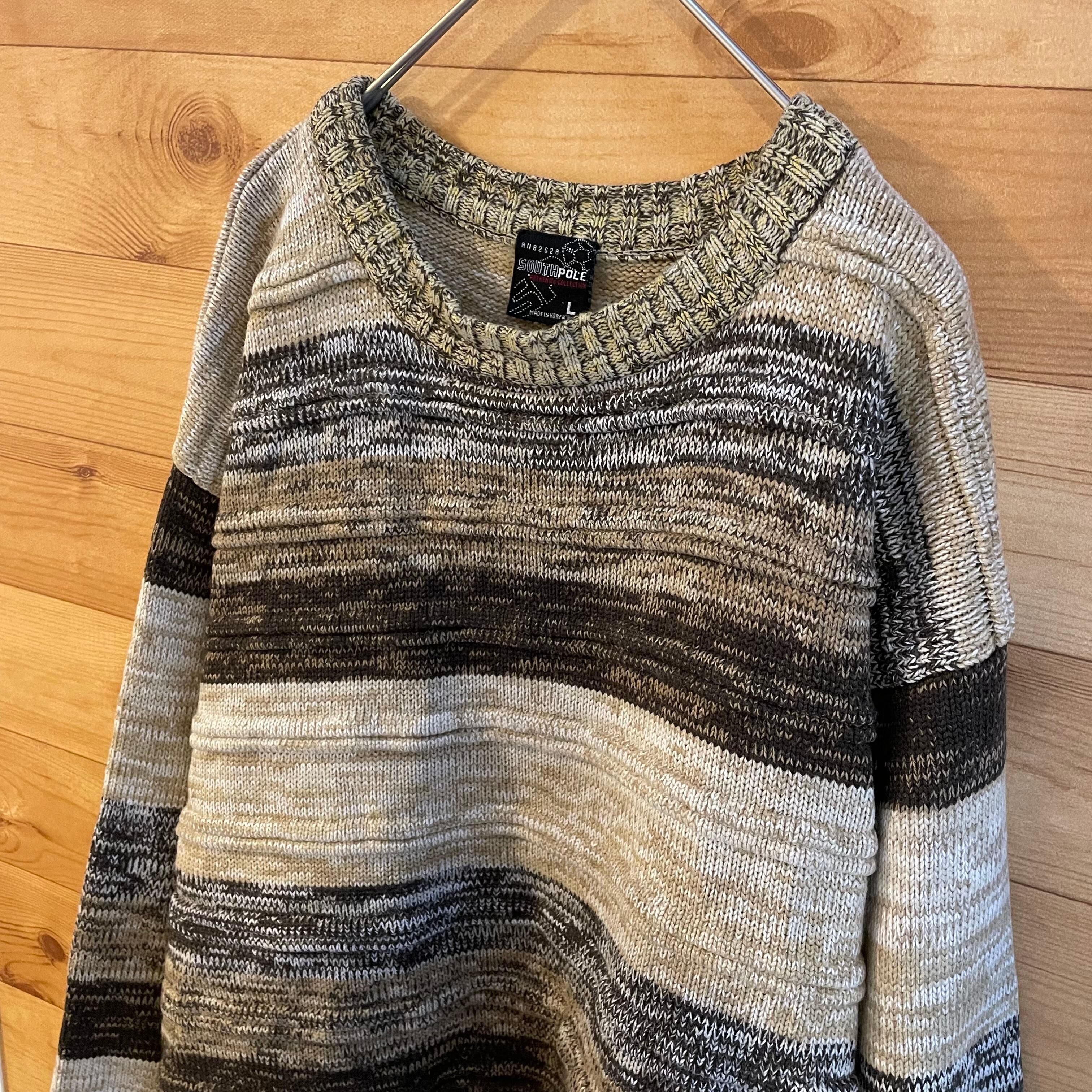 【SOUTHPOLE】韓国製 立体 ボーダー 柄ニット セーター L US古着