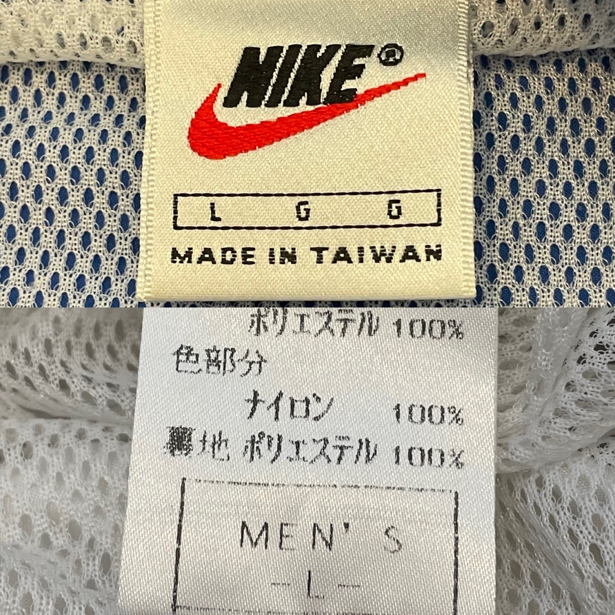 白タグで台湾製、胸にスウッシュの刺繍ロゴ、90年代かと思います。