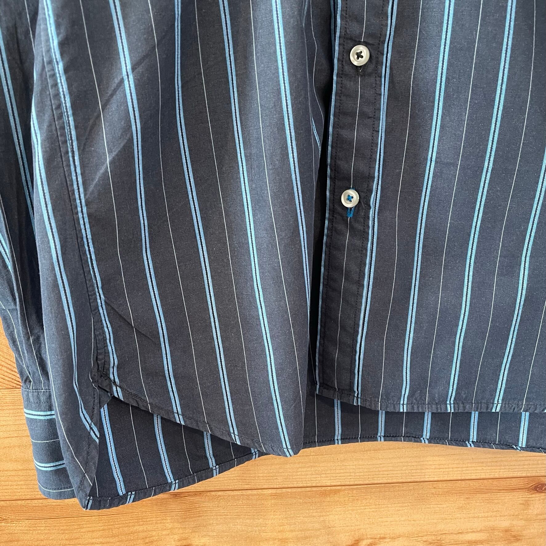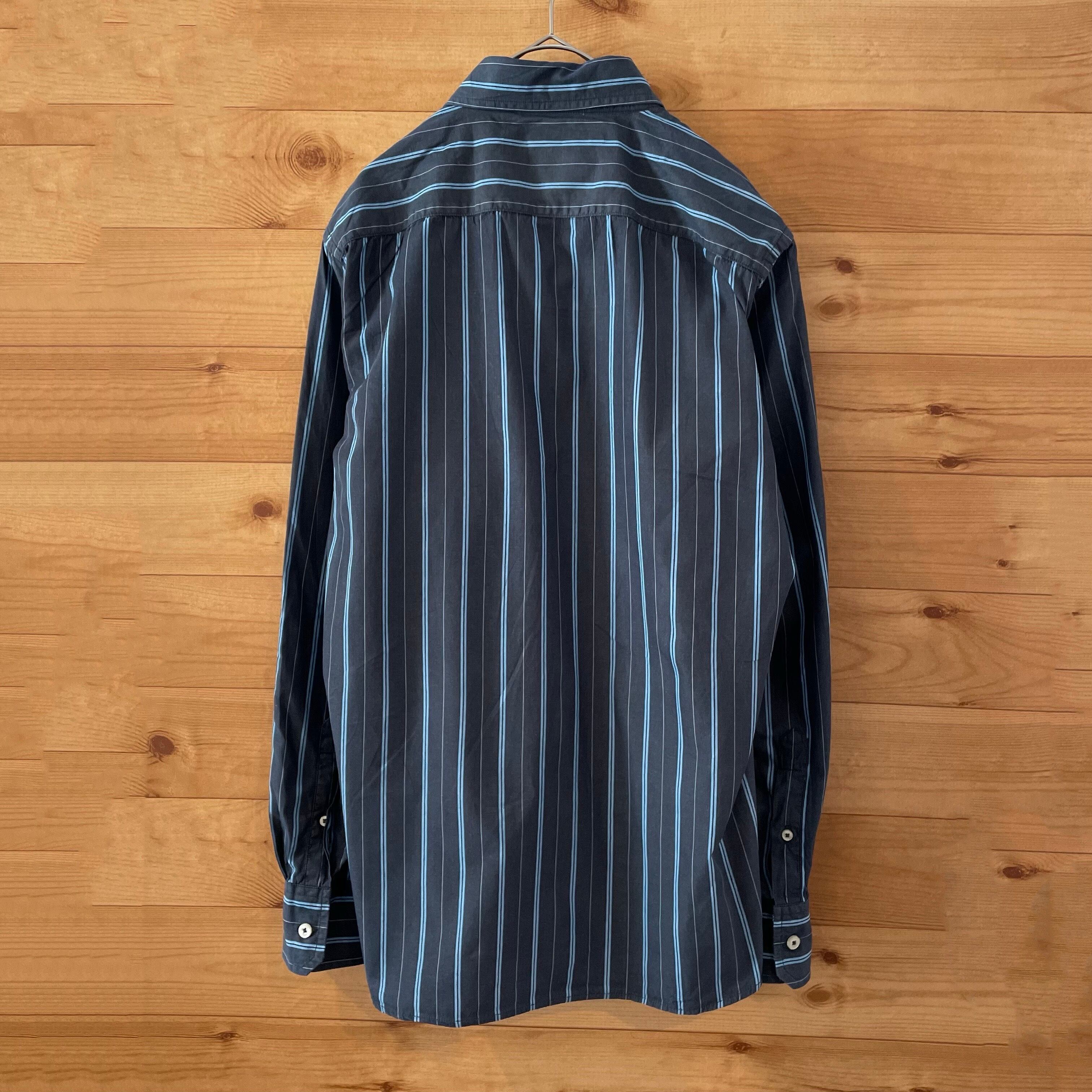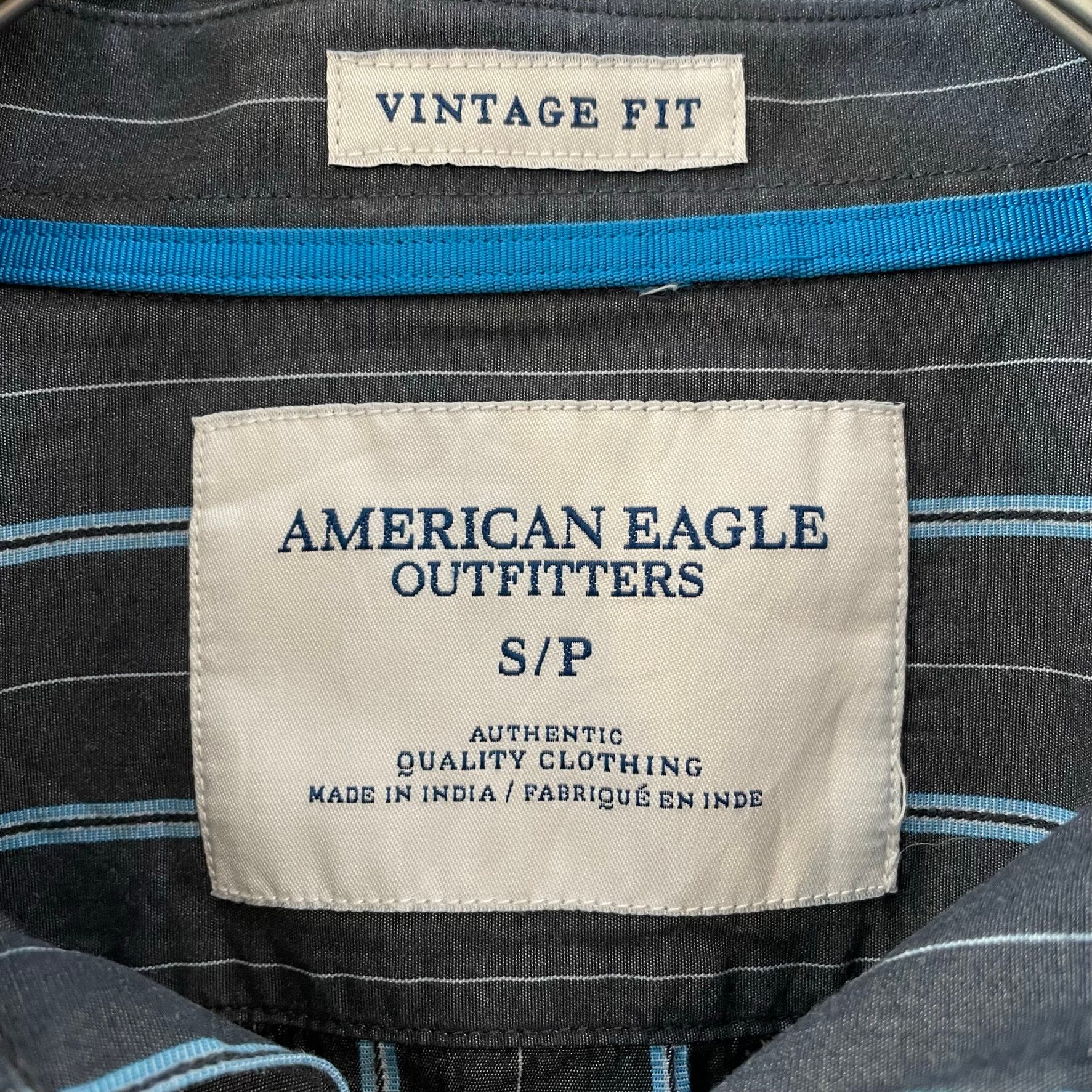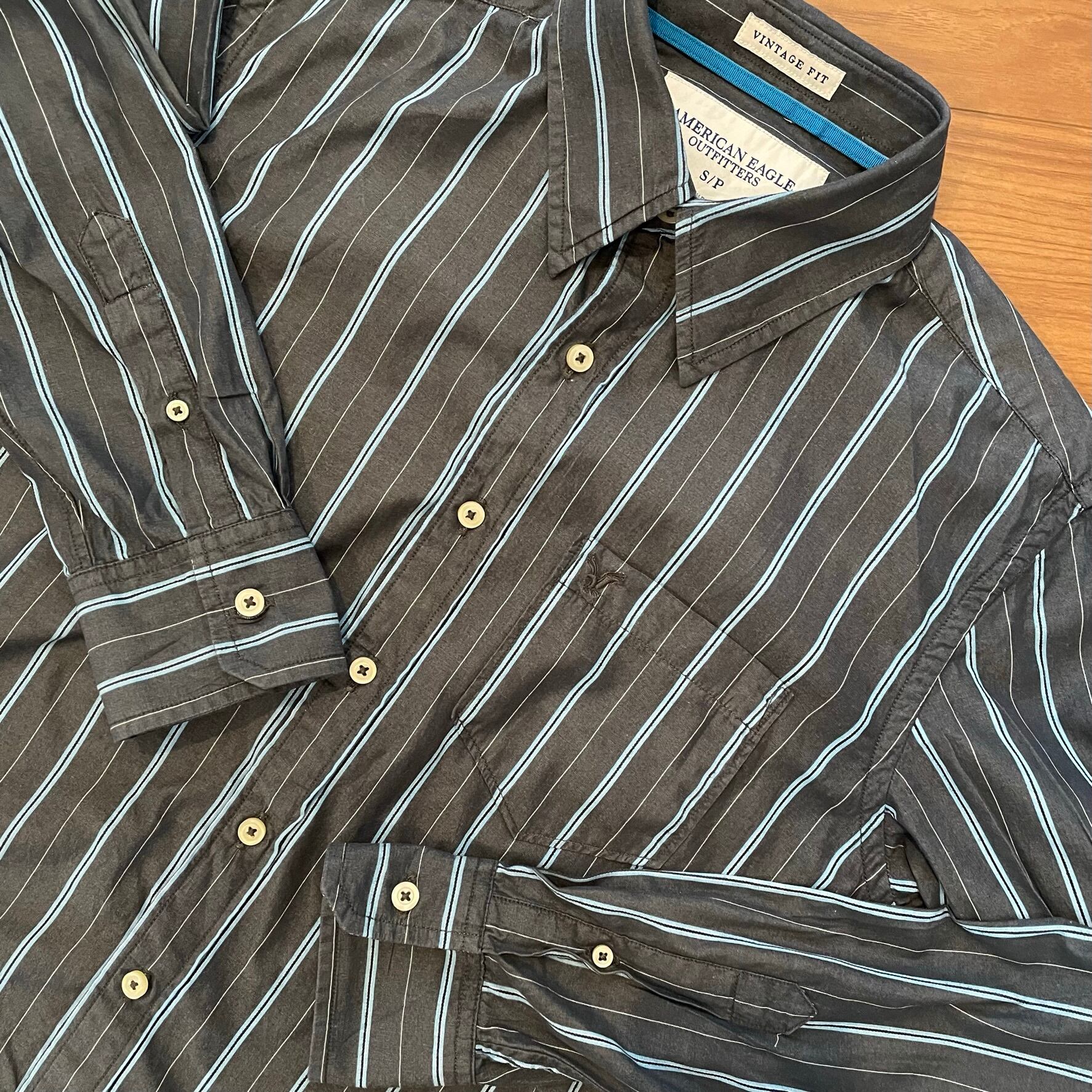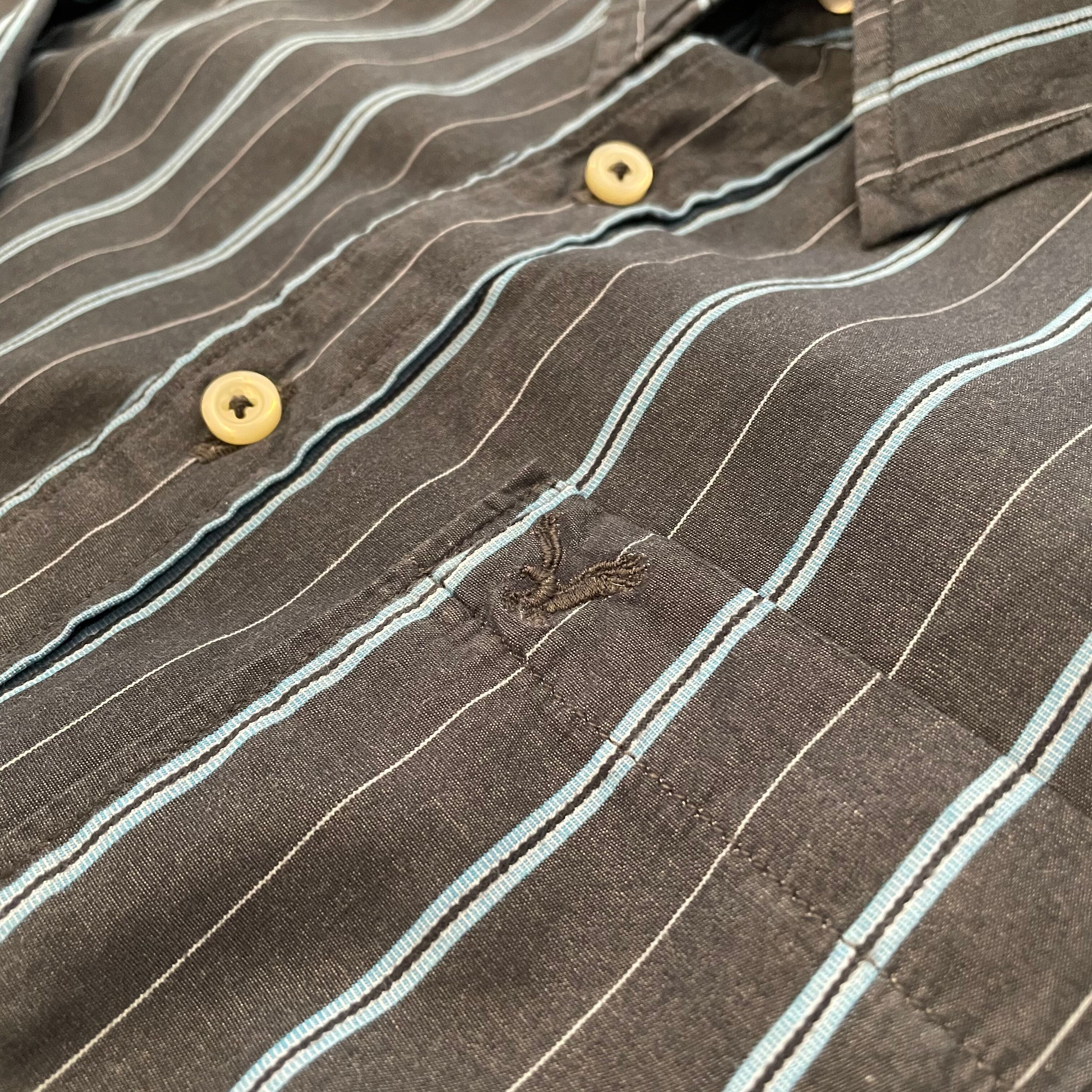 【AMERICAN EAGLE OUTFITTERS】ストライプ 柄シャツ 長袖シャツ 刺繍ロゴ メンズSサイズ US古着 アメリカ古着