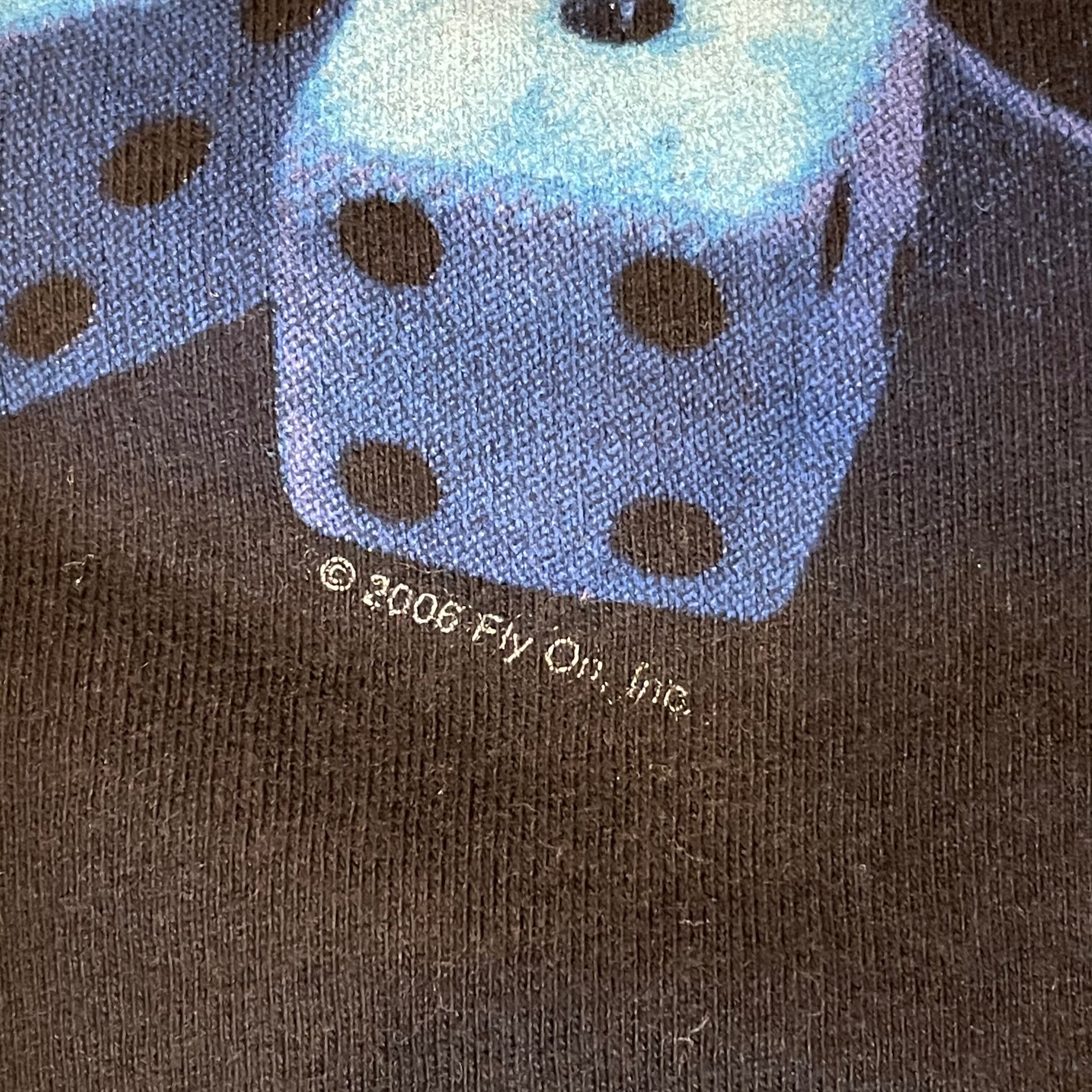 ダイス、バイク、ビリヤード、スカルとバンドロゴがプリントされたロックテイストある一着です。