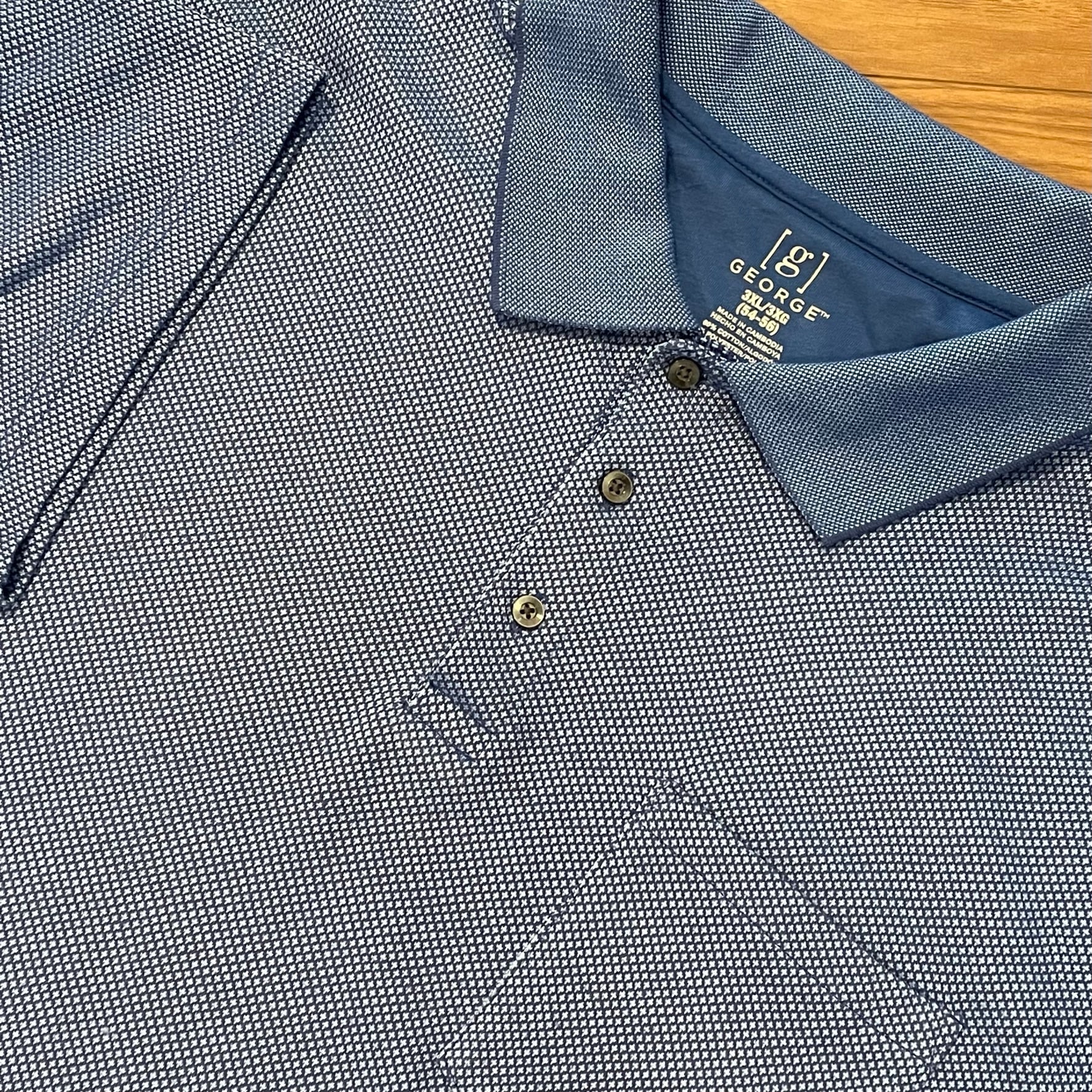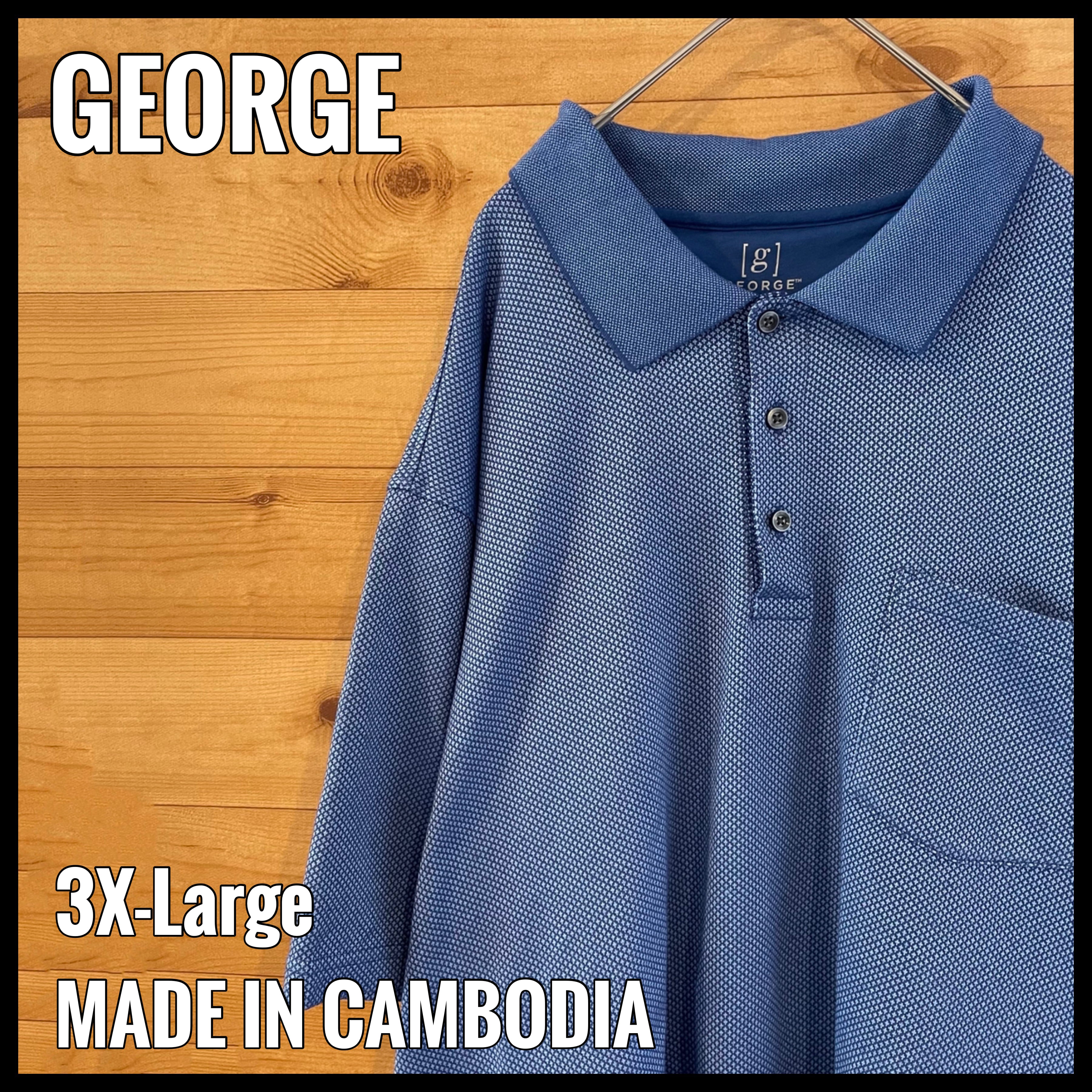 【GEORGE】3XL ビッグサイズ オーバーサイズ ポロシャツ 柄物 総柄 ブルー US古着 アメリカ古着