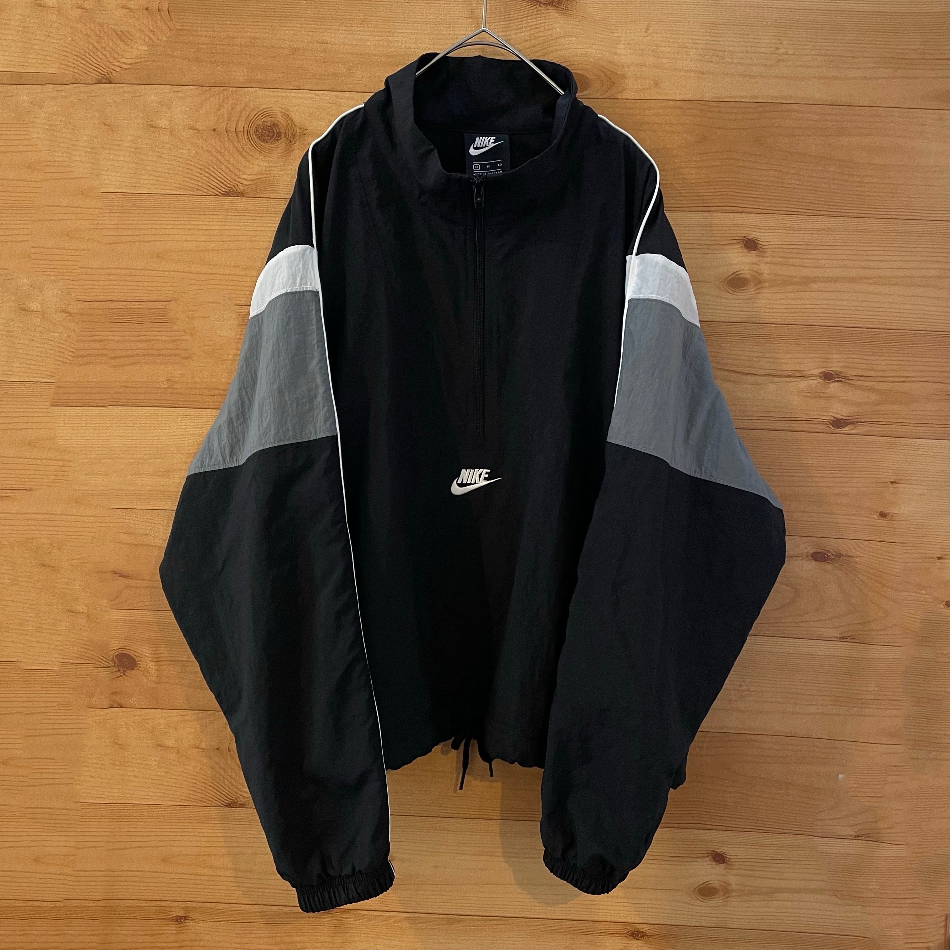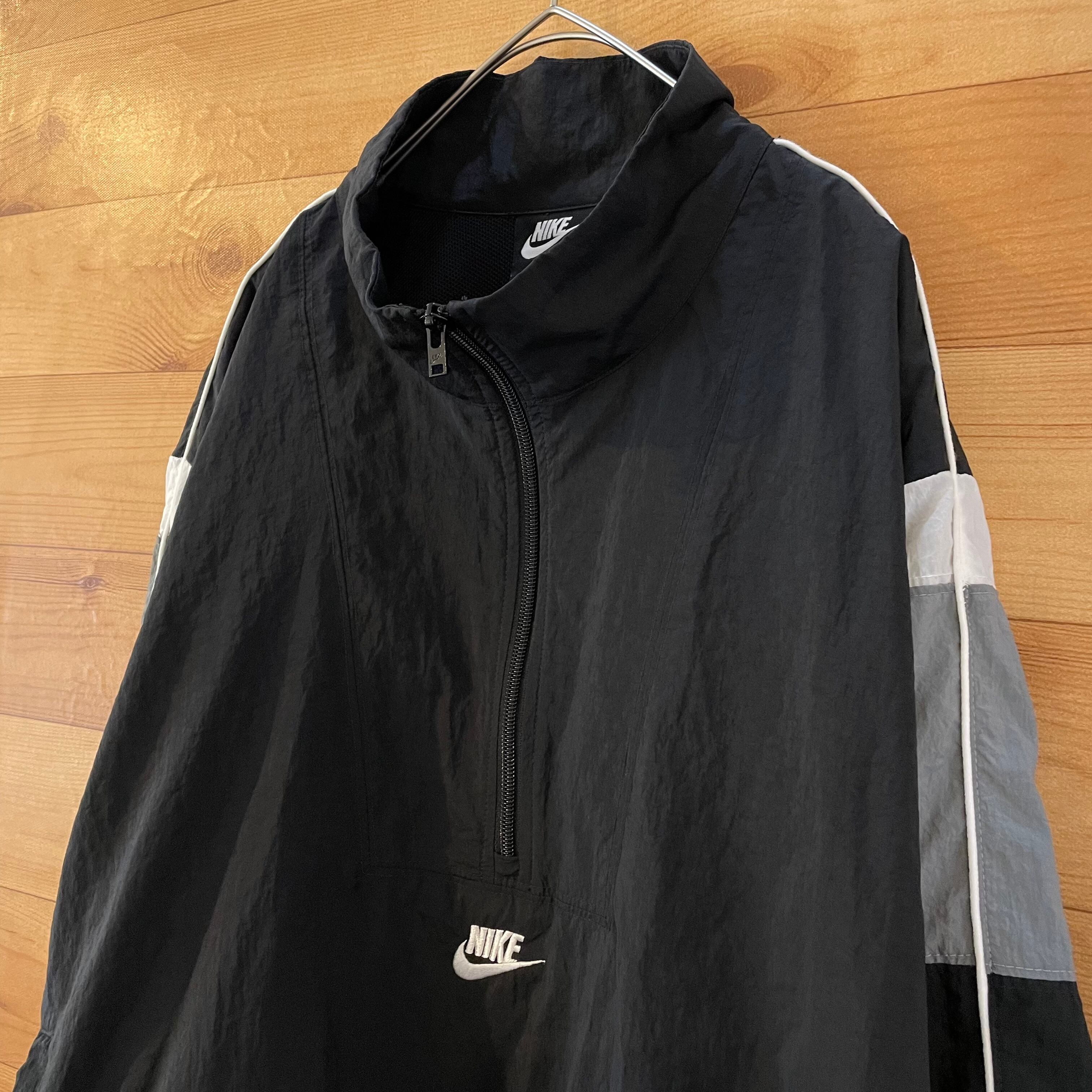 【NIKE】ハーフジップ ナイロンジャケット ブルゾン ジャンパー 刺繍ロゴ ワイドサイズ XL ナイキ US古着
