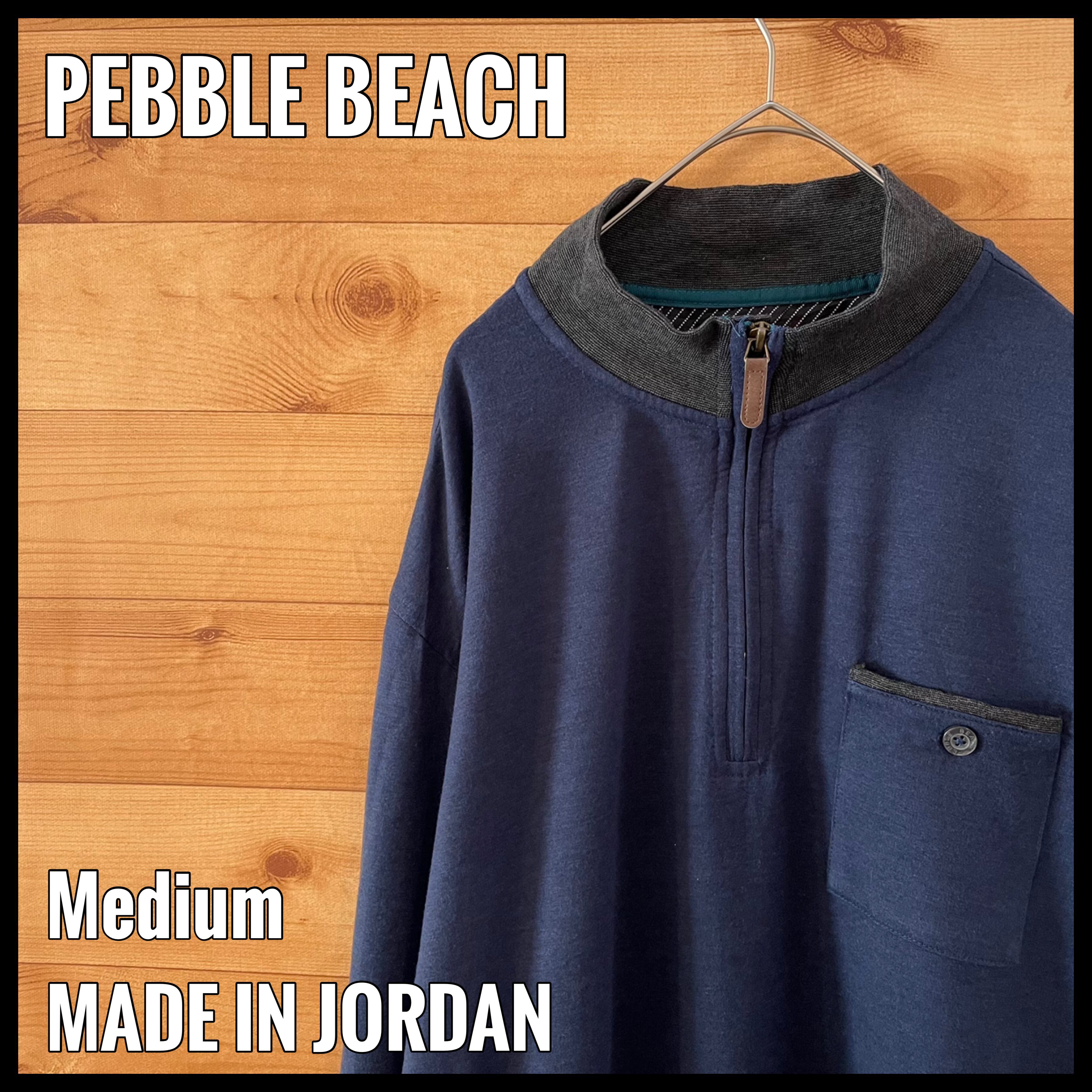 【PEBBLEBEACH】ハーフジップ スウェット 秋物 長袖 薄手 無地 ネイビー M 胸ポケット US古着
