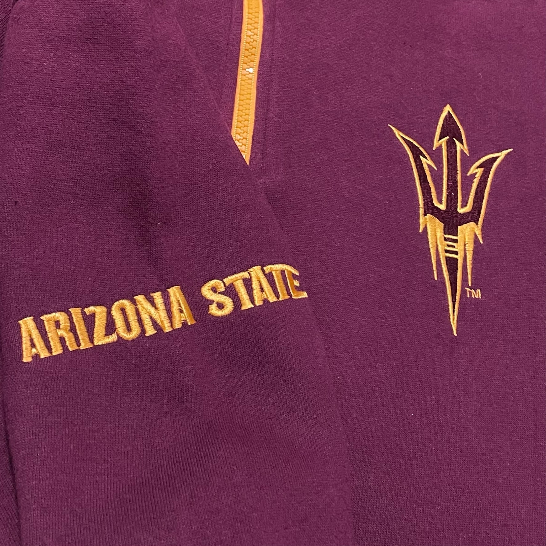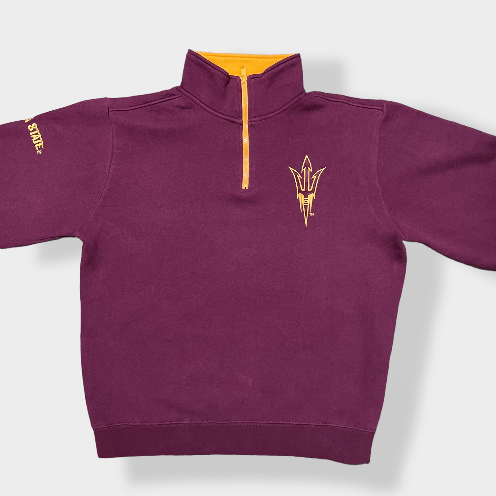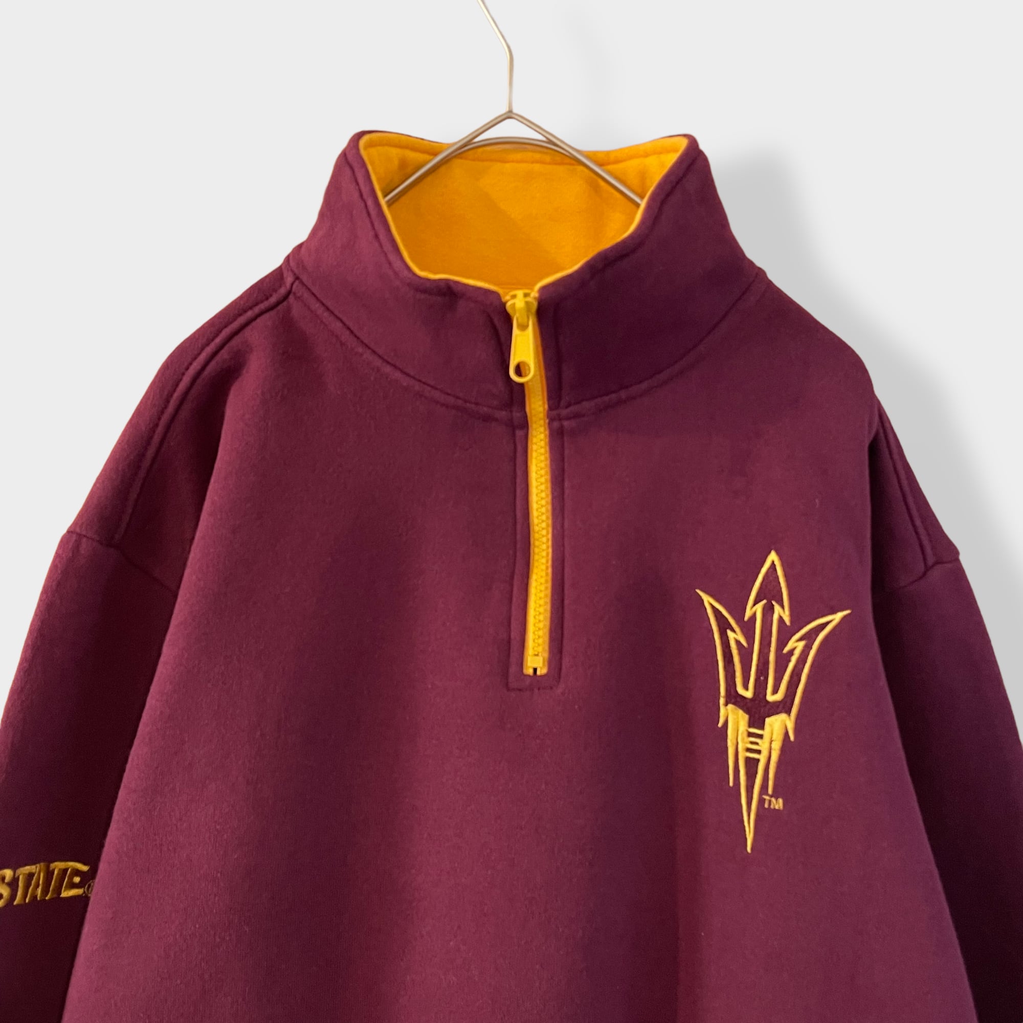 アリゾナ州立大学サンデビルズのロゴが刺繍されたハーフジップスウェットです。
