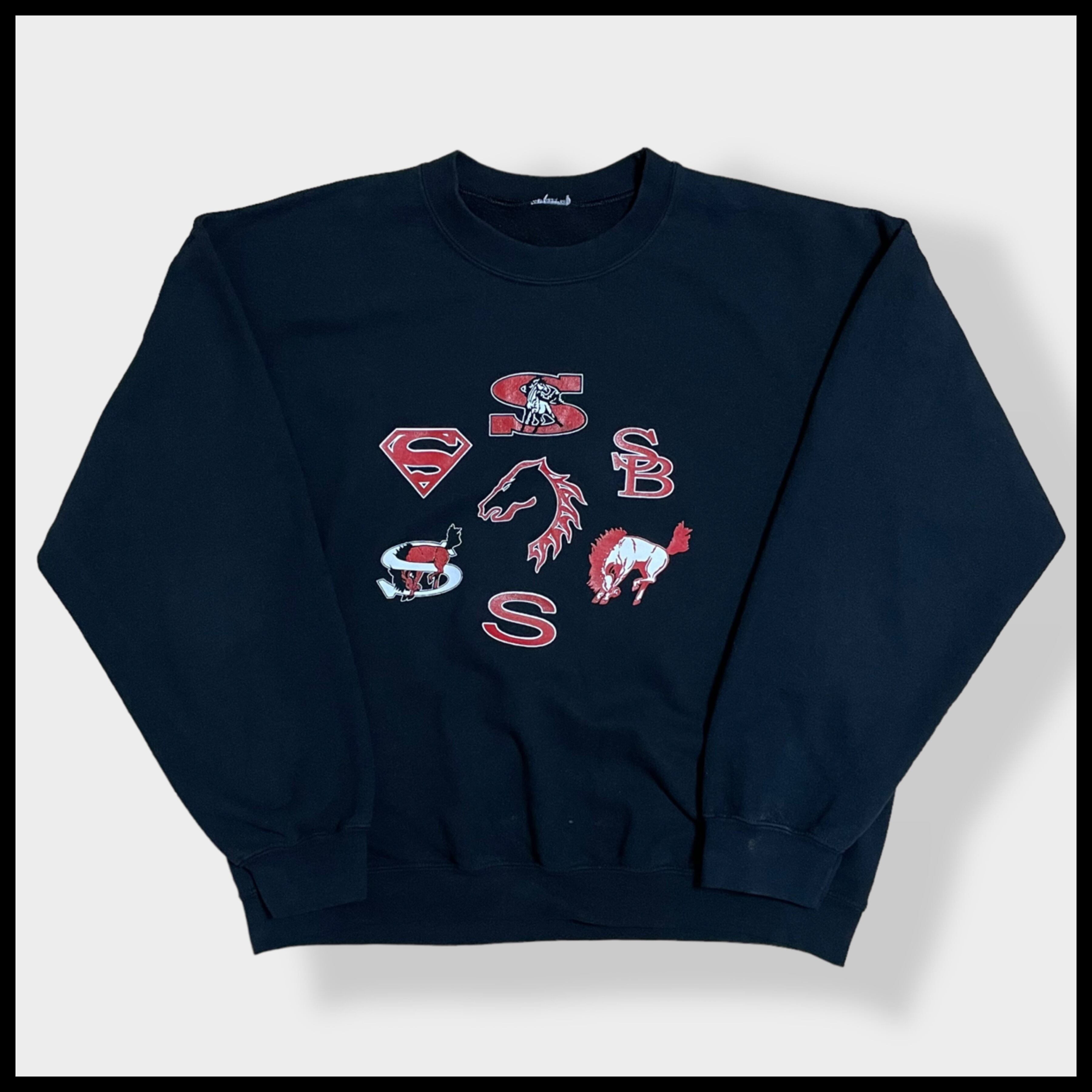 【USA古着】プリント バックプリント 両面プリント ロゴ BRONCO NATION スウェット トレーナー プルオーバー L相当 黒ボディ US古着