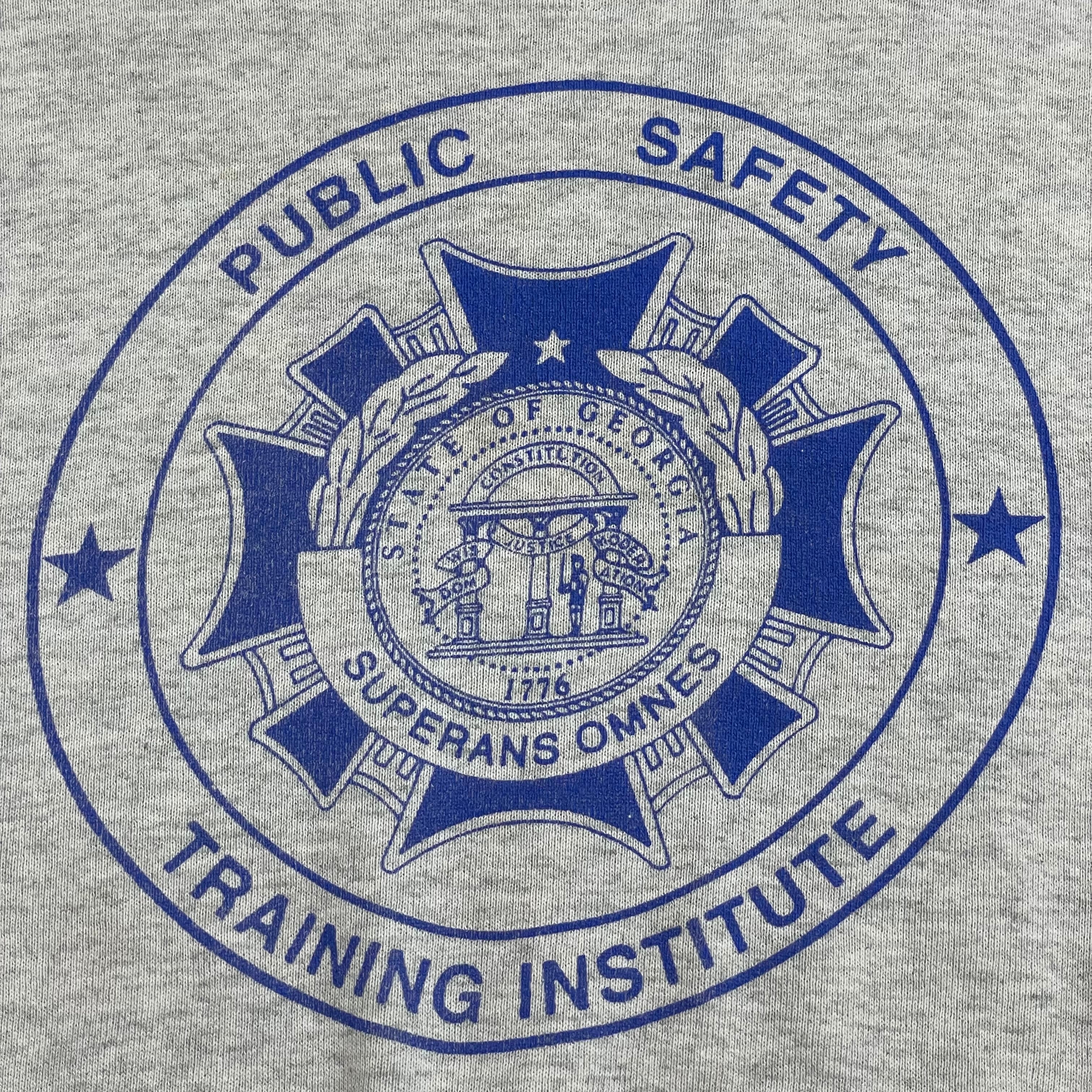 【FRUIT OF THE LOOM】90s USA製 ジョージア州 公安 public safety training institute プリント スウェット トレーナー プルオーバー L グレー US古着