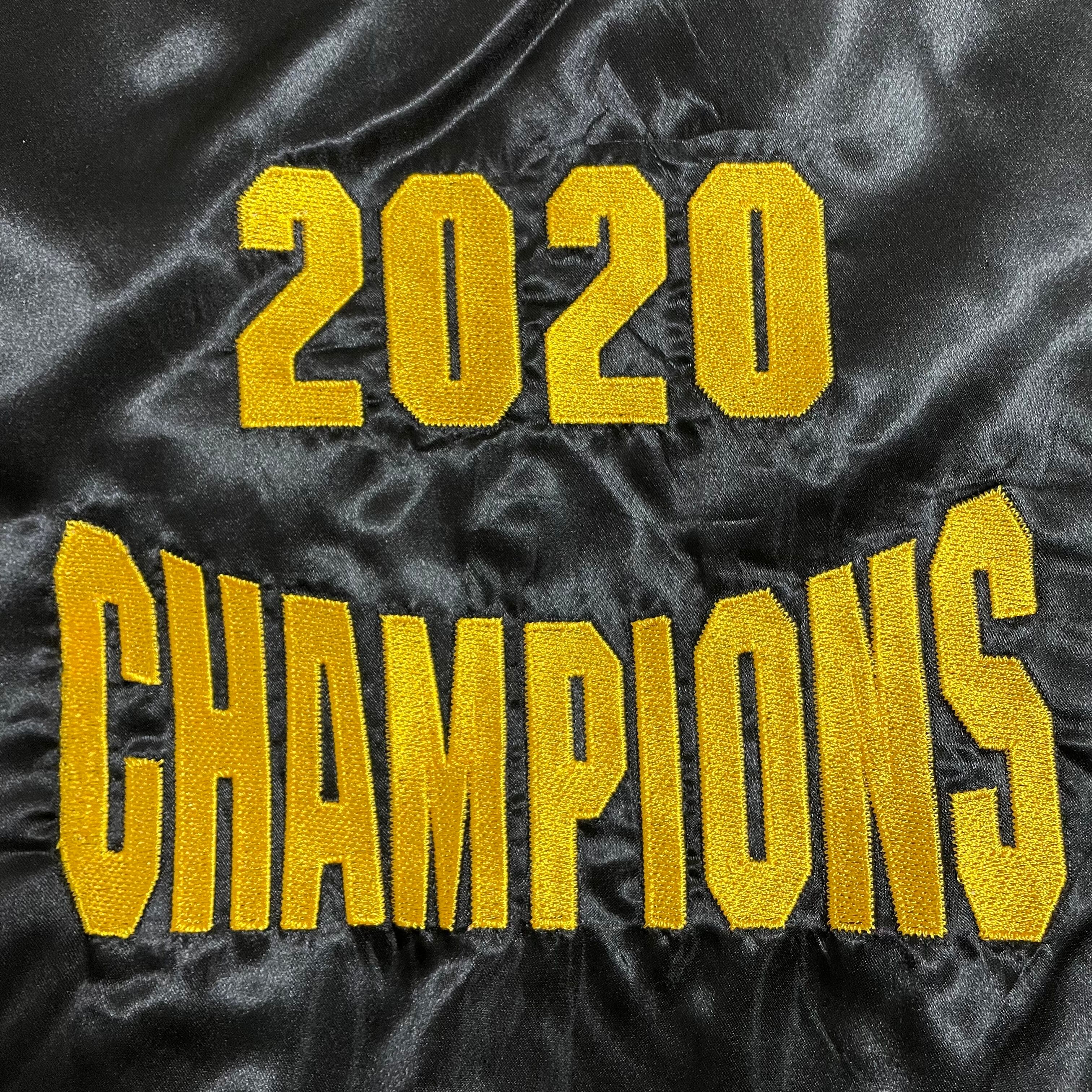 フロントには大会ワッペン、バックには2020 CHAMPIONSの刺繍が入っています。