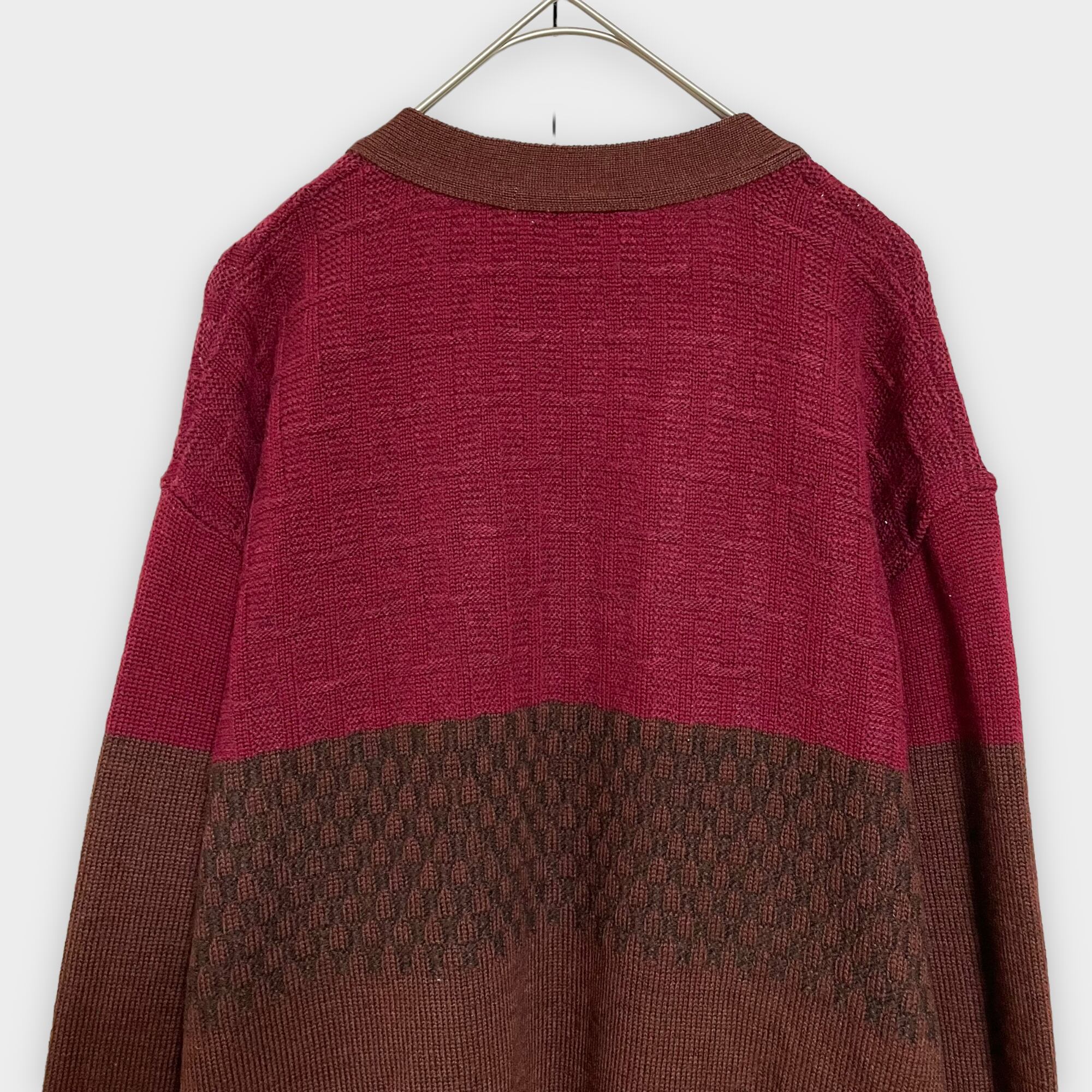 【Golden Bear】日本製 カーディガン 柄物 切替 柄ニット 羽織もの M ゴールデンベア ウール アクリル混合 古着