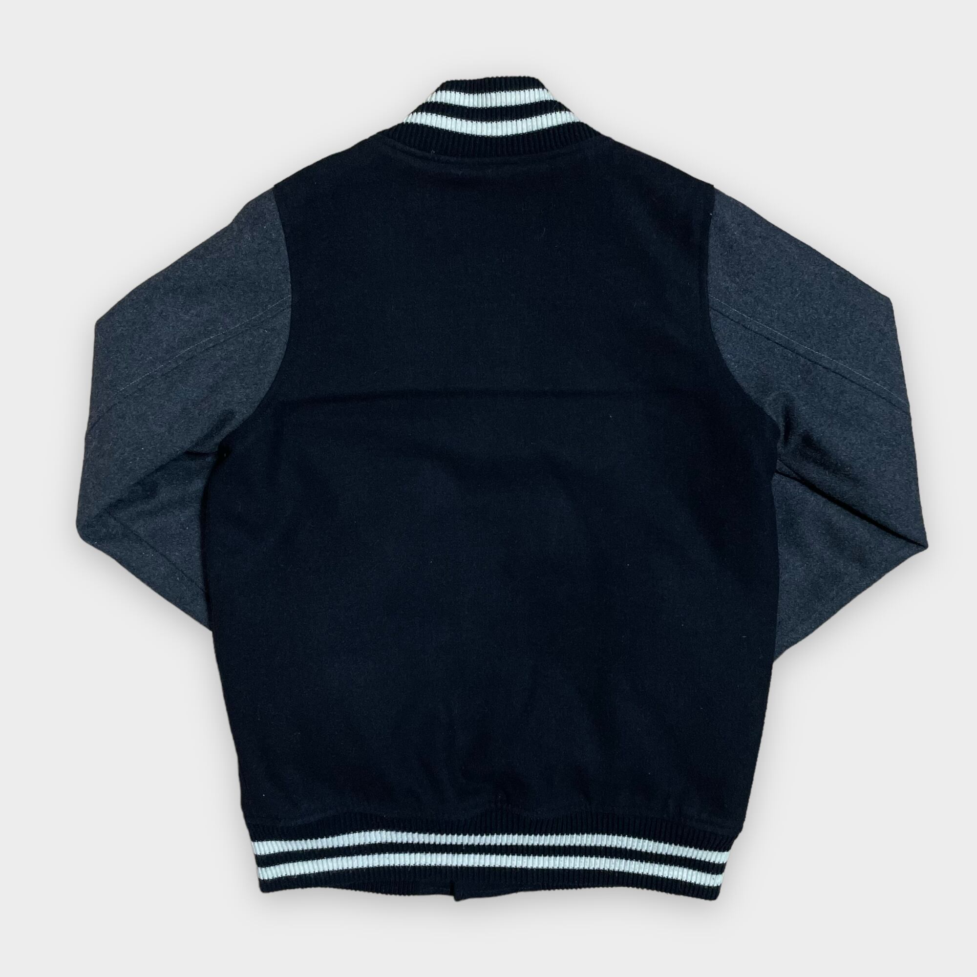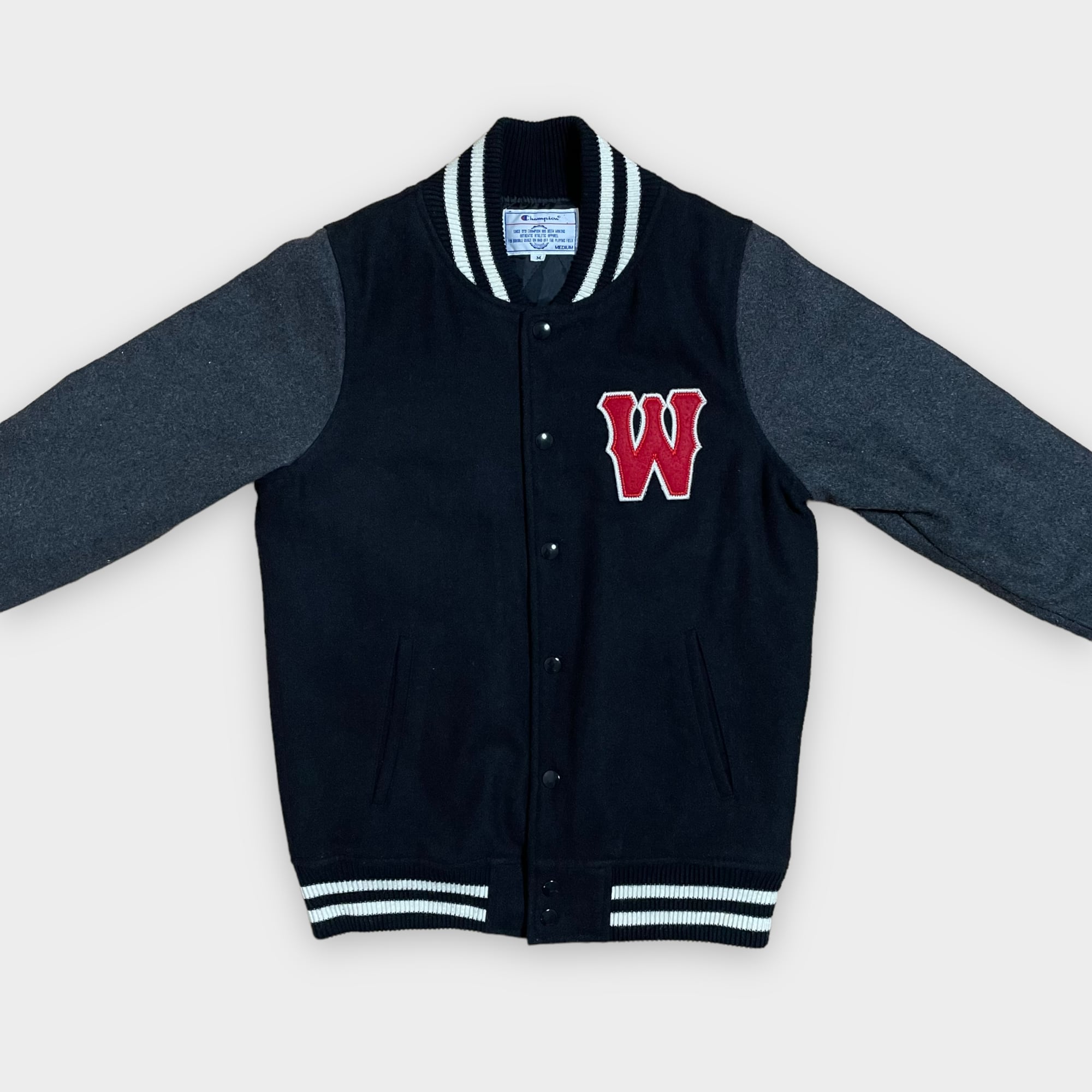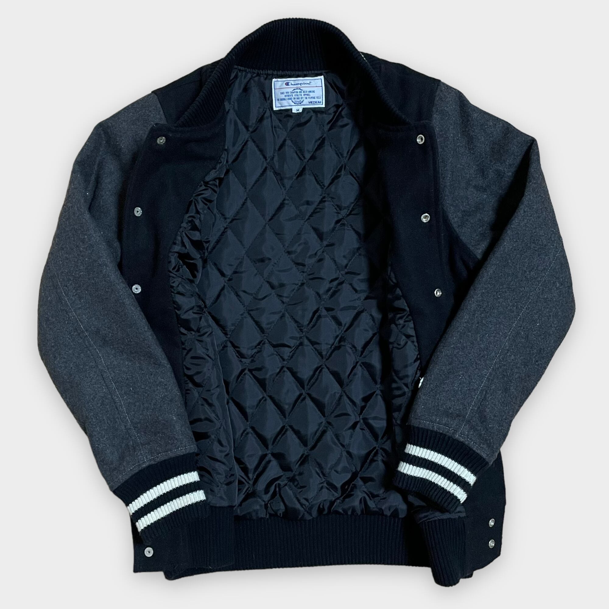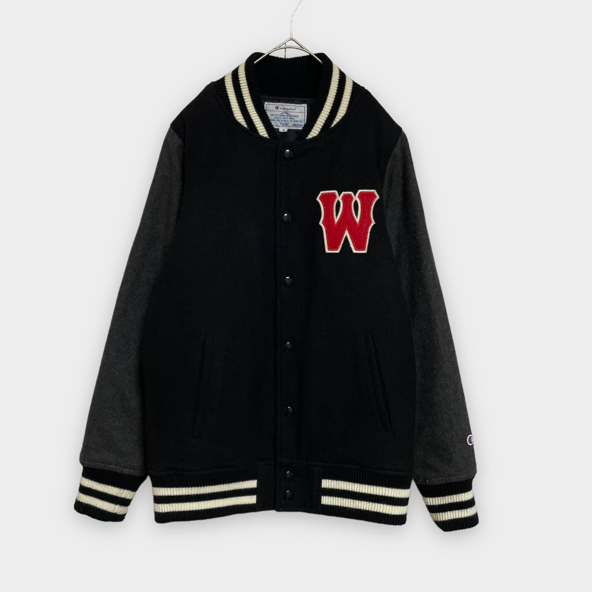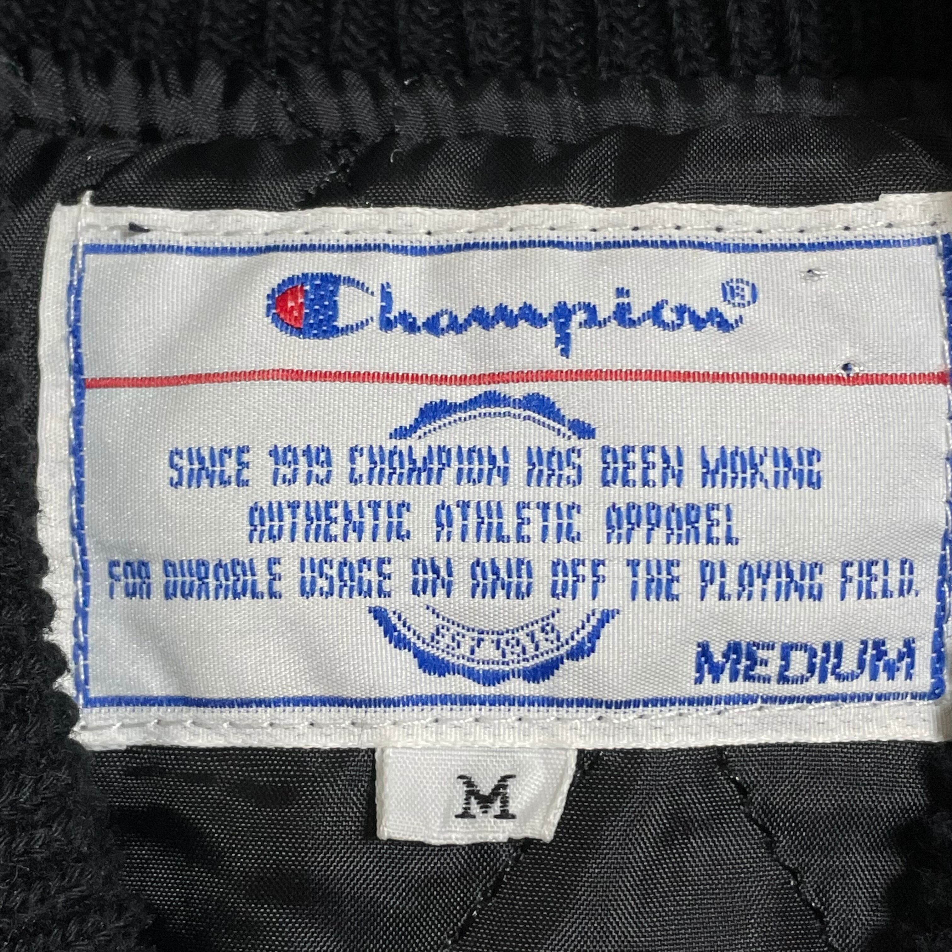 【champion】スタジャン ブルゾン ジャンパー 刺繍ロゴ ツートンカラー ラインリブ 裏地キルティング 中綿 M US古着