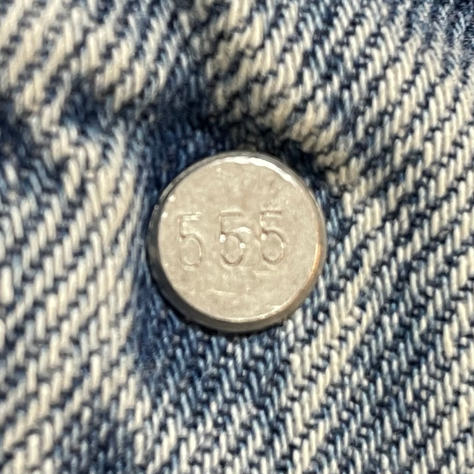 赤タグのスモールe、ボタンフライ、脇割り、ボタン裏の刻印555でバレンシア工場生産です。