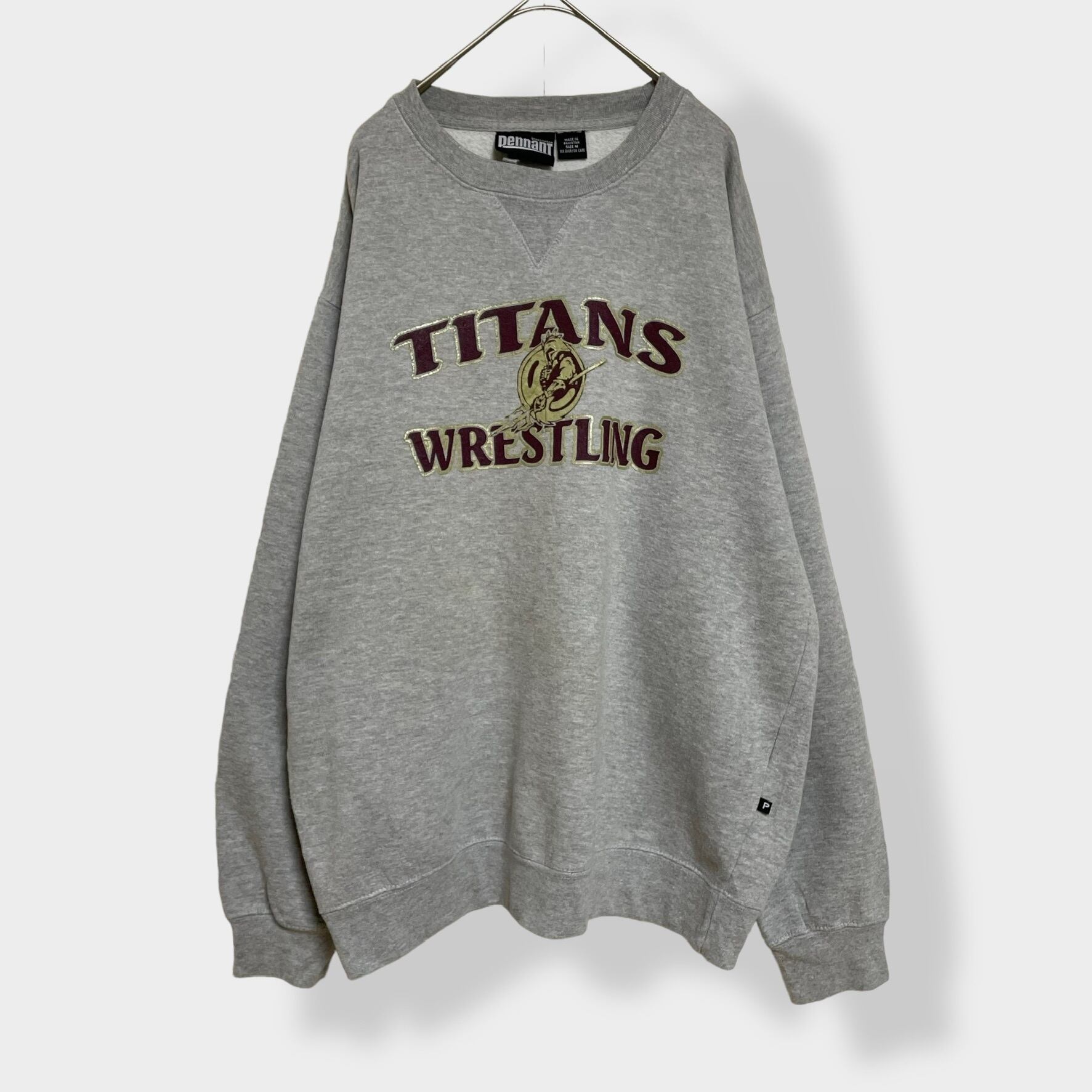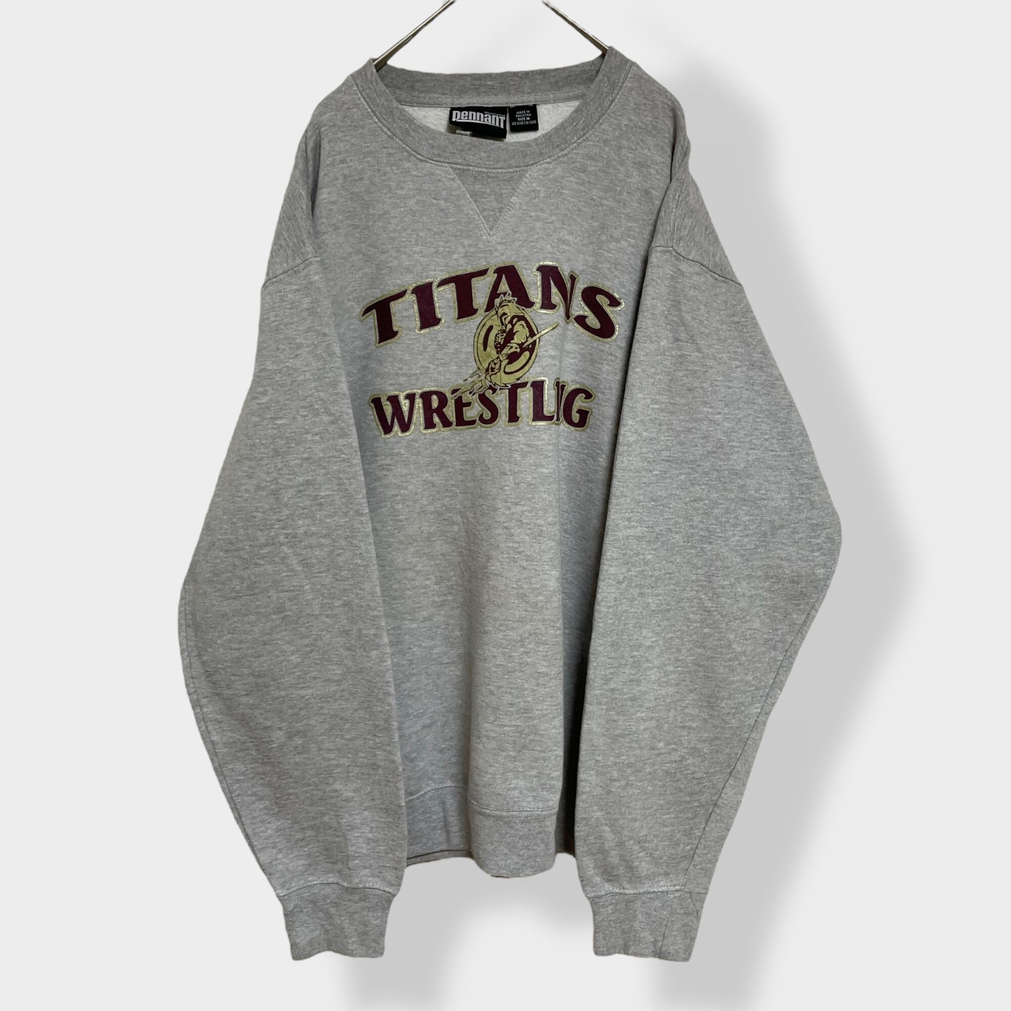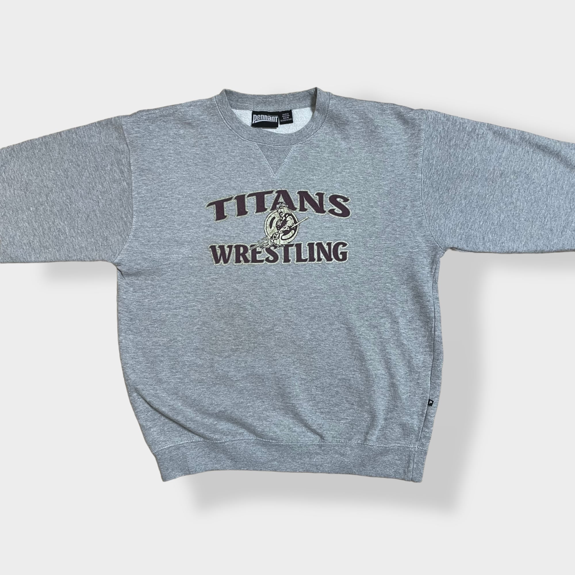 【PENNANT】レスリング TITANS WRESTLING ロゴ プリント スウェット トレーナー プルオーバー M グレー US古着