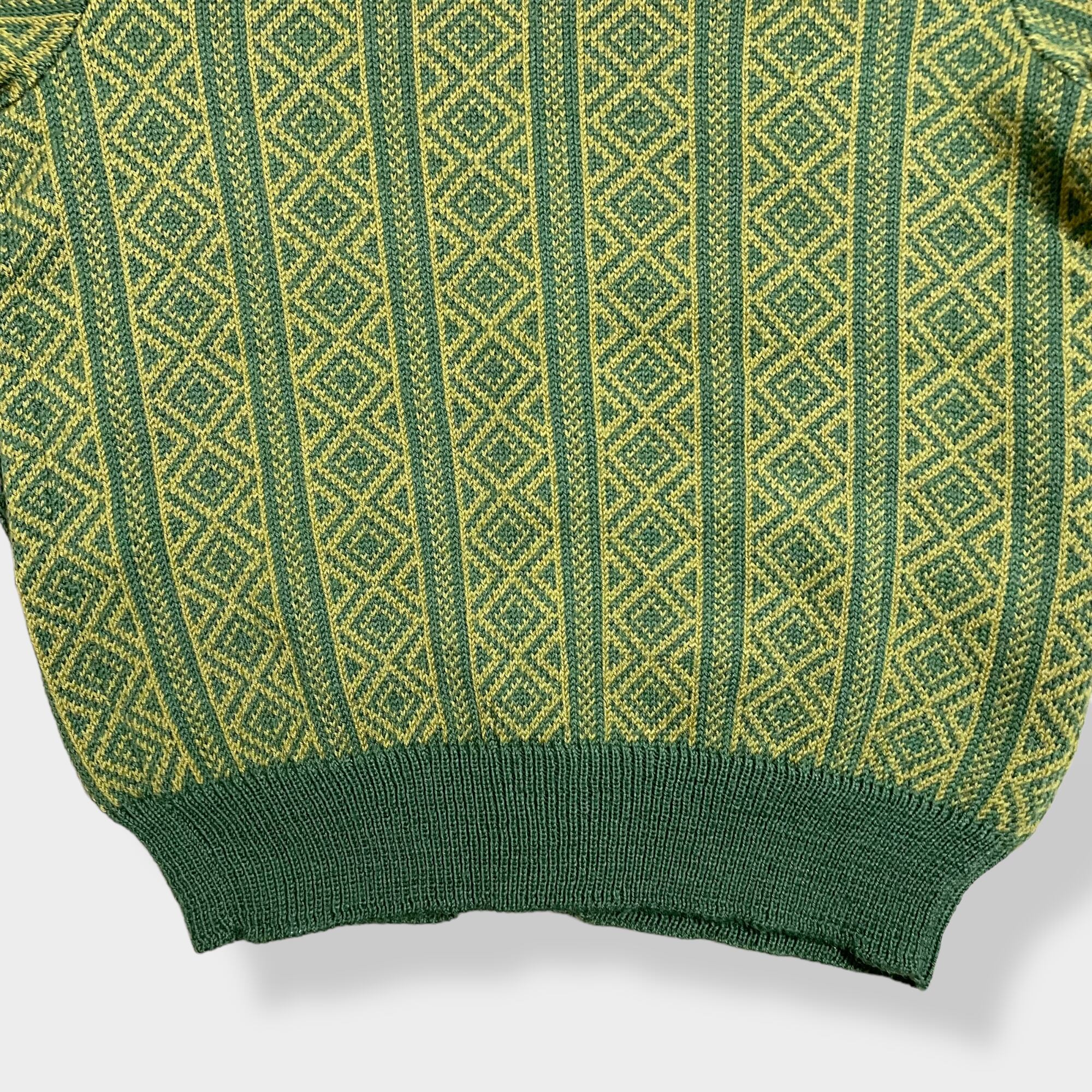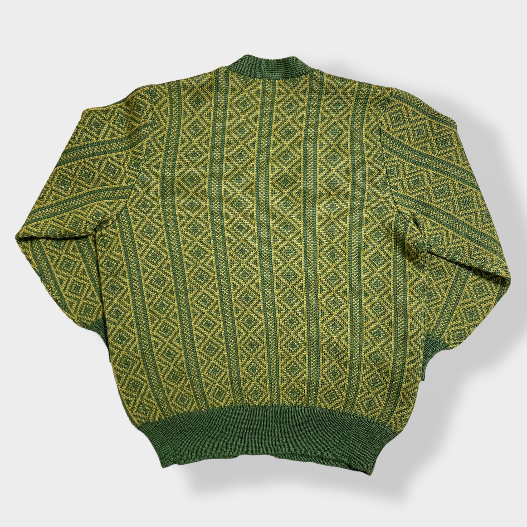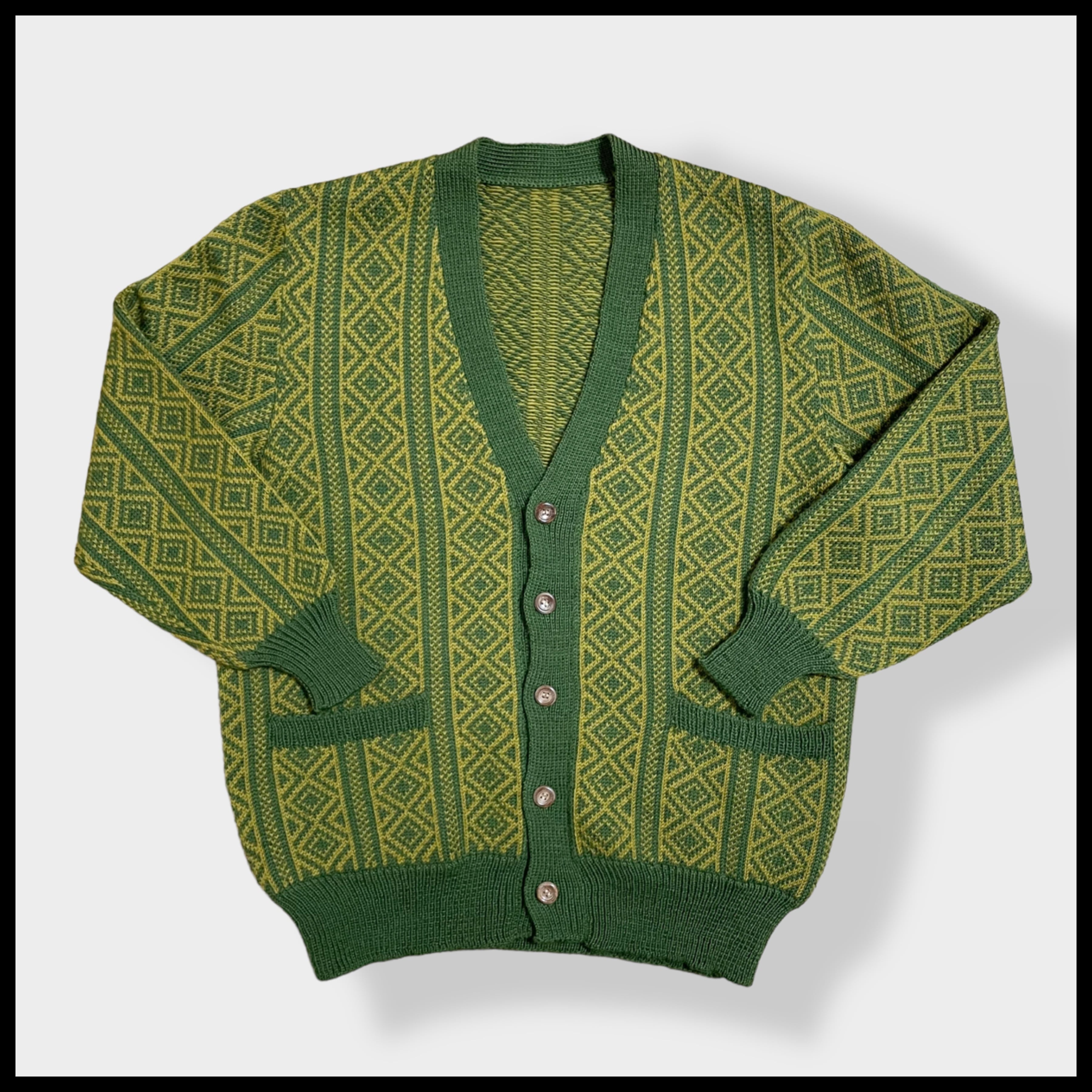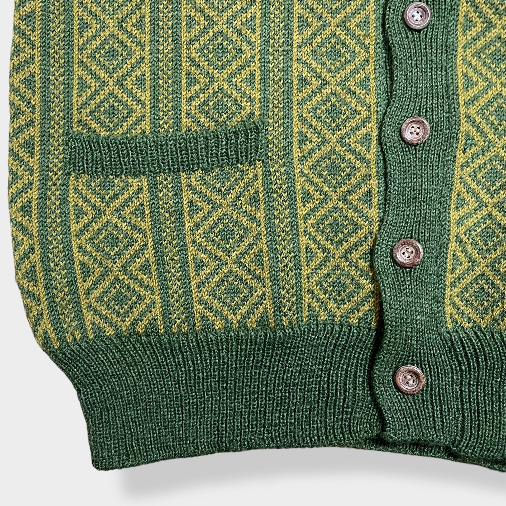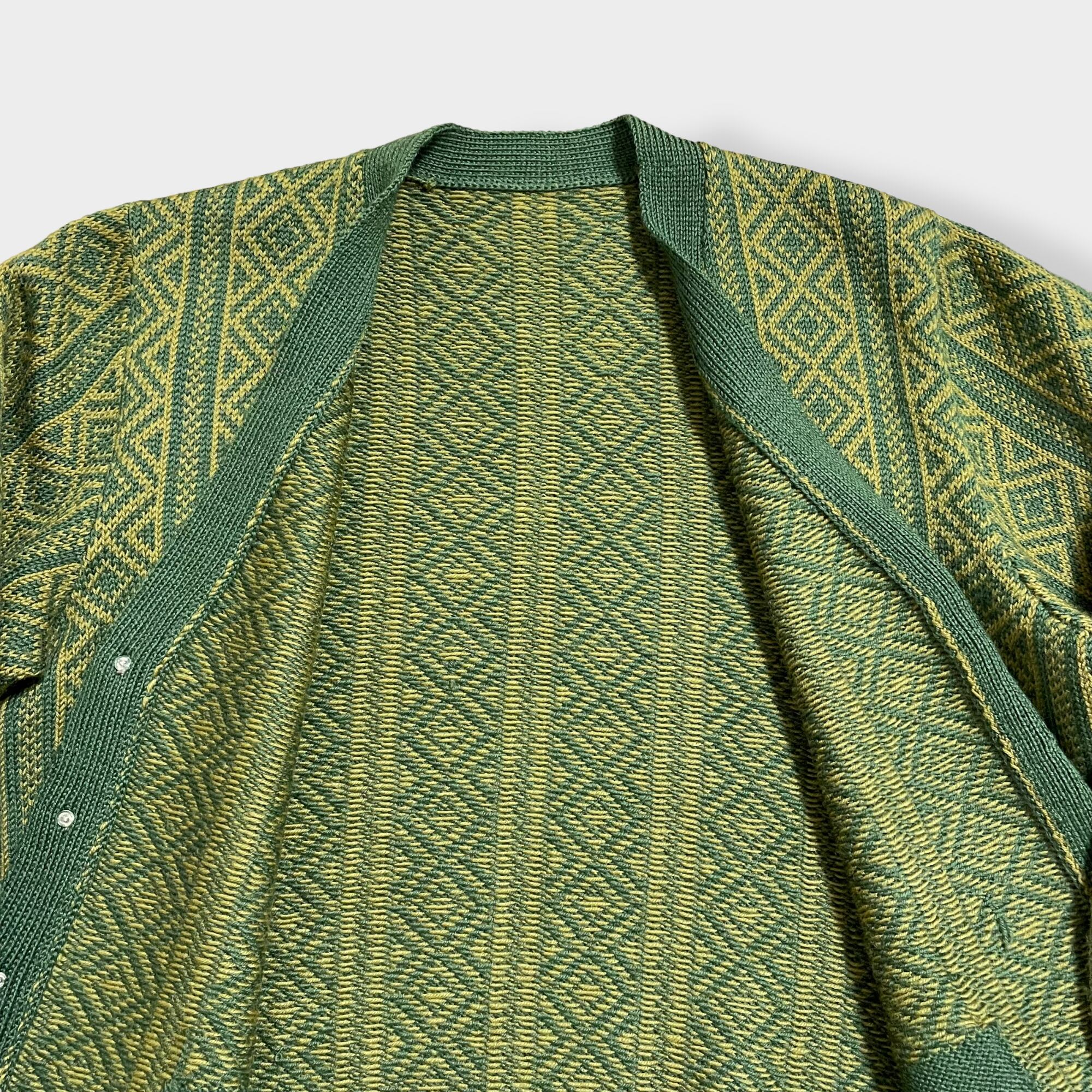 【古着】カーディガン デザインニット 柄物 総柄 柄ニット ユニセックス くすみカラー カーキ 抹茶 マスタード 個性的