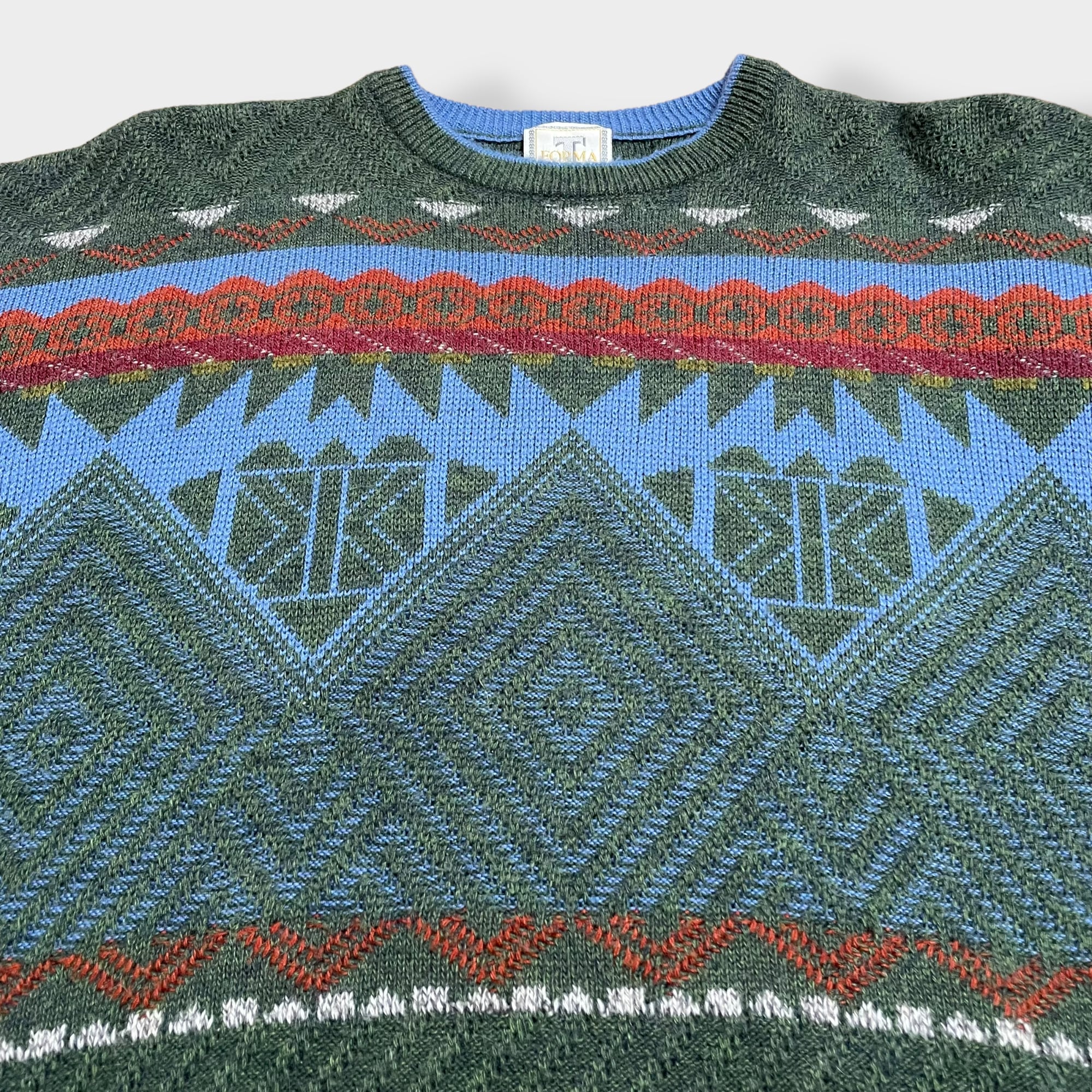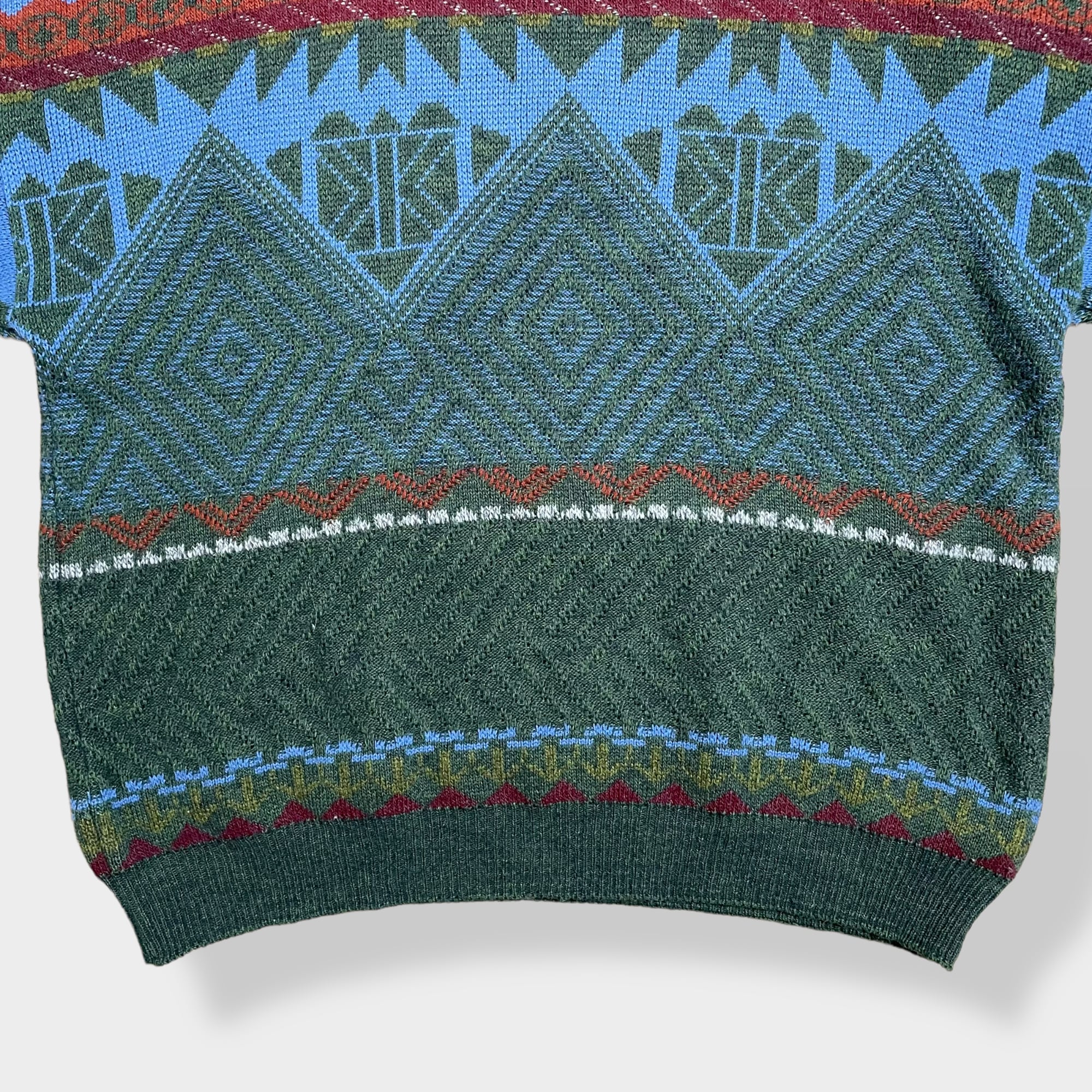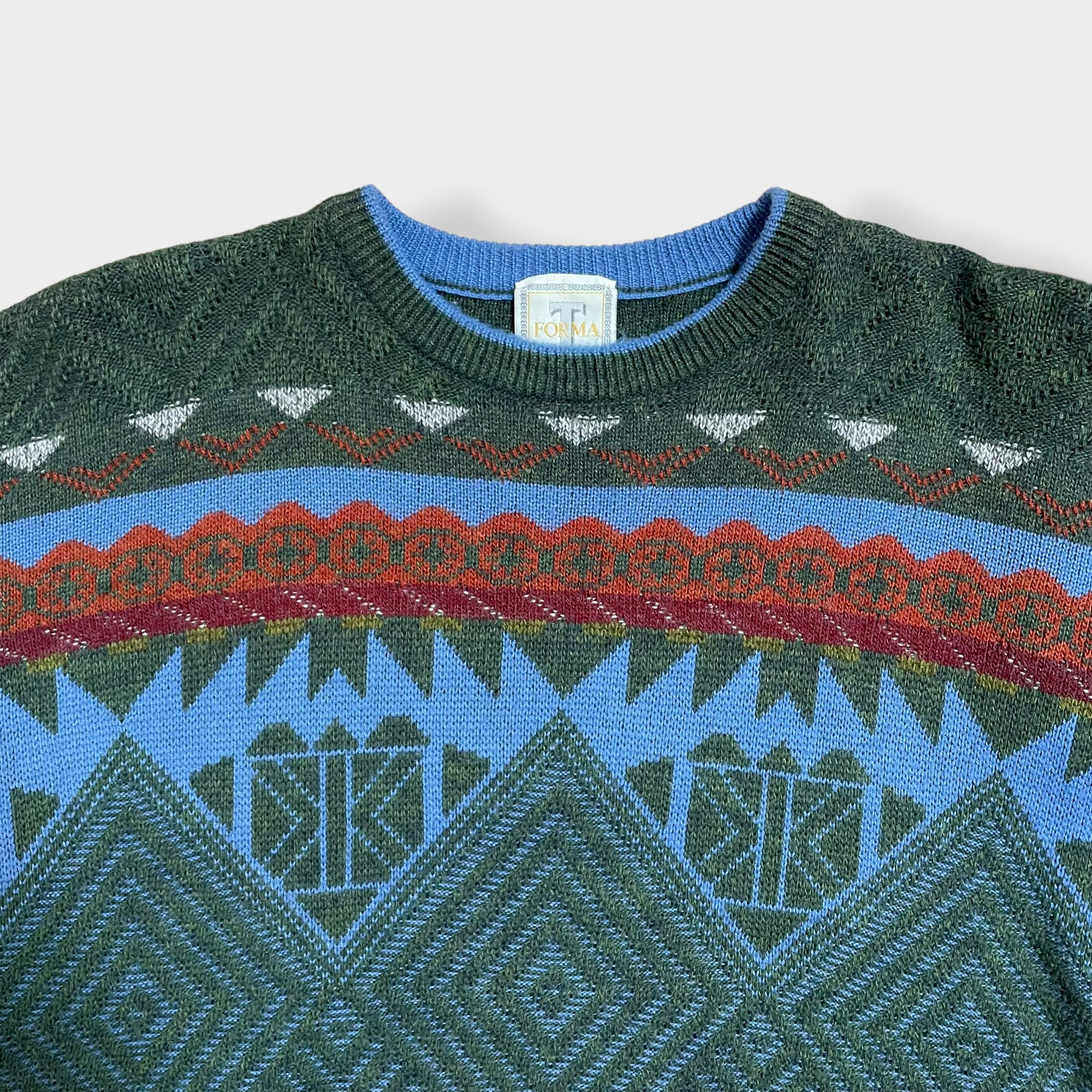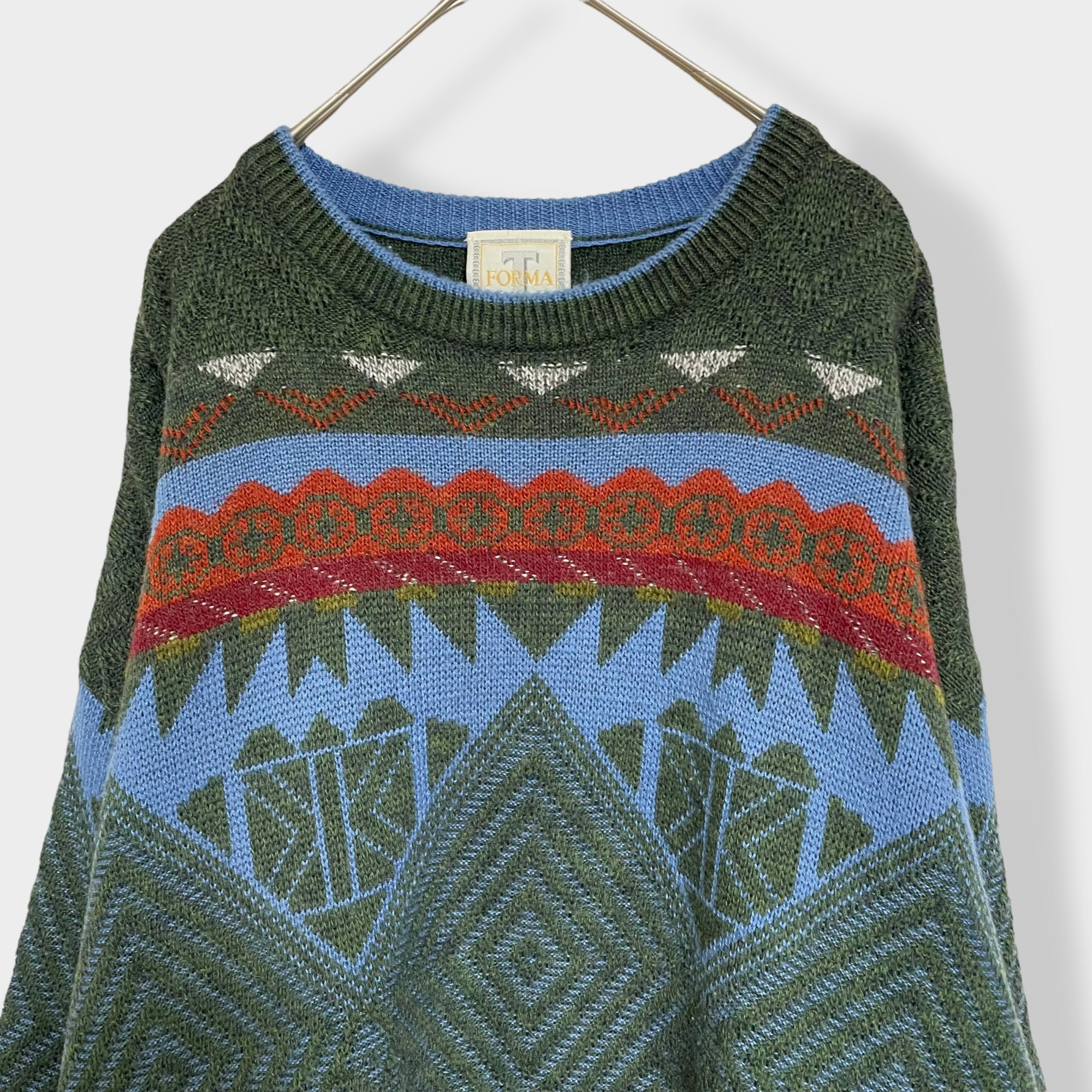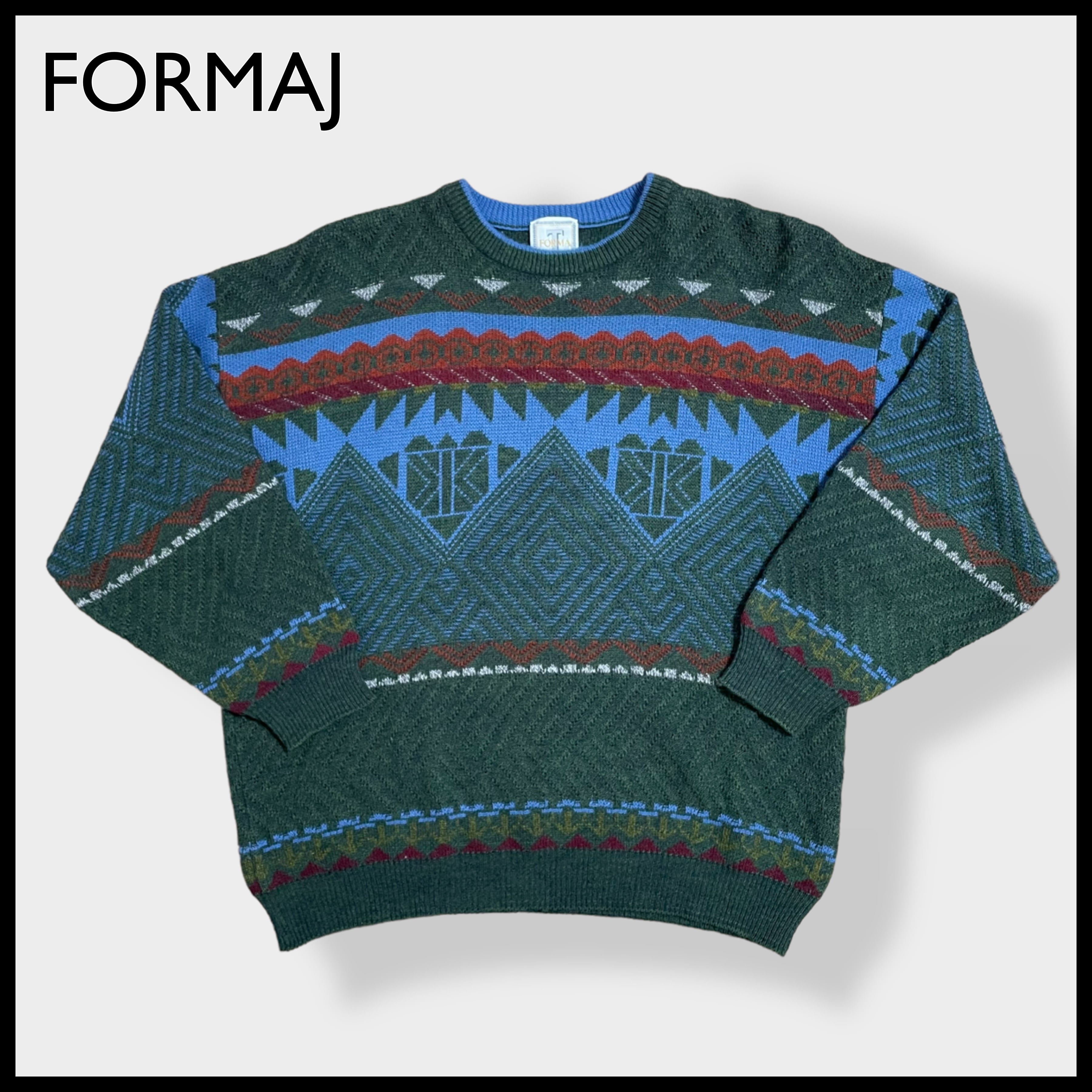 【FORMAJ by JORDAN】イタリア製 柄ニット デザインニット 総柄 柄物 個性的 ウール アルパカ アクリル アースカラー マルチカラー MADE IN ITALY EU古着