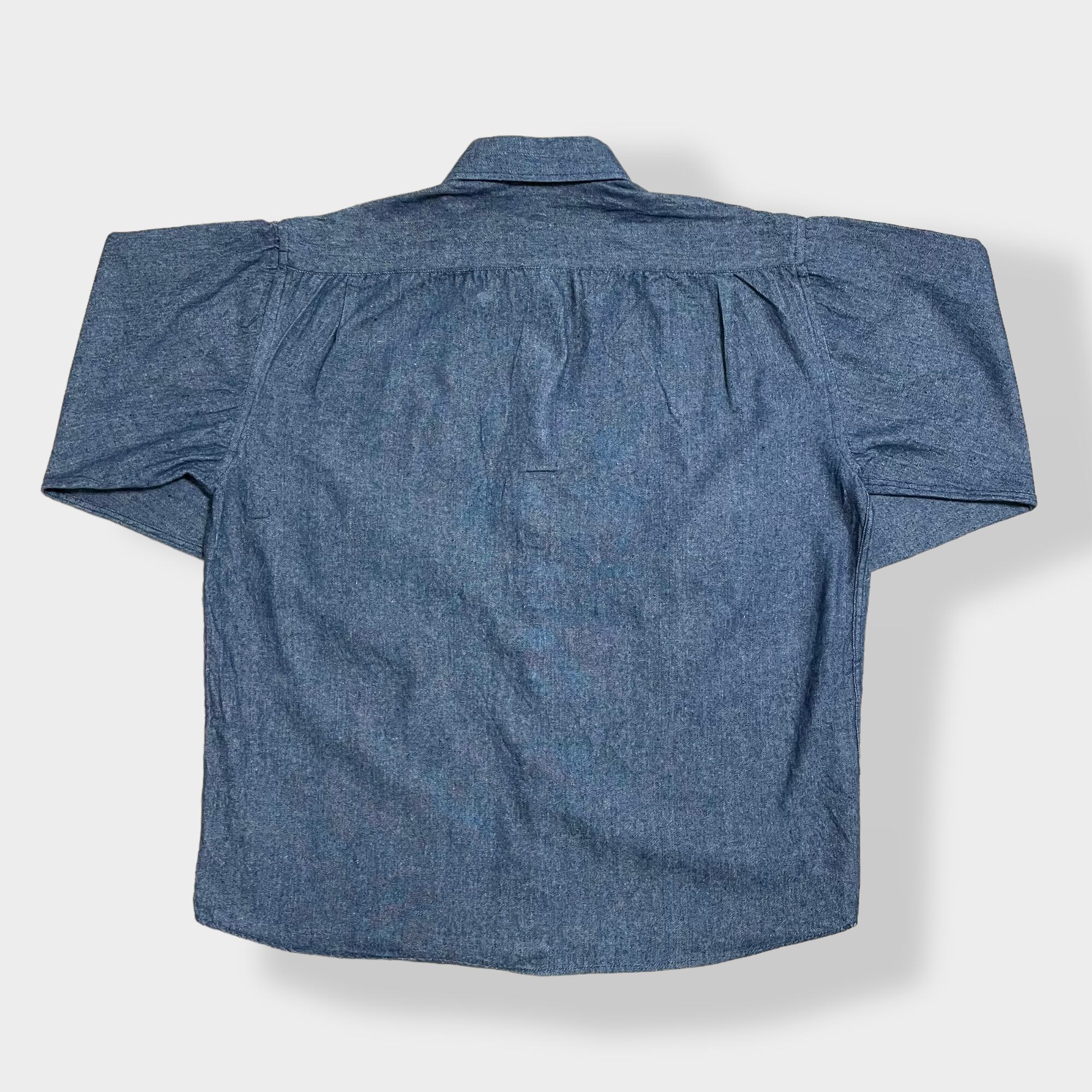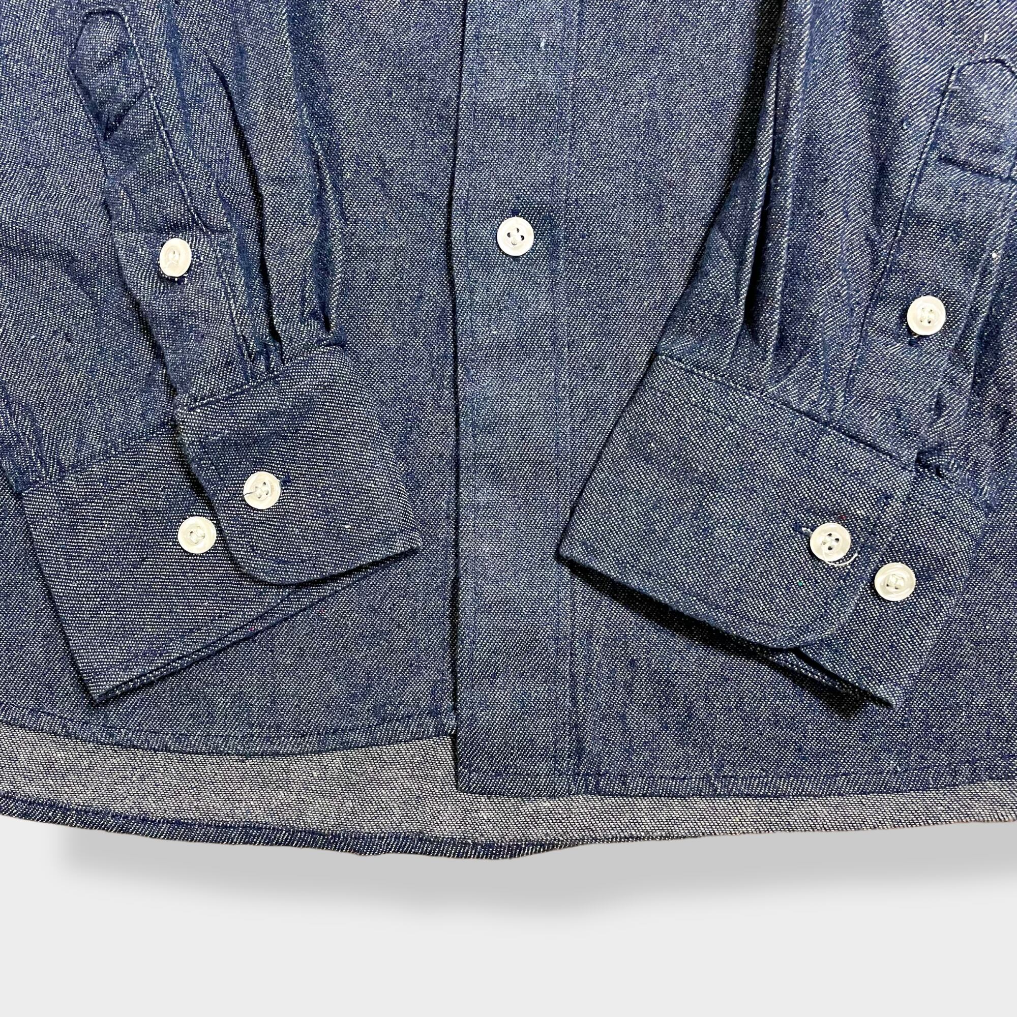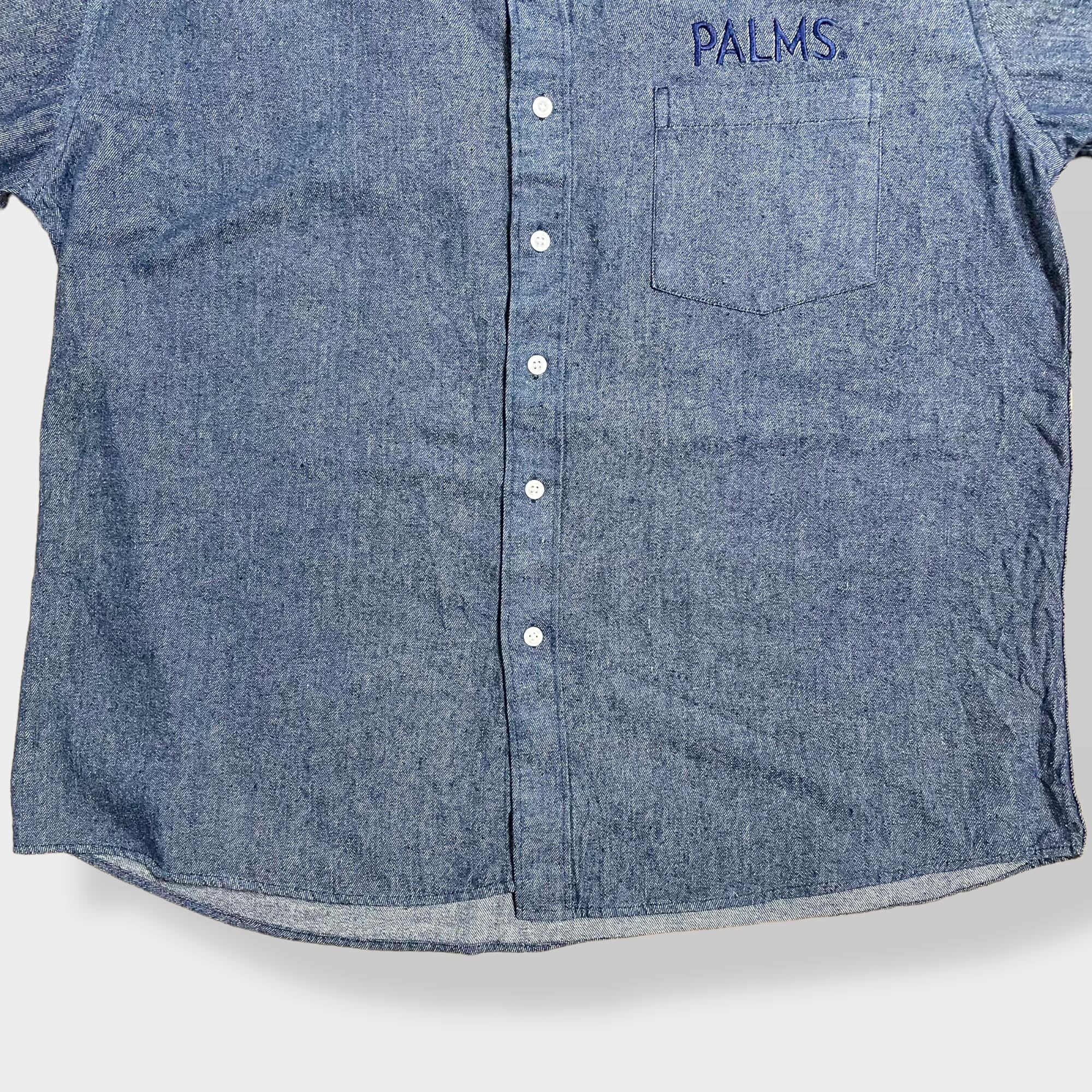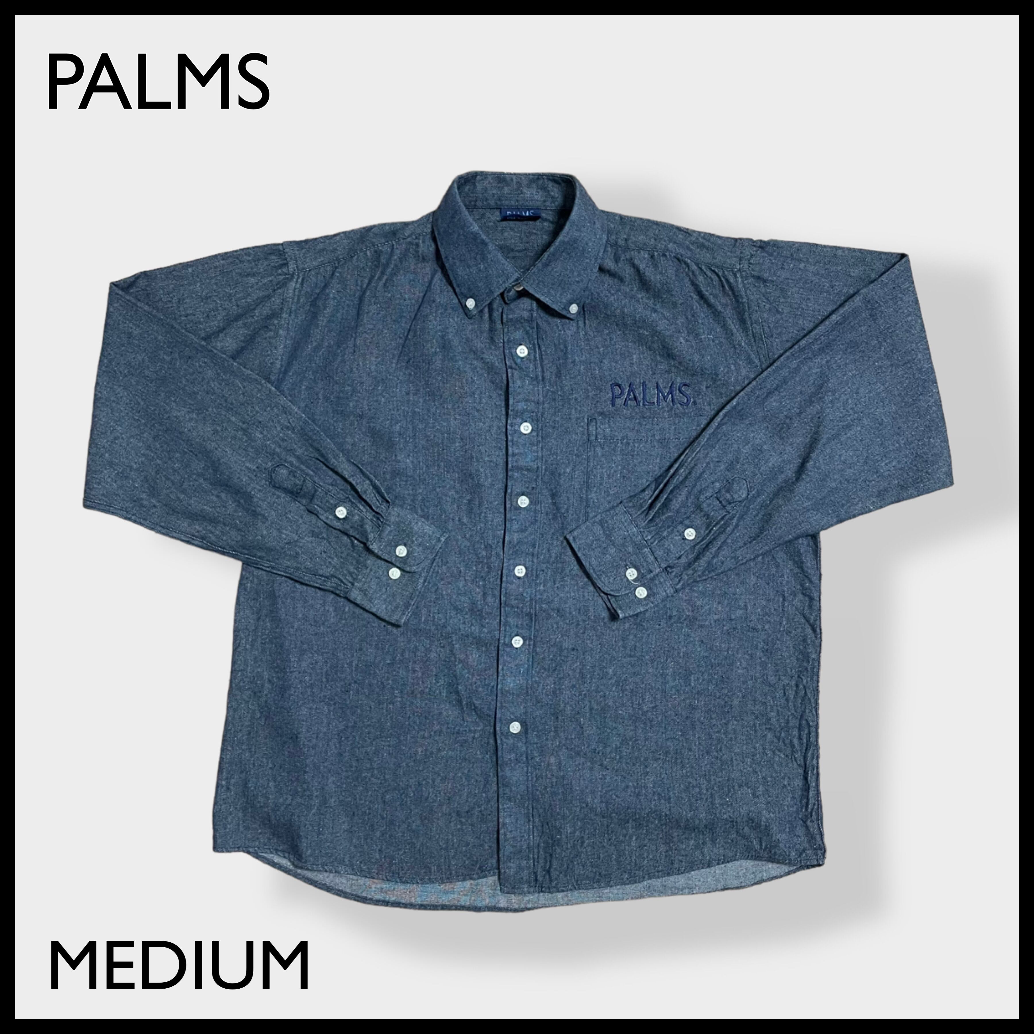 【PALMS】デニムシャツ 刺繍ロゴ ネイビー ボタンダウン カジュアルシャツ 長袖シャツ M US古着