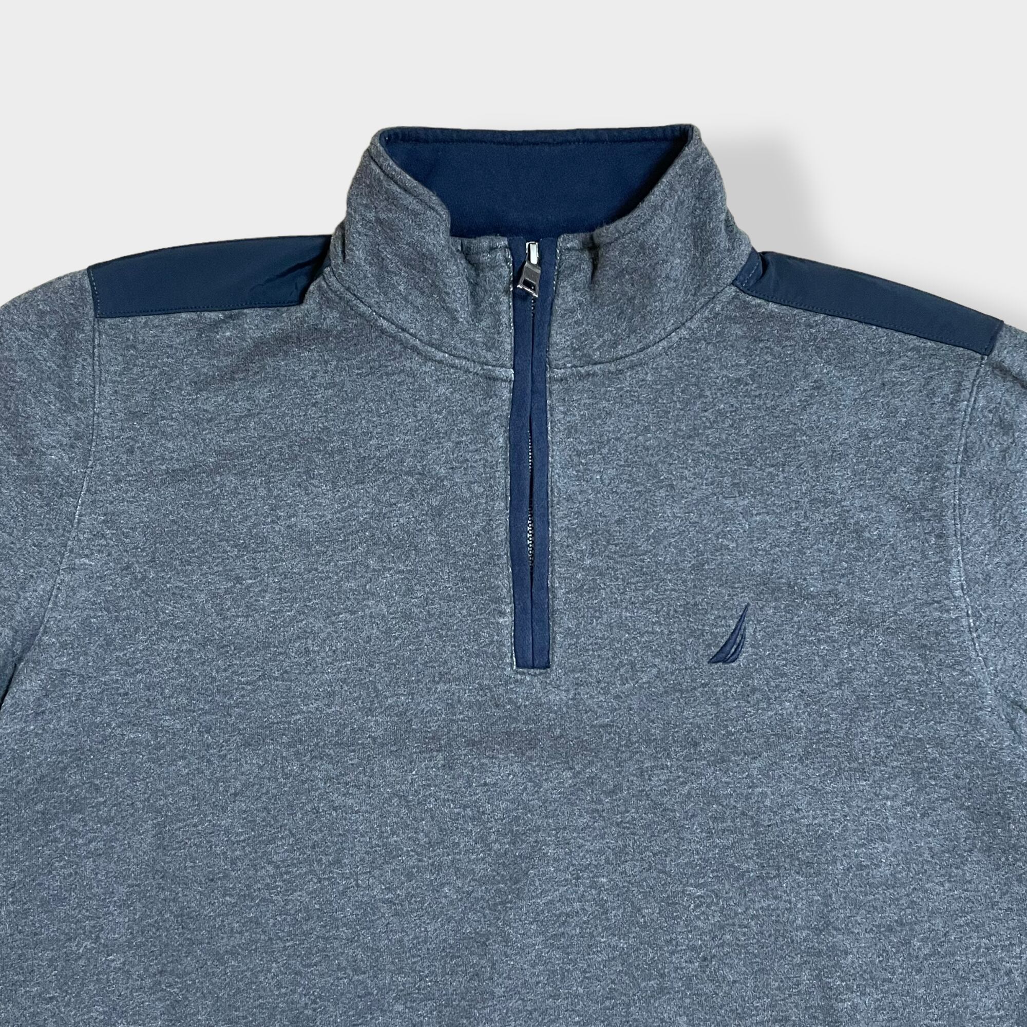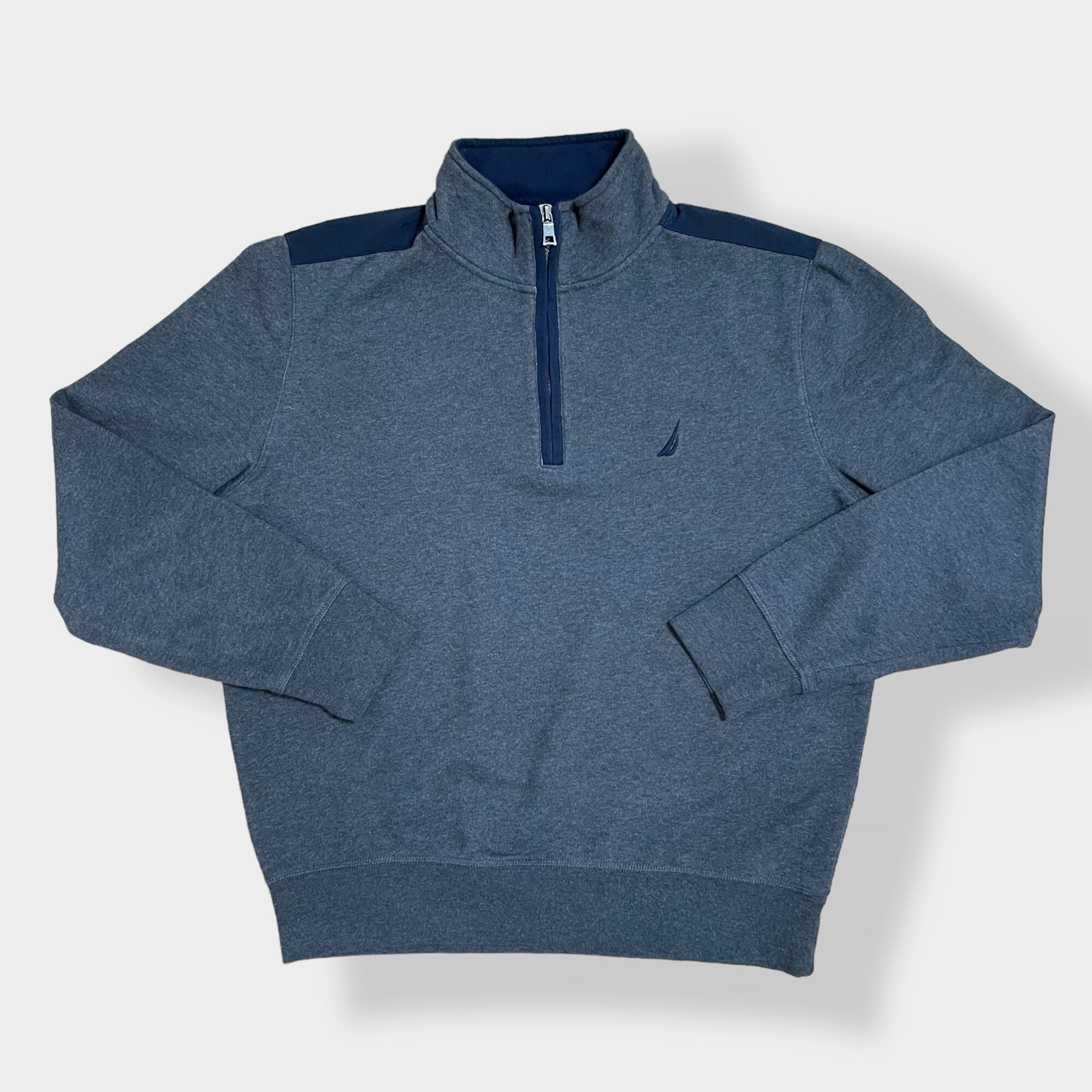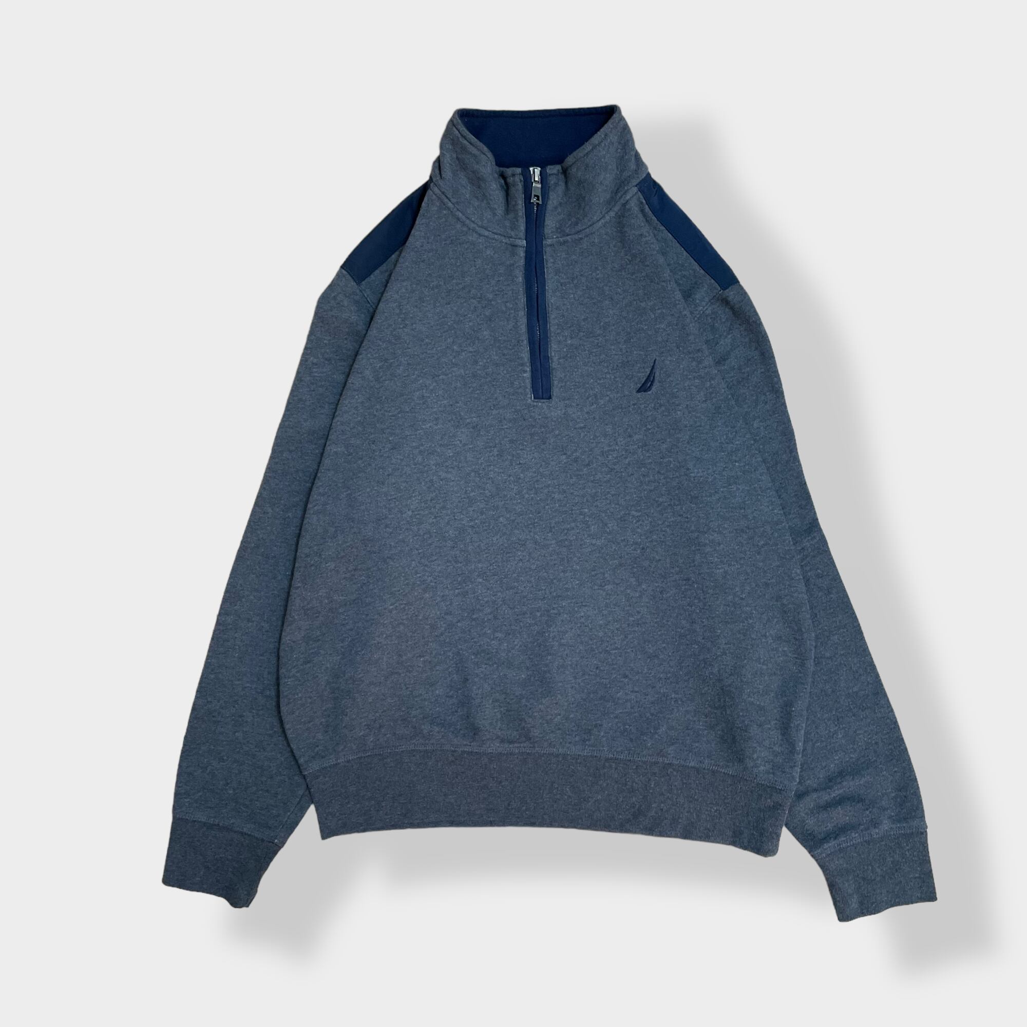 【NAUTICA】刺繍ロゴ バックロゴ ハーフジップ ワンポイントロゴ スウェット トレーナー プルオーバー バックヨーク 切替 US古着