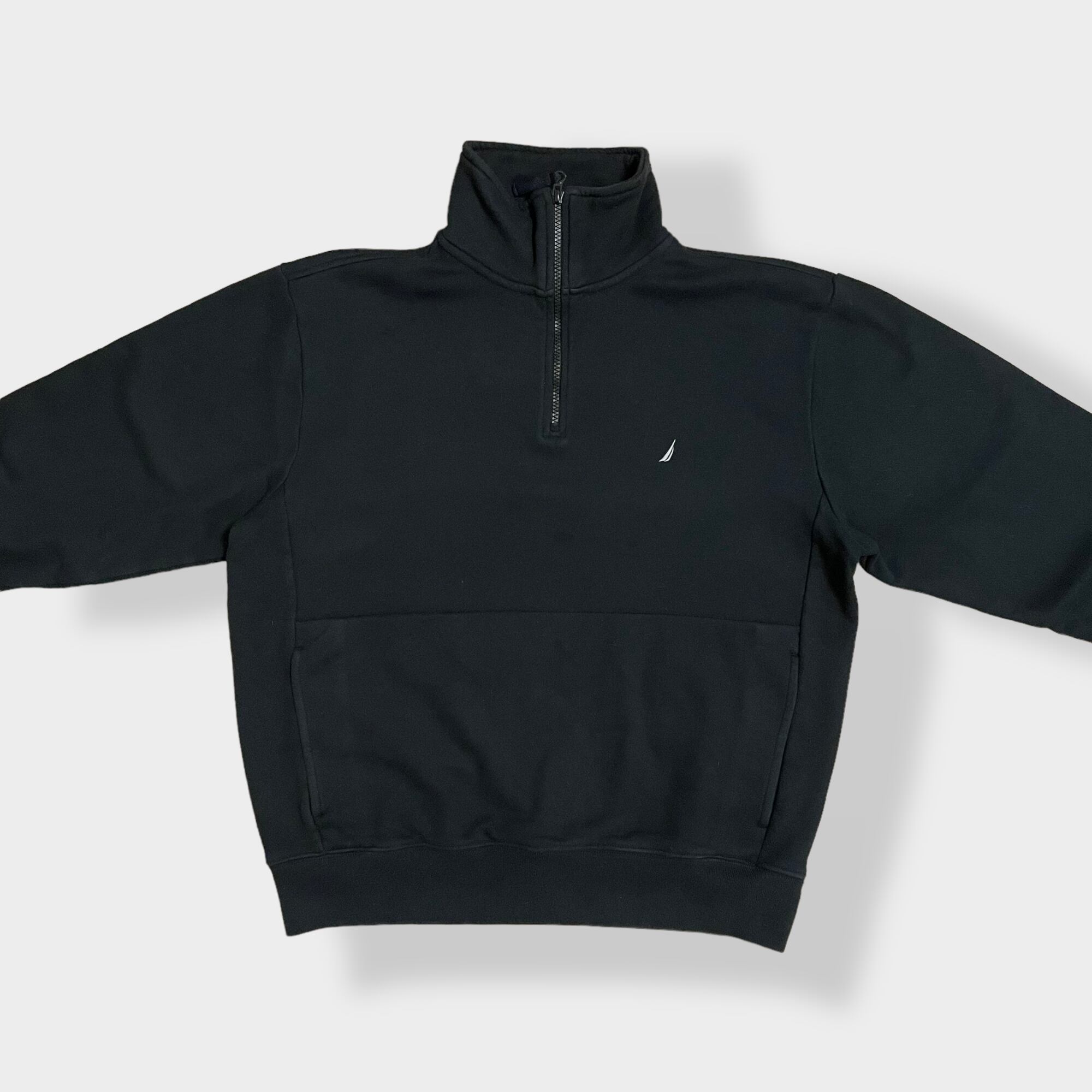 【NAUTICA】ハーフジップ スウェット プルオーバー 刺繍ロゴ ワンポイントロゴ M カンガルーポケット ノーティカ US古着