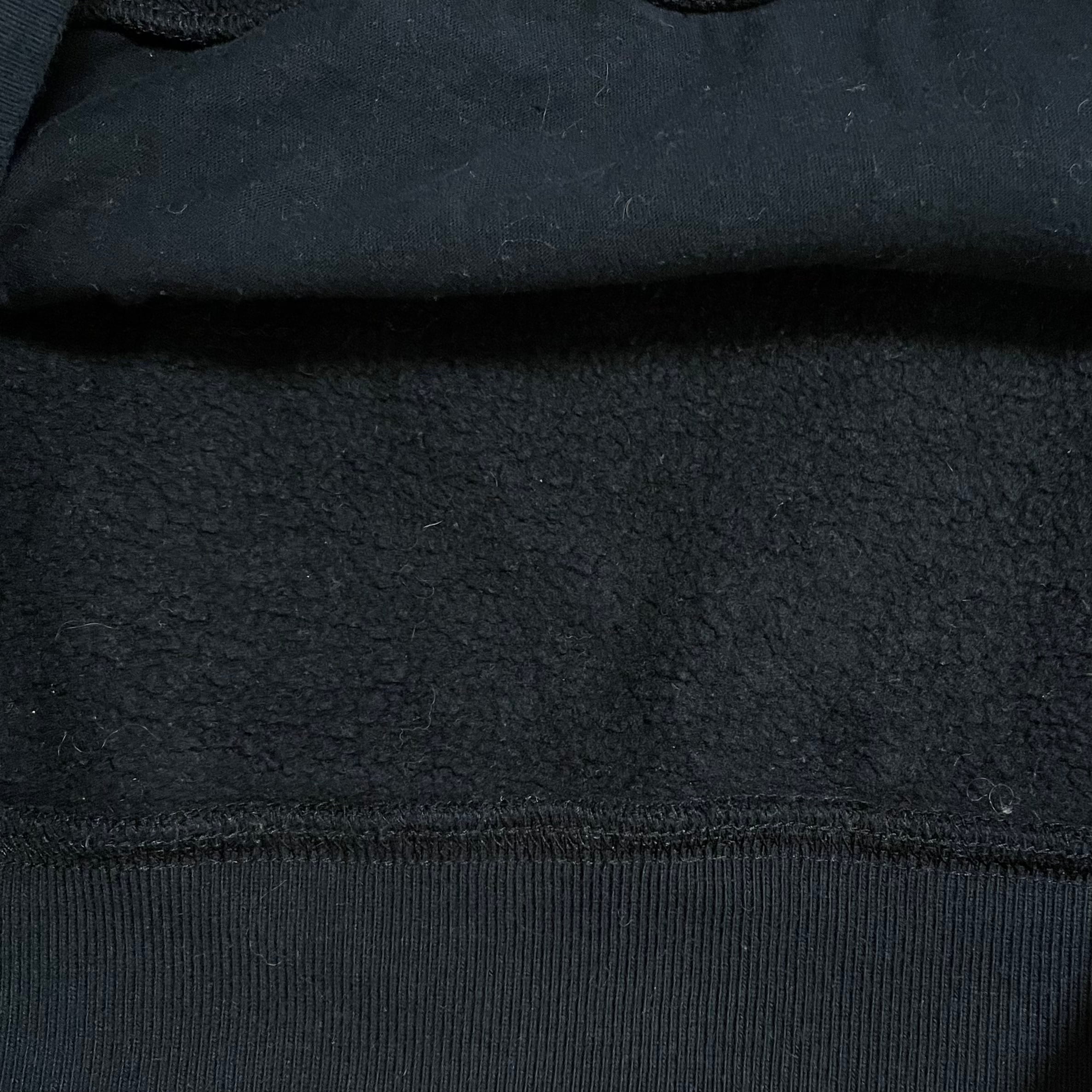 黒ボディ、胸にワンポイントロゴ、カンガルーポケット付きです。