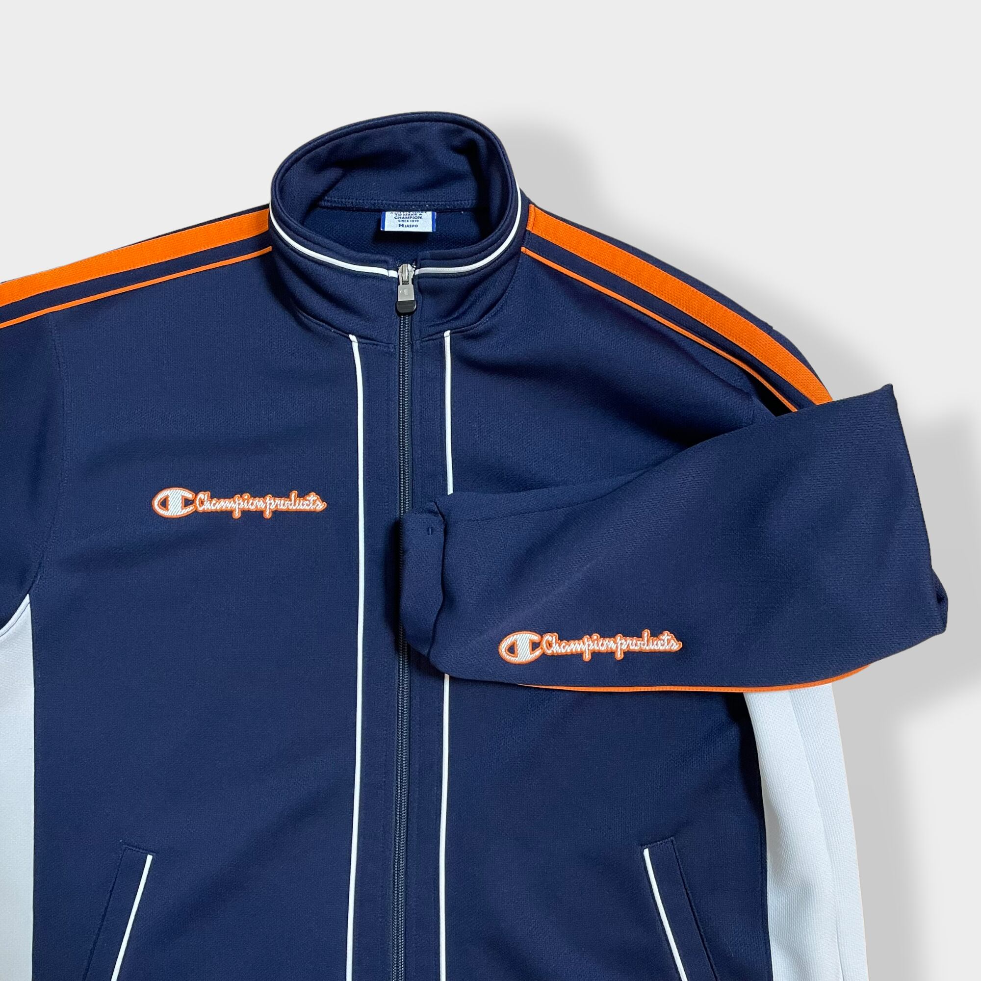 【champion】トラックジャケット ジャージ ブルゾン ジャケット 刺繍ロゴ 袖ロゴ フルジップ ジップアップ オレンジライン チャンピオン ゴールドウィン M US古着