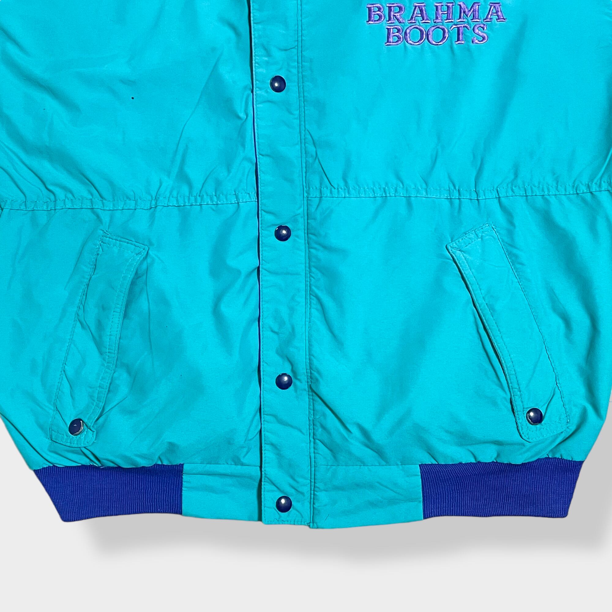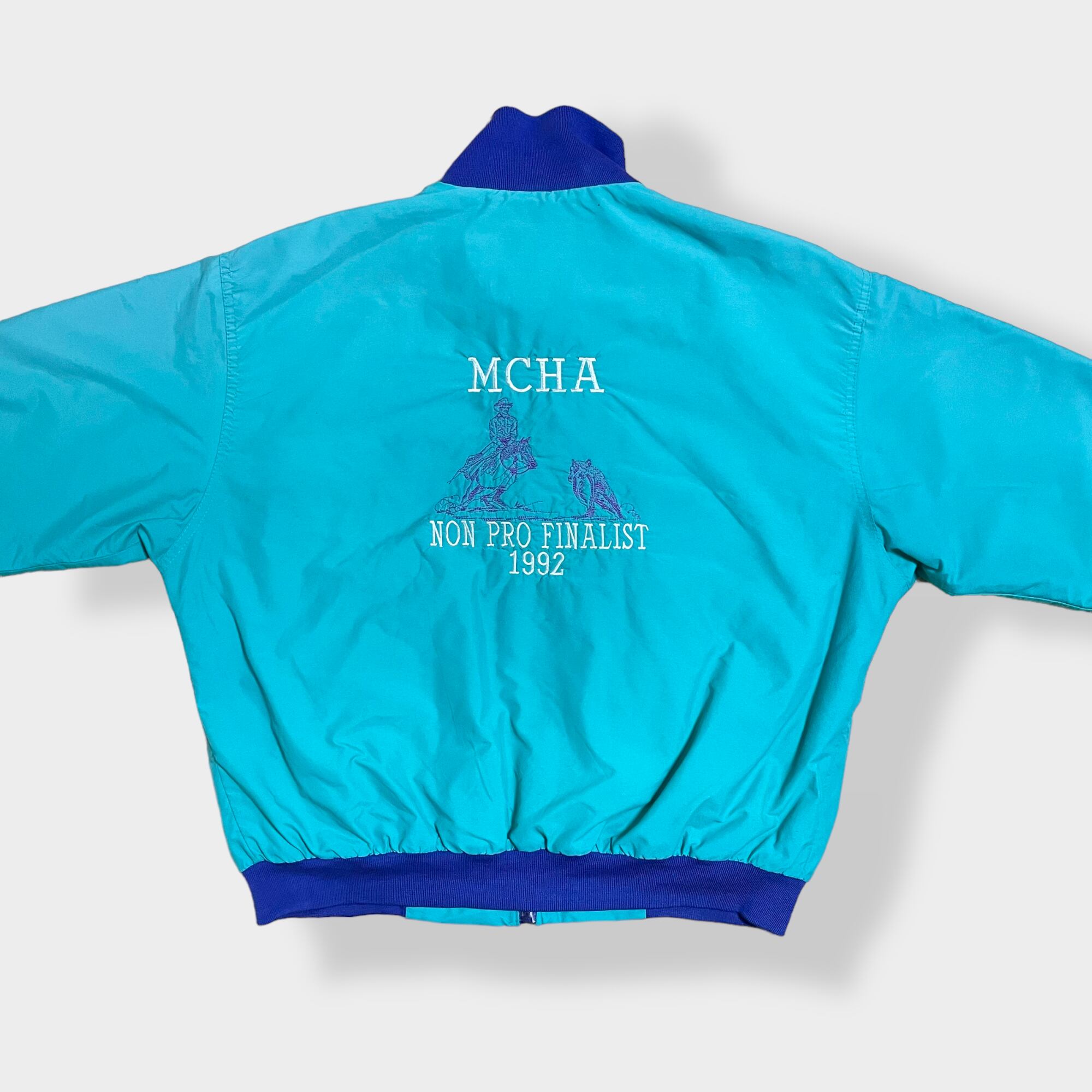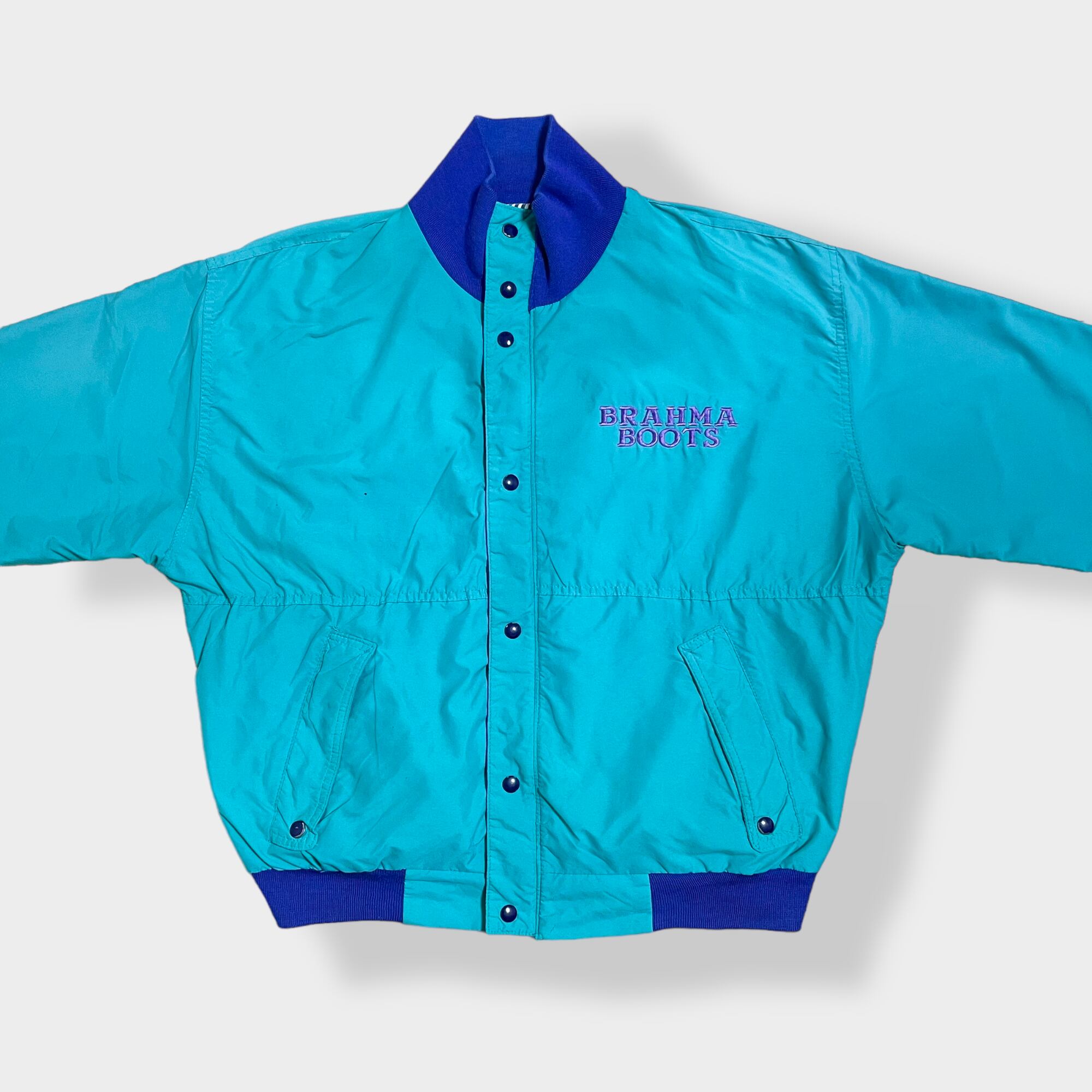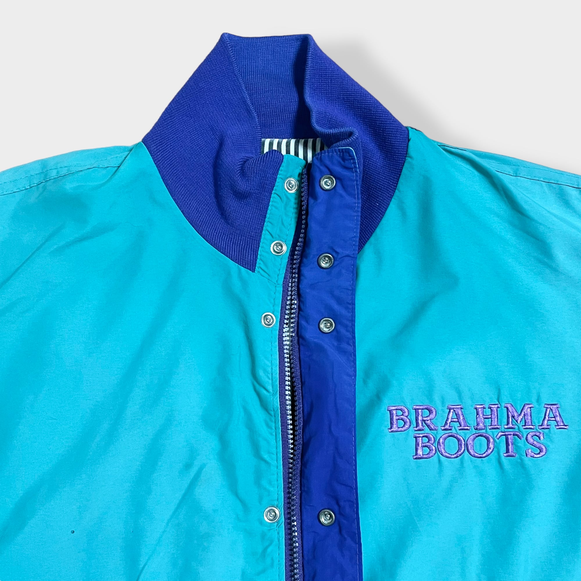 【wiman】 90s ブルゾン ジャケット ジャンパー フルジップ スナップ 刺繍 バックロゴ ストライプ ワンポイントロゴ エメラルドグリーン 切替 US古着