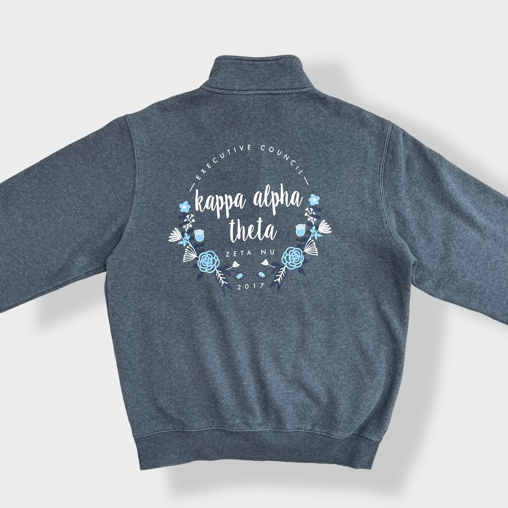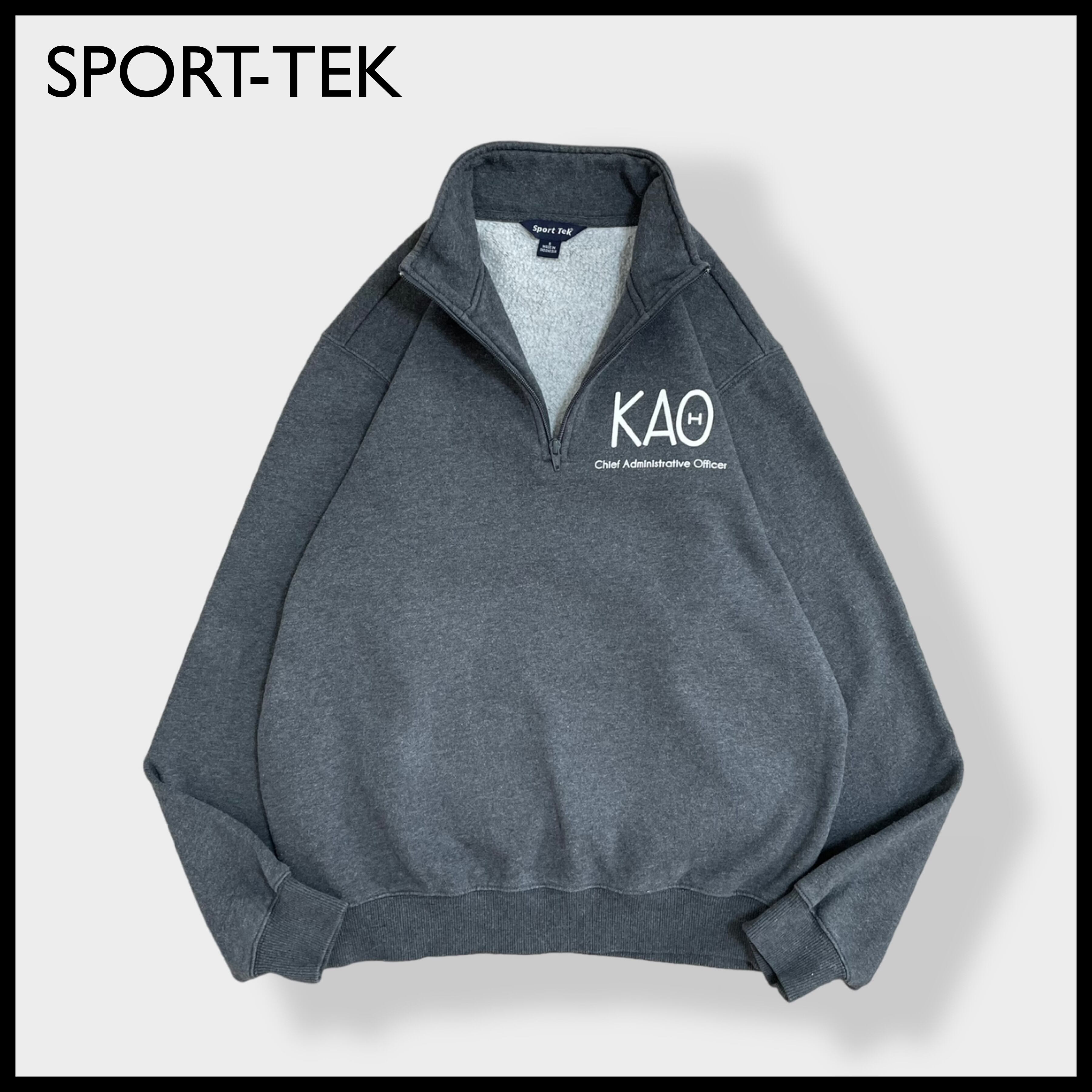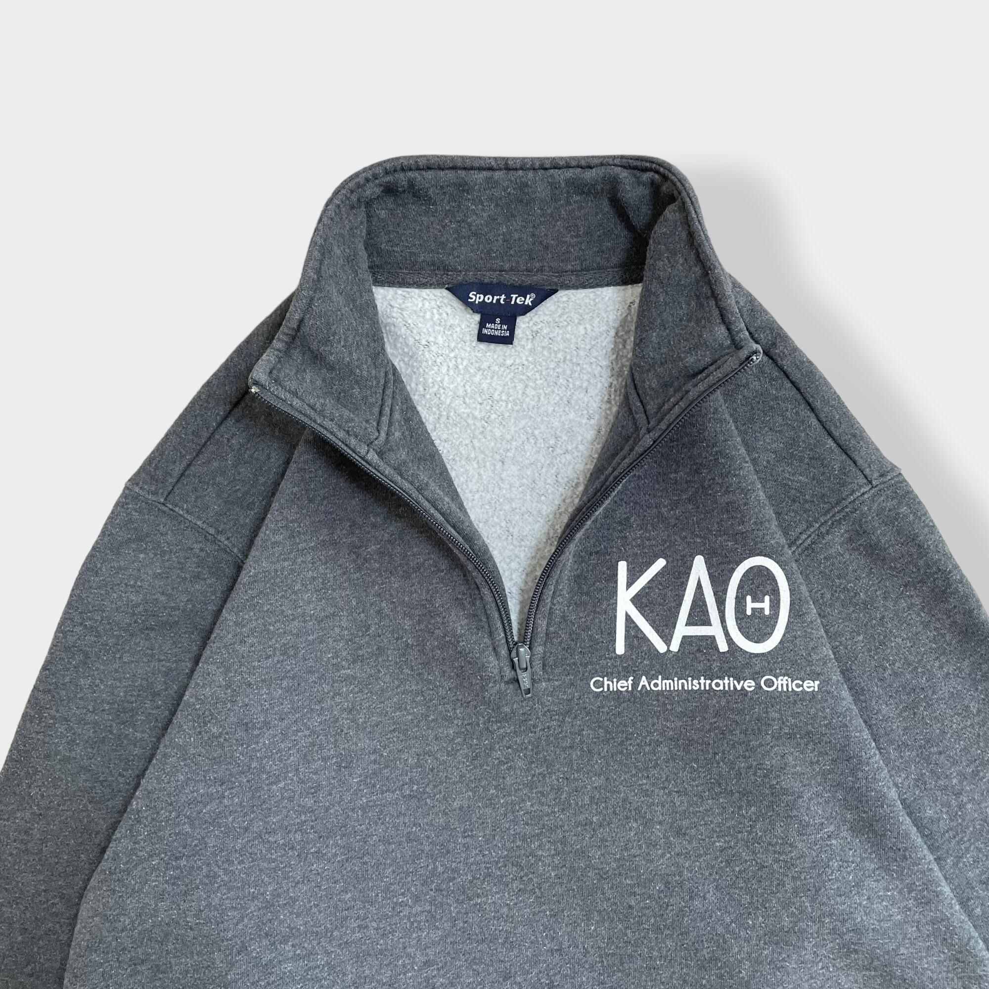 【SPORT-TEK】企業系 KAO CAO 最高管理責任者 ワンポイントロゴ バックプリント アーチロゴ ハーフジップ スウェット プルオーバー ダークグレー 裏起毛 S US古着