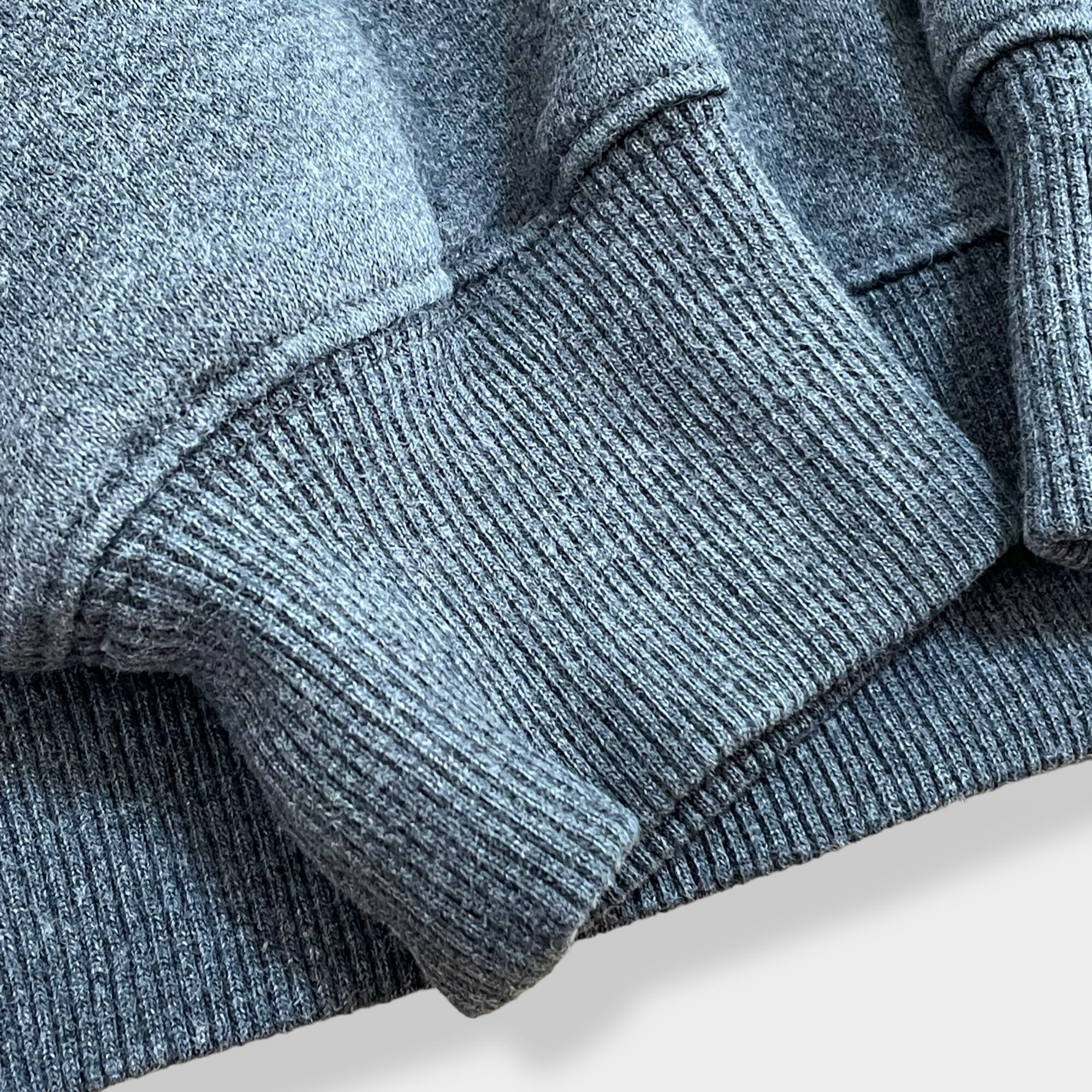 胸にワンポイントロゴ、バックにアーチロゴ、イラストがプリントされています。裏起毛、サイズ表記はS、サイズ感はメンズM〜L相当です。実寸をご参考ください。