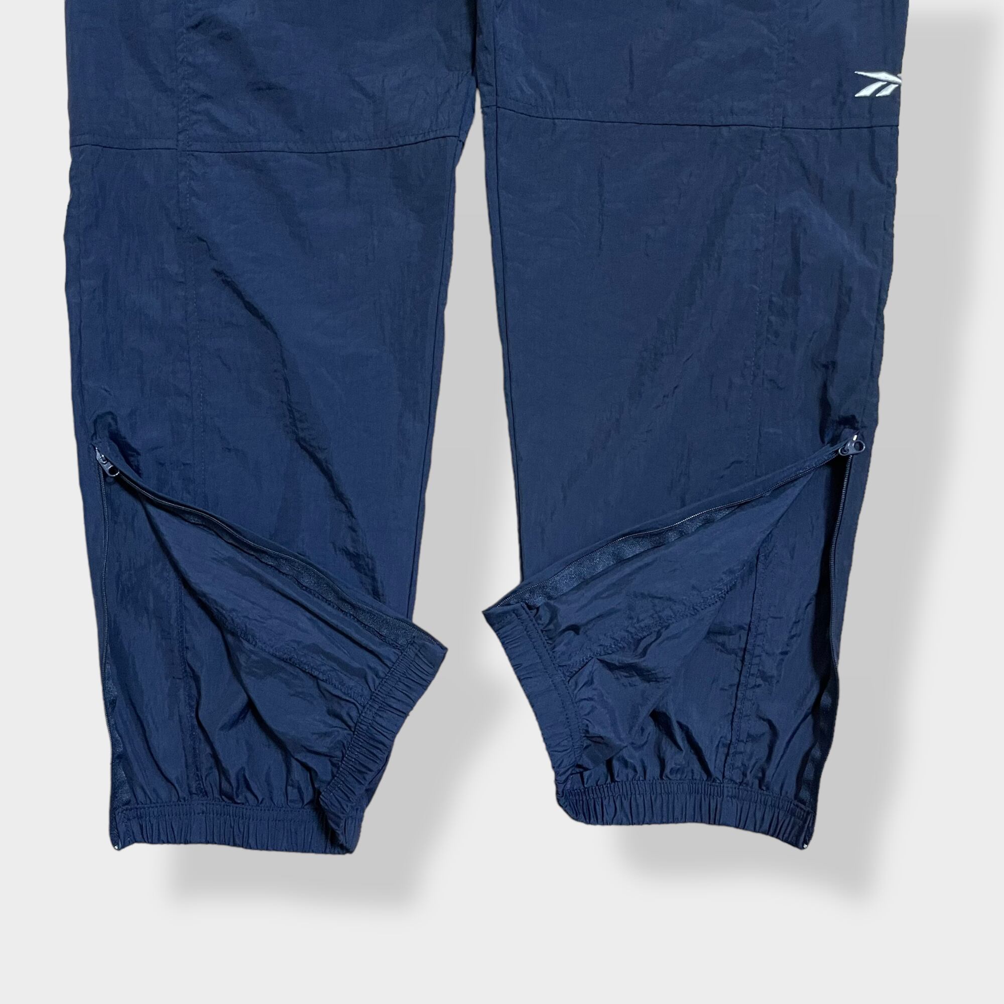 【Reebok】シャカパン ナイロンパンツ ウインドブレーカーパンツ イージーパンツ ズボン 裾チャック 裾ジップ ナイロン 刺繍ロゴ M ネイビー リーボック US古着