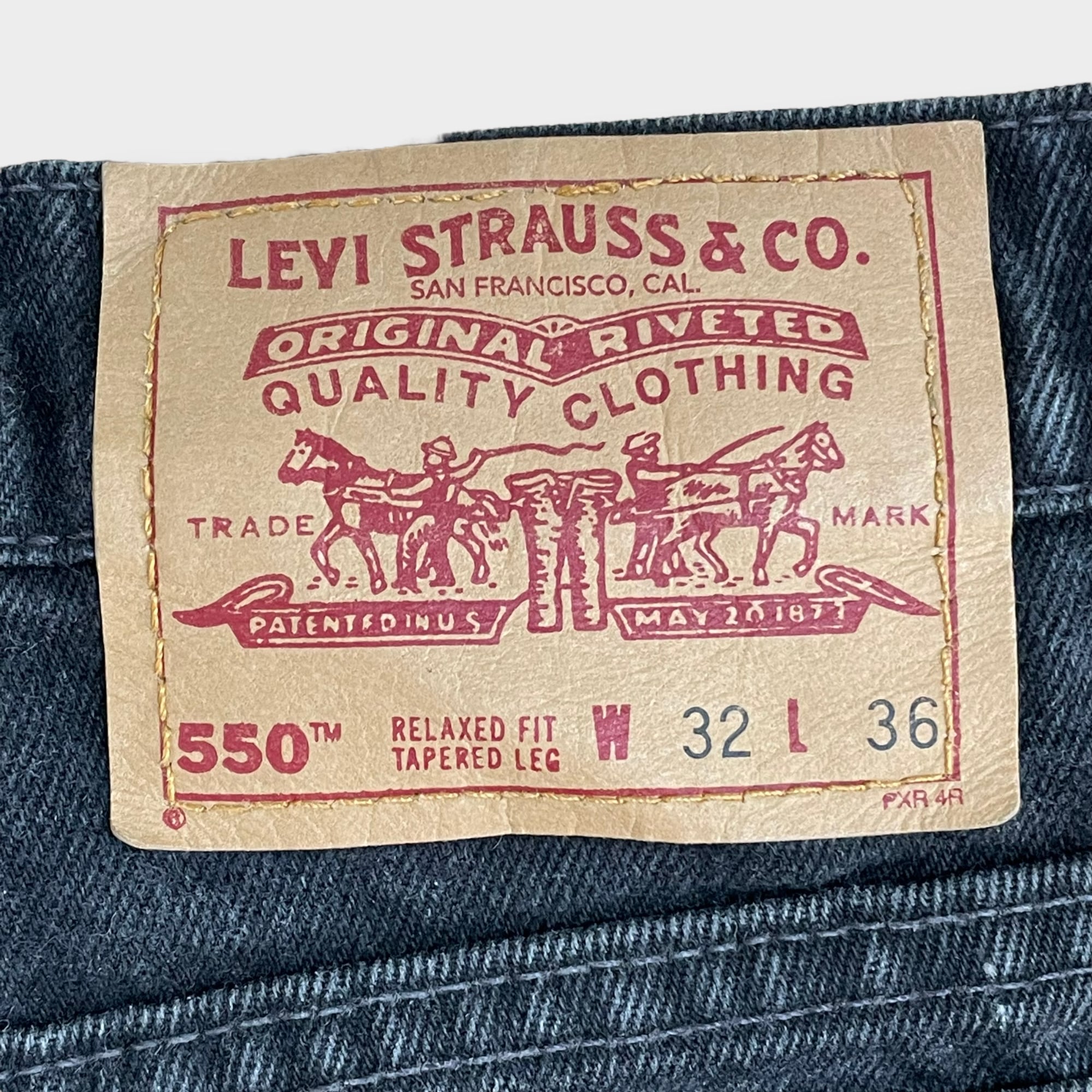 【LEVI'S】90s USA製 550 ブラックデニム ジーパン ジーンズ W32 L36 ボタン裏 刻印553 サンベニート工場 テーパード リーバイス ヴィンテージ 雰囲気系 黒 US古着
