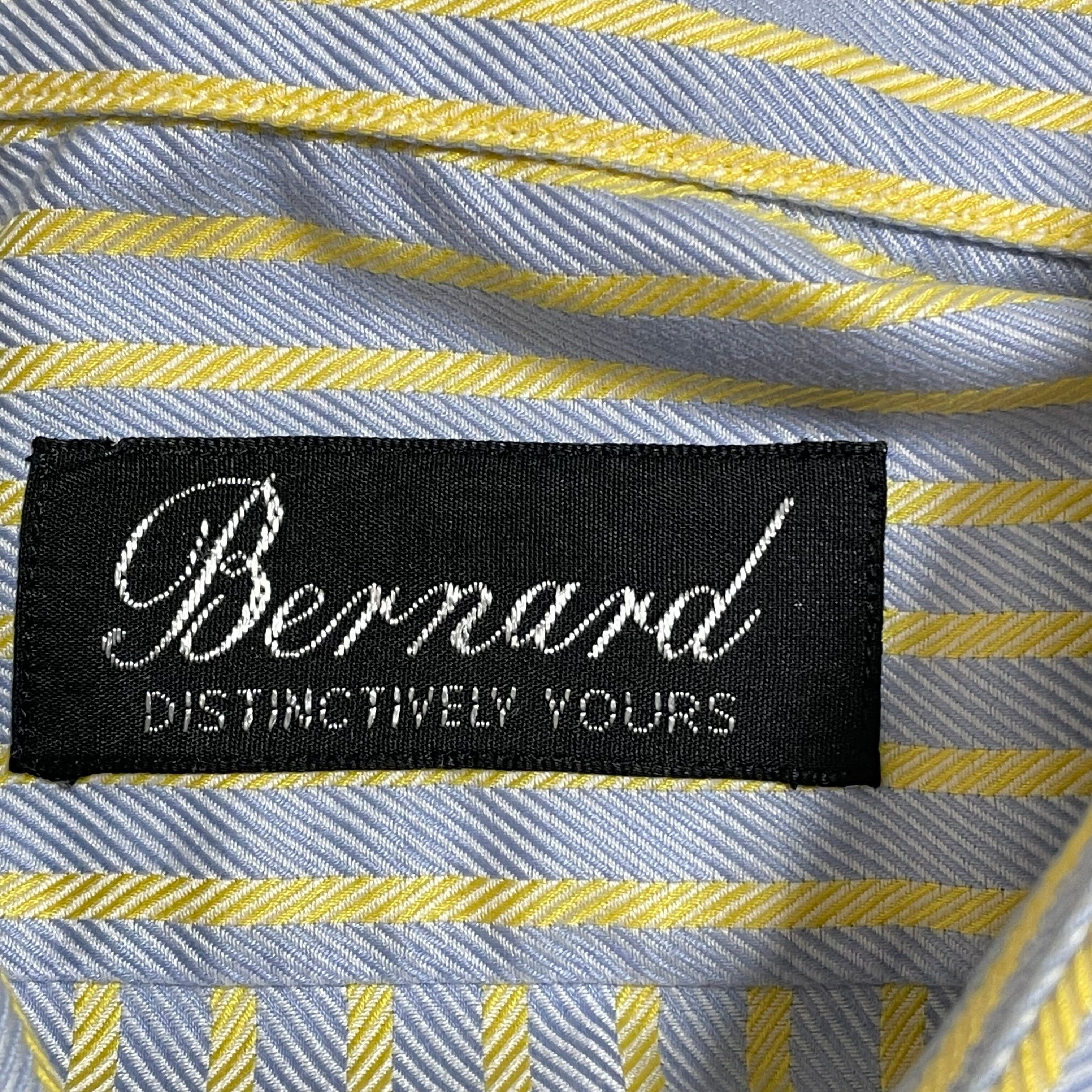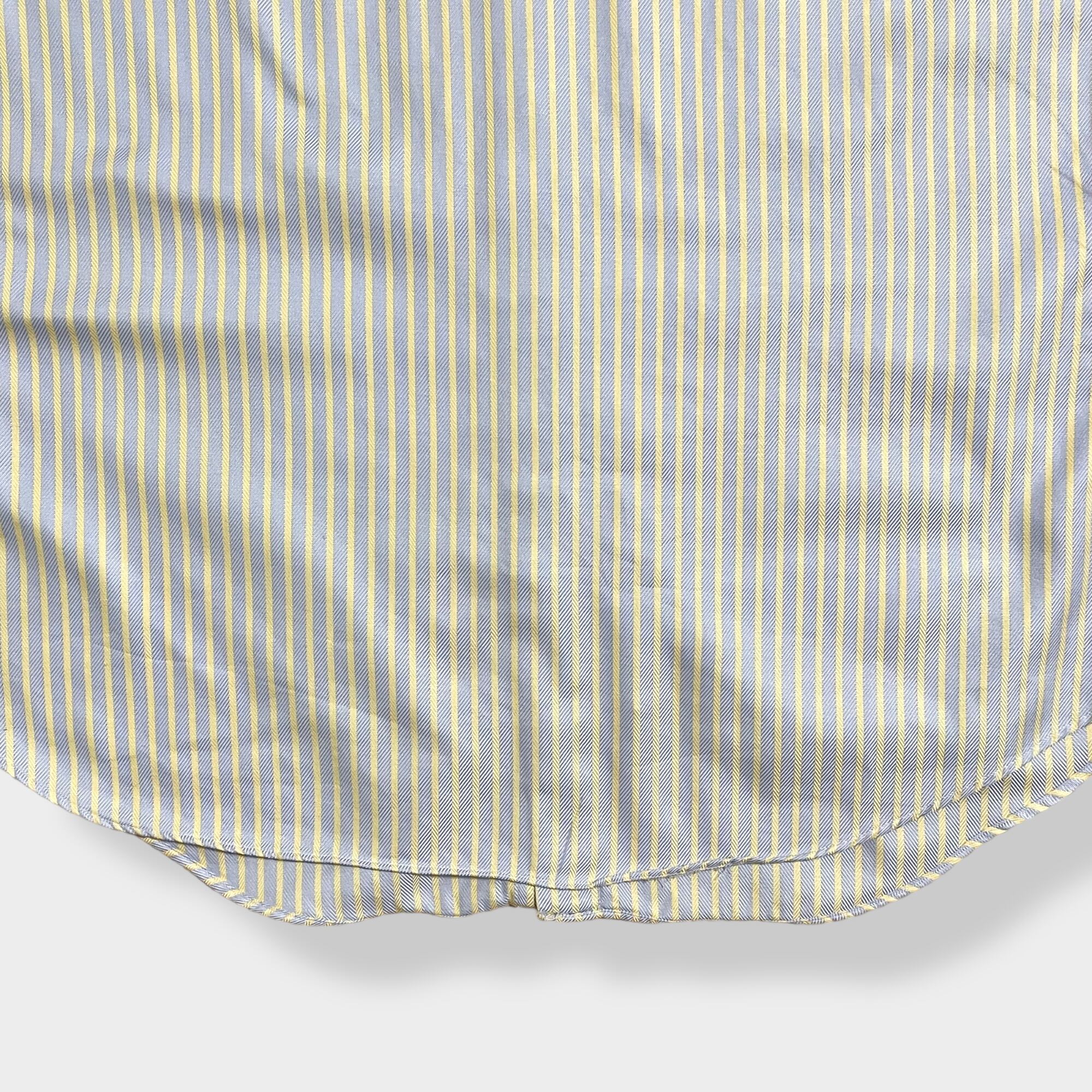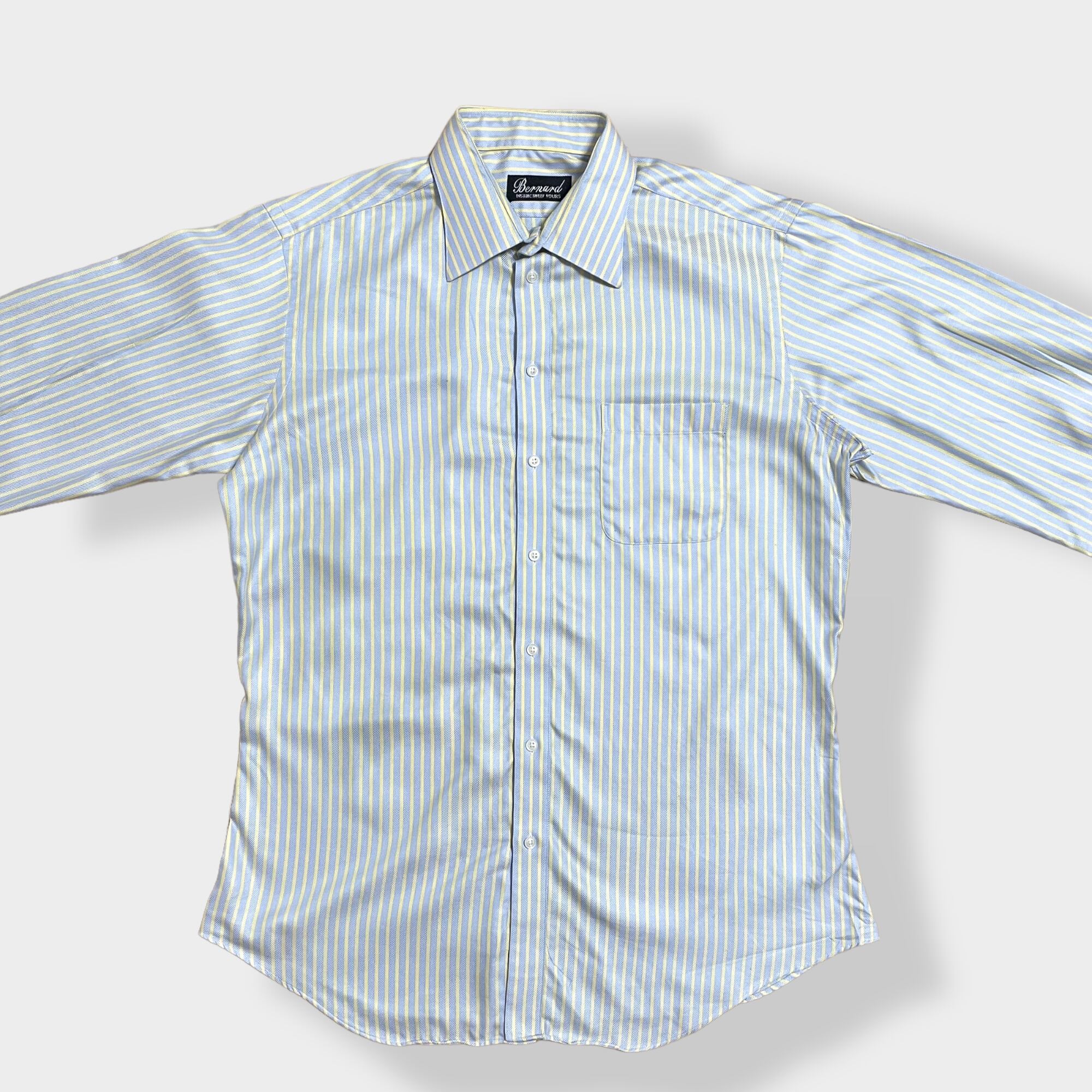 【Bernard】USA製 ビッグサイズ ストライプシャツ 長袖シャツ コットン 刺繍ロゴ ライトイエロー ライトブルー バーナード US古着