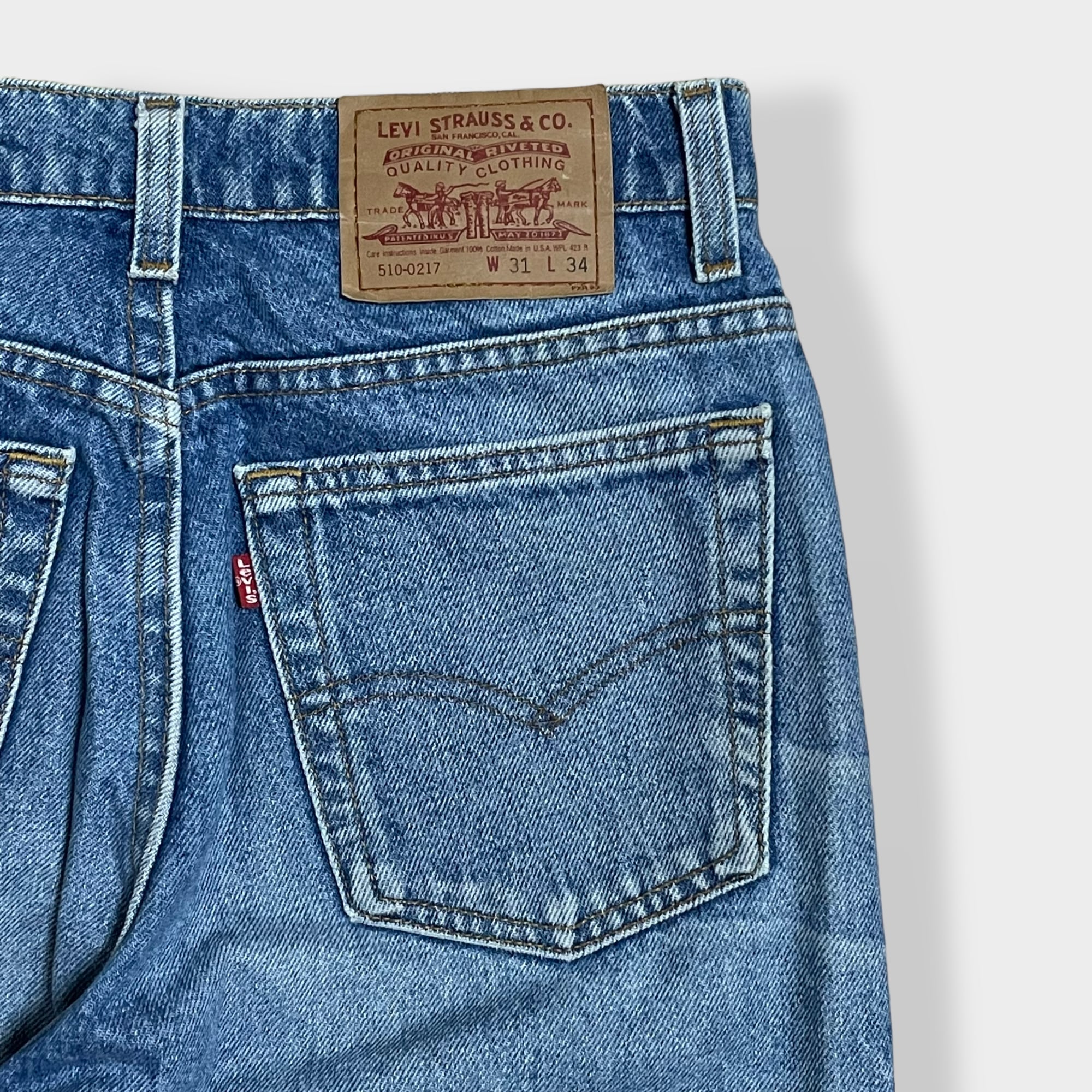 【LEVI'S】90s USA製 510-0217 デニム ジーンズ ジーパン スリム テーパード W31 ヒゲ ボタン裏 刻印 525 エルパソ工場 リーバイス 1994 us古着
