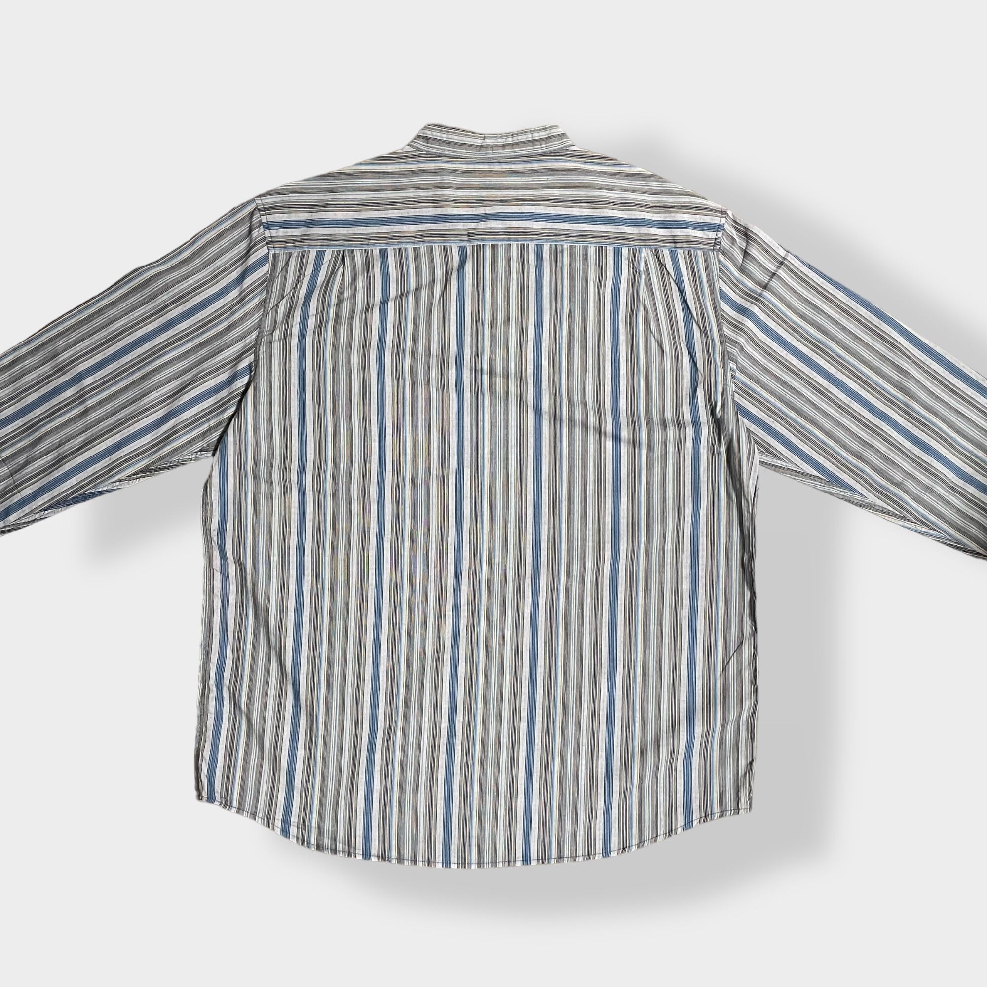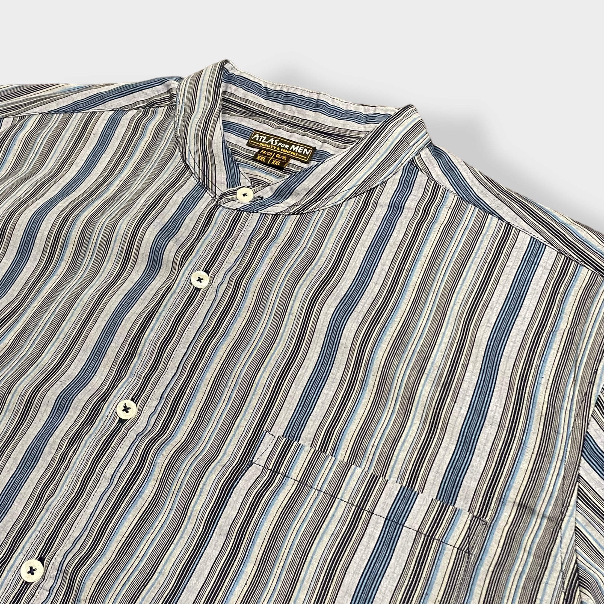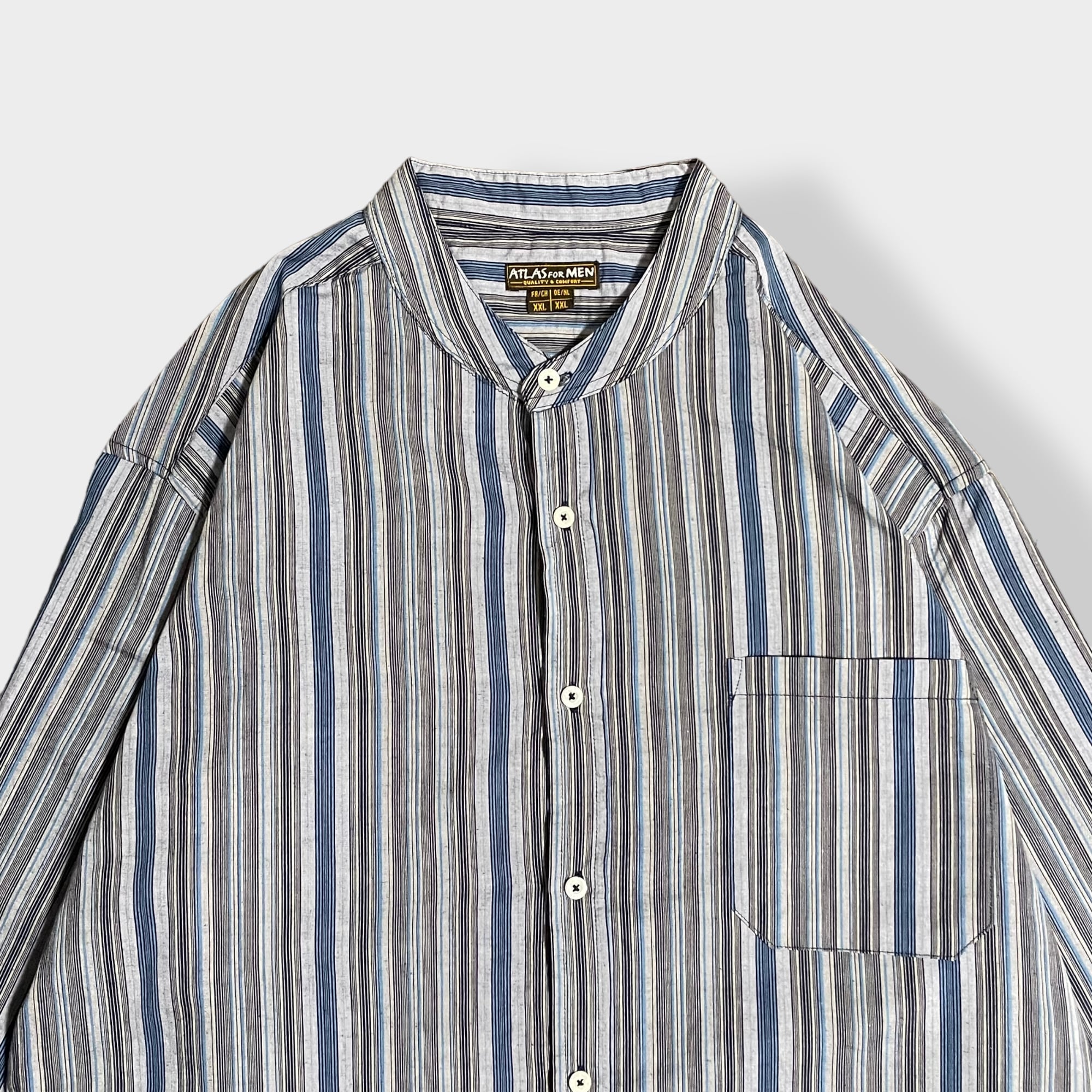 【ATLAS FOR MEN】ノーカラーシャツ ストライプ 柄シャツ 長袖 コットン XXL ビッグサイズ オーバーサイズ US古着