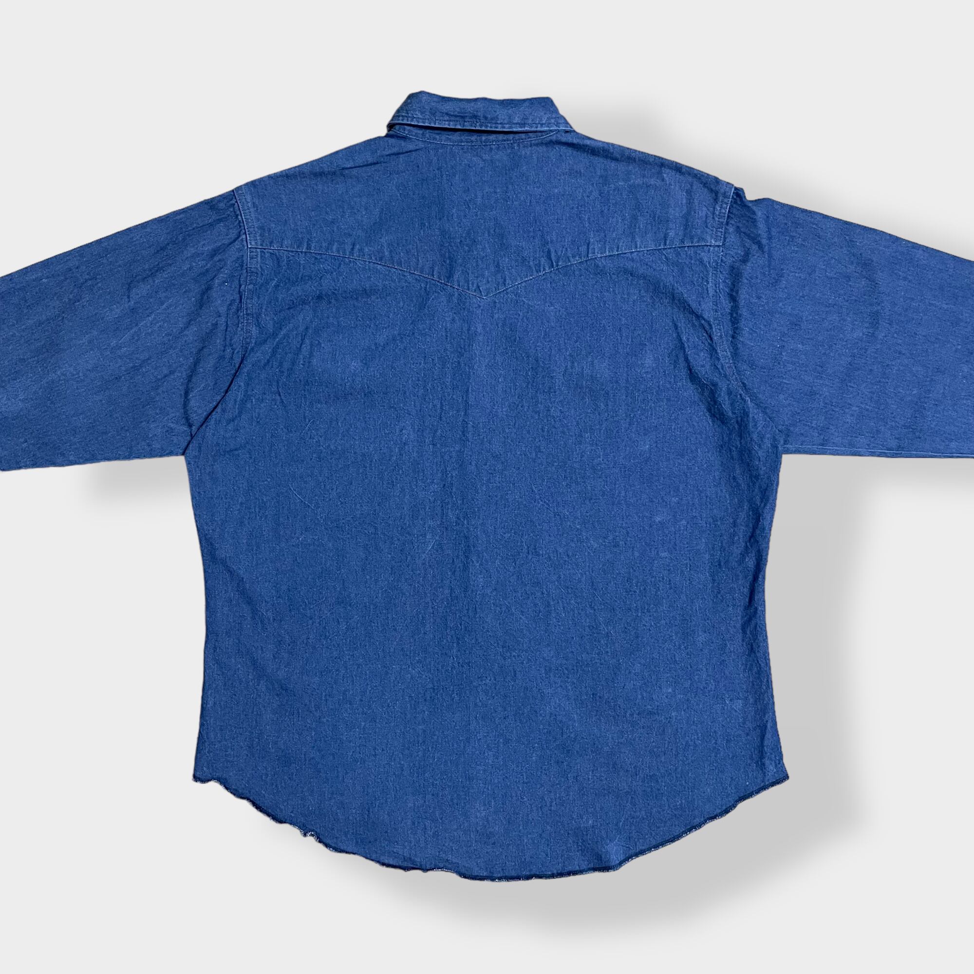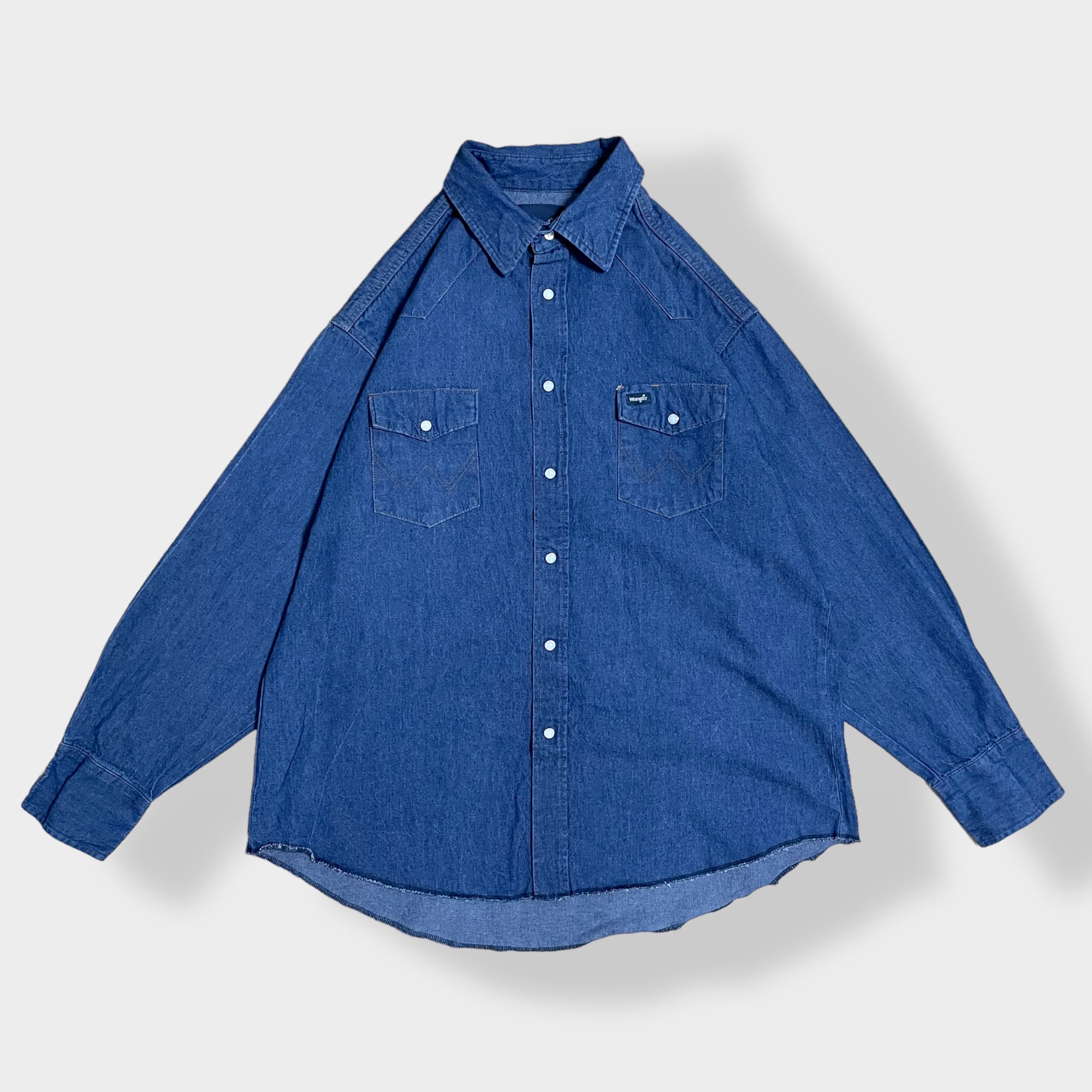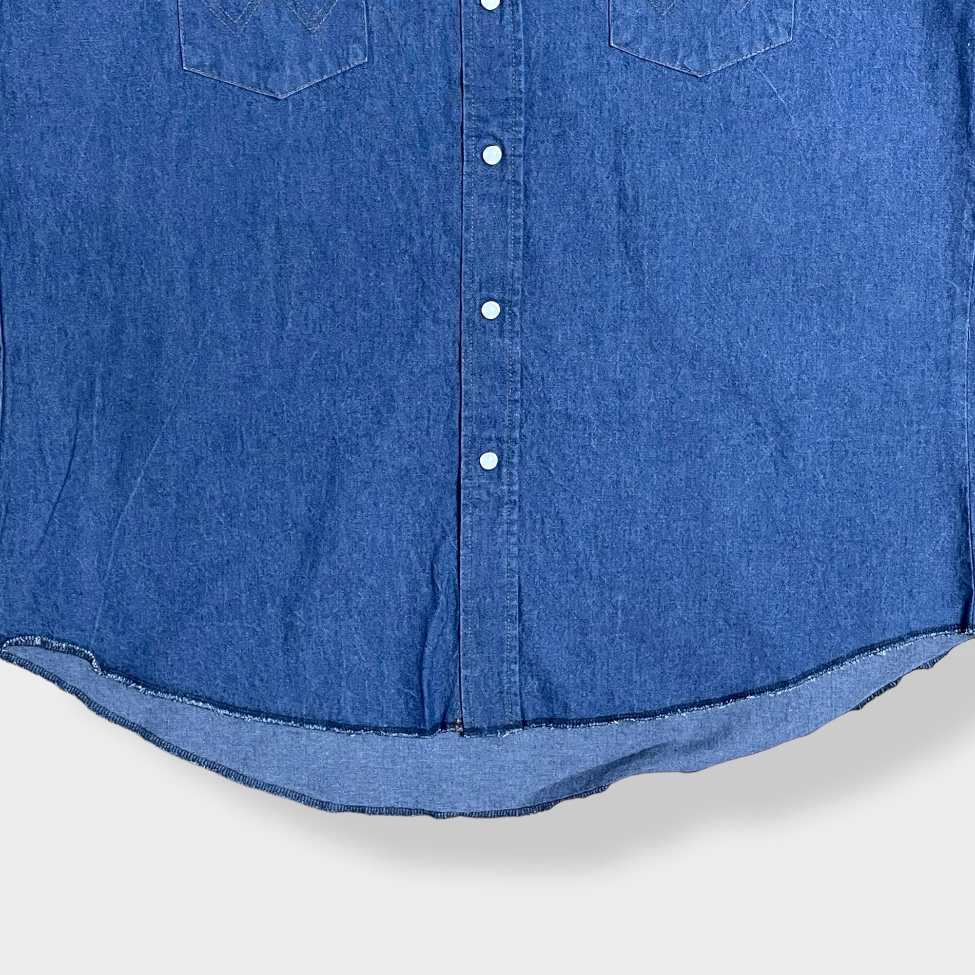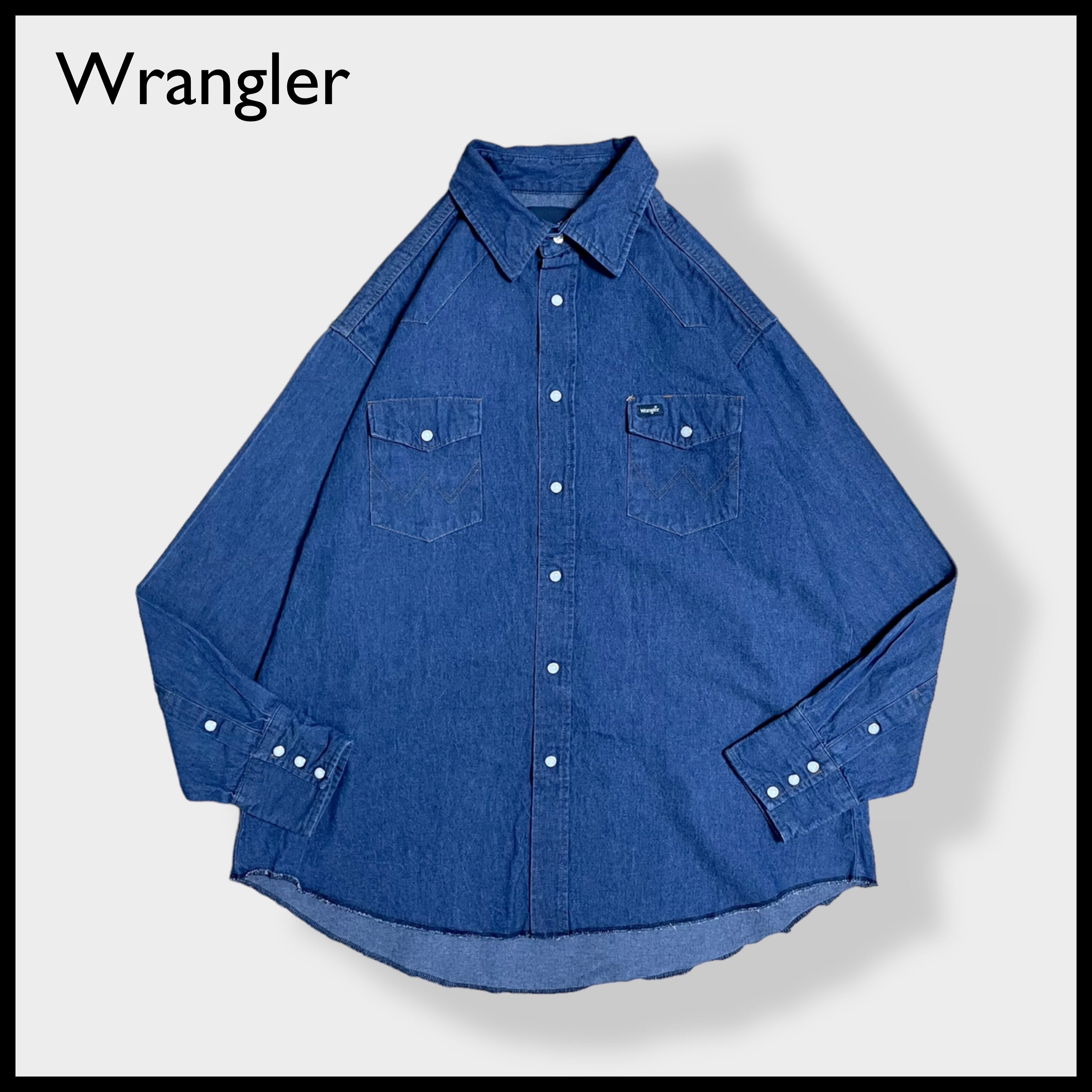 【Wrangler】ウエスタンデニムシャツ デニムシャツ ウエスタンシャツ ショルダーヨーク フラップポケット XL相当 ビッグシルエット 濃紺 ラングラー us古着