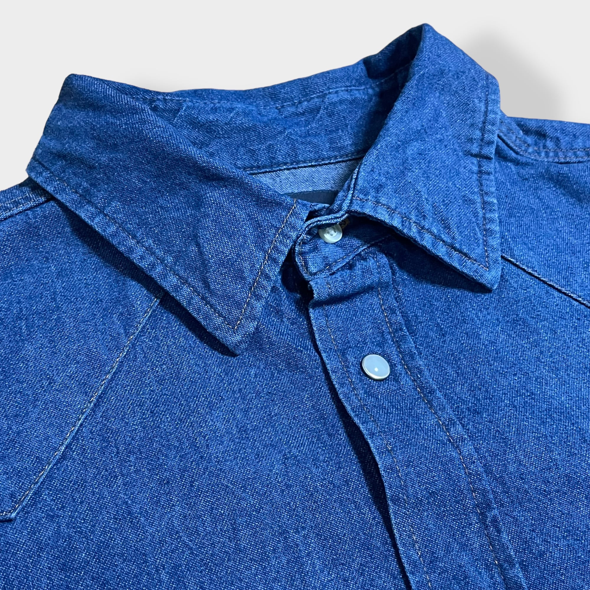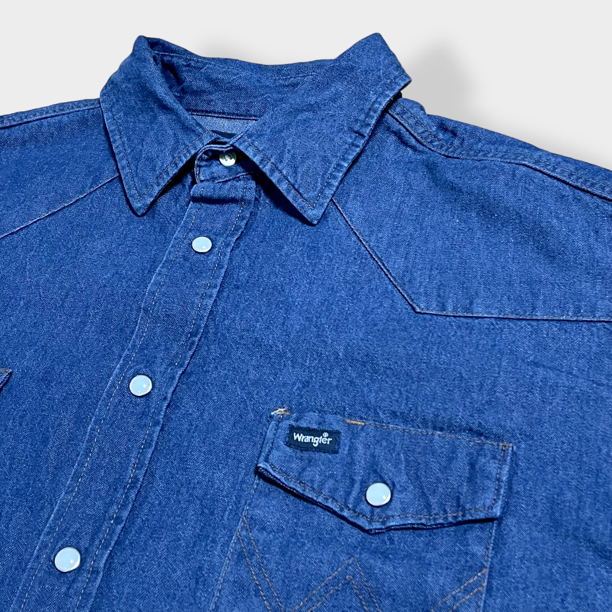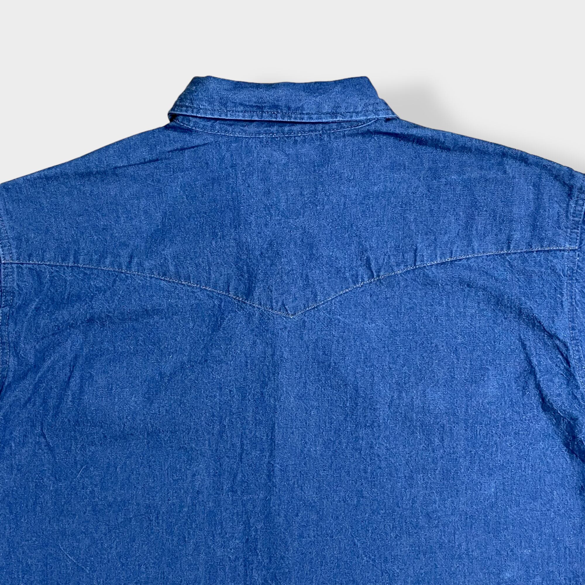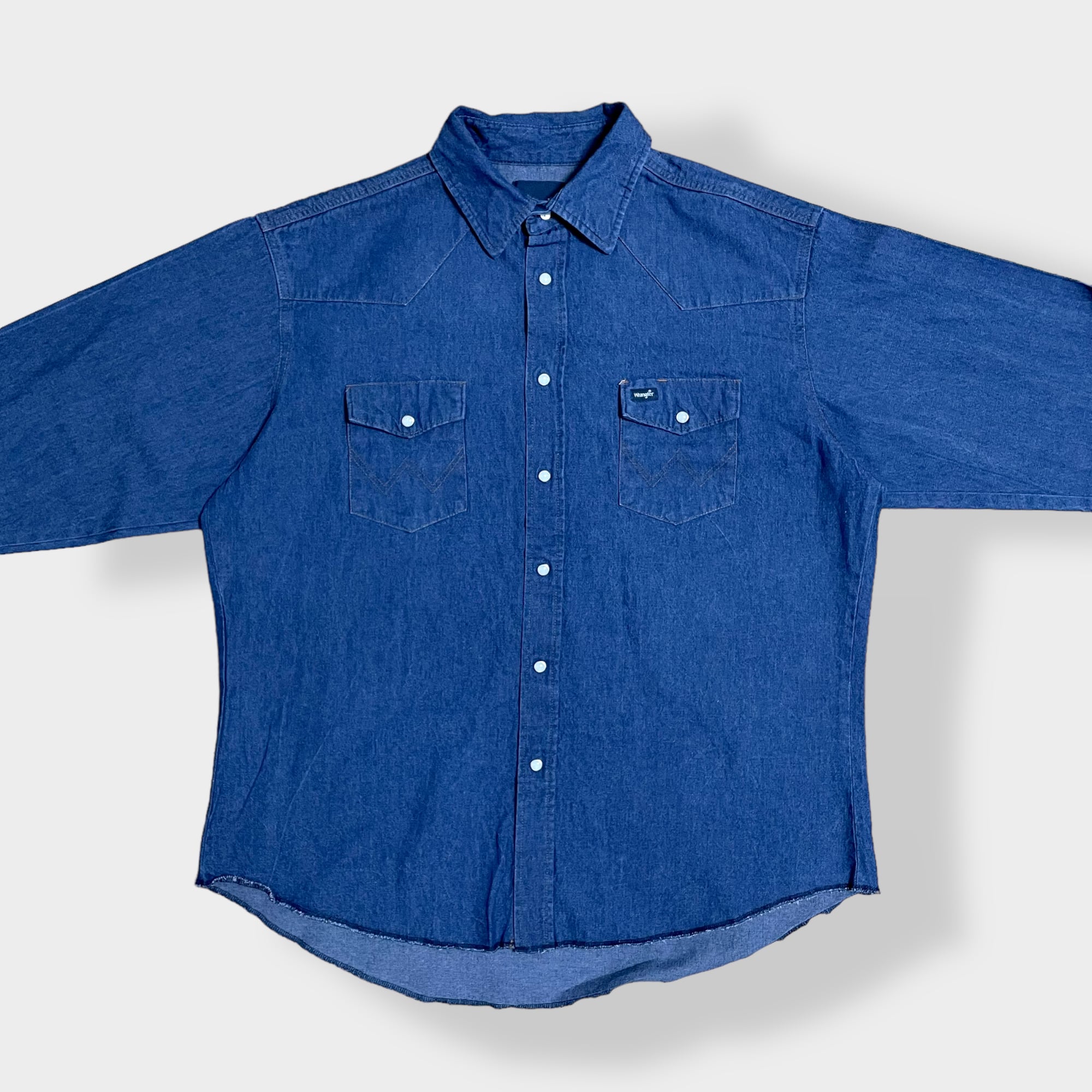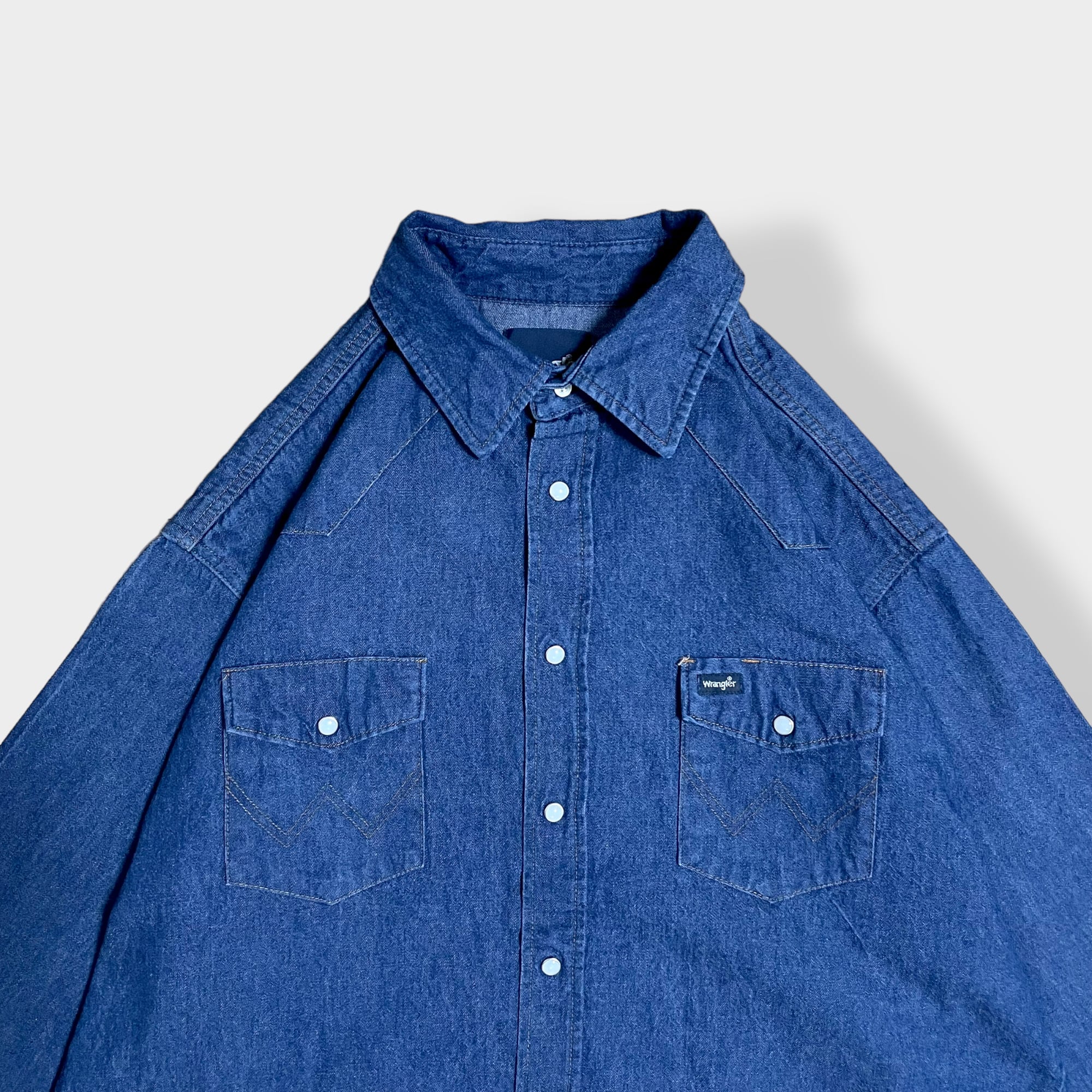 【Wrangler】ウエスタンデニムシャツ デニムシャツ ウエスタンシャツ ショルダーヨーク フラップポケット XL相当 ビッグシルエット 濃紺 ラングラー us古着