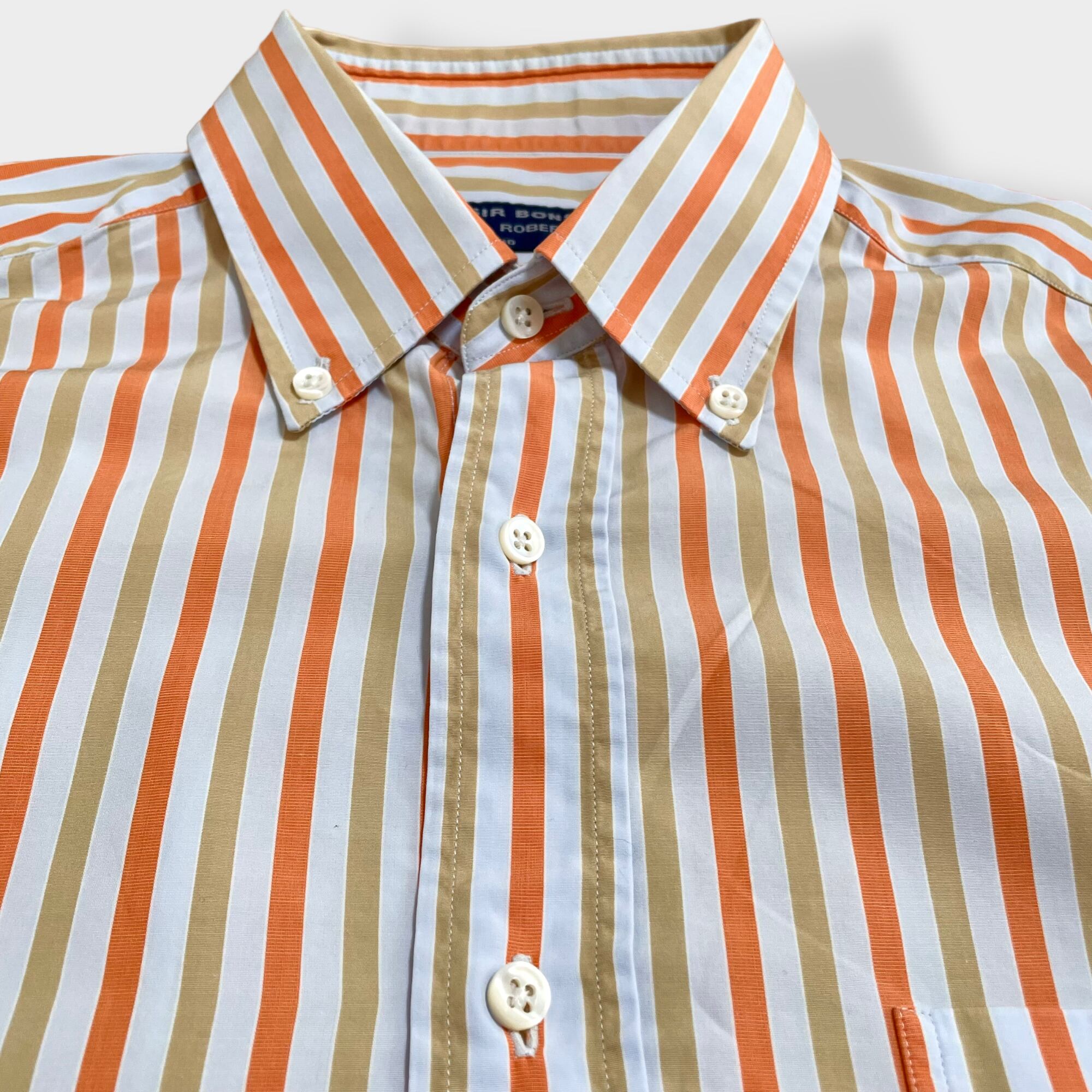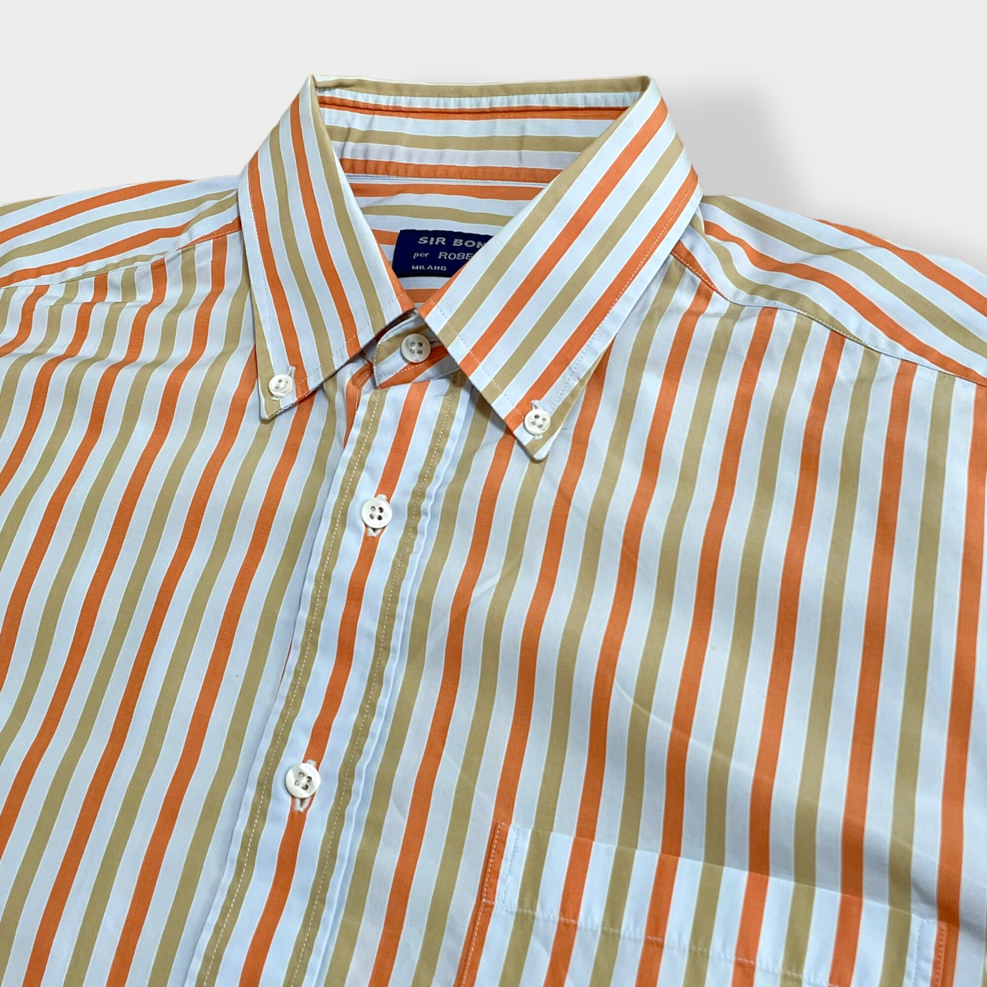 【SIR BONSER】イタリア製 ストライプシャツ ボタンダウン マルチカラー 長袖シャツ カジュアルシャツ L ビッグサイズ 春物 MADE IN ITALY ヨーロッパ古着 EU古着