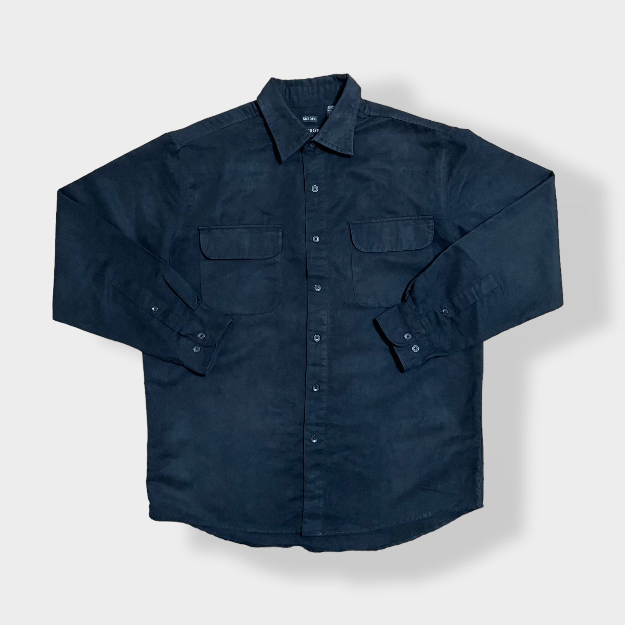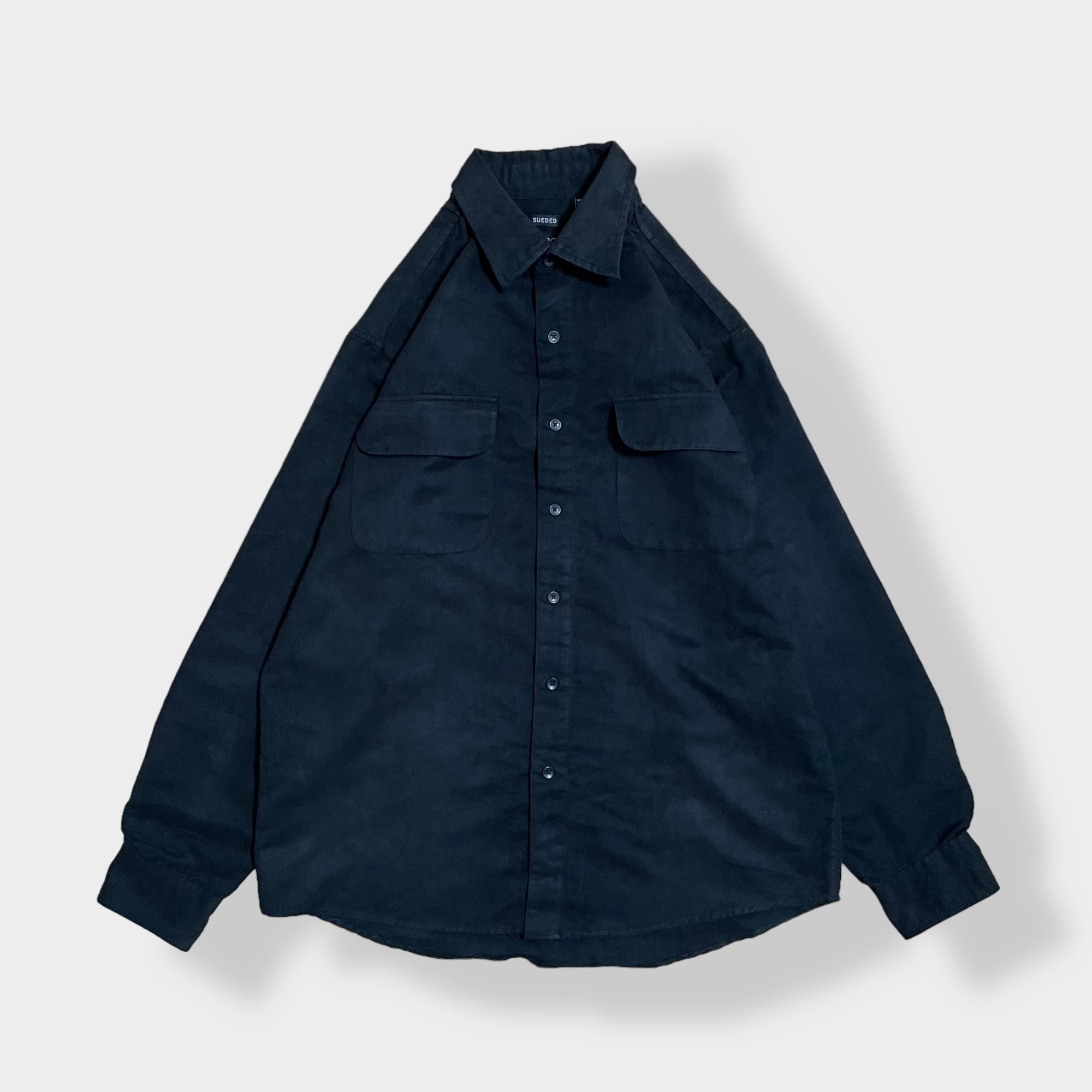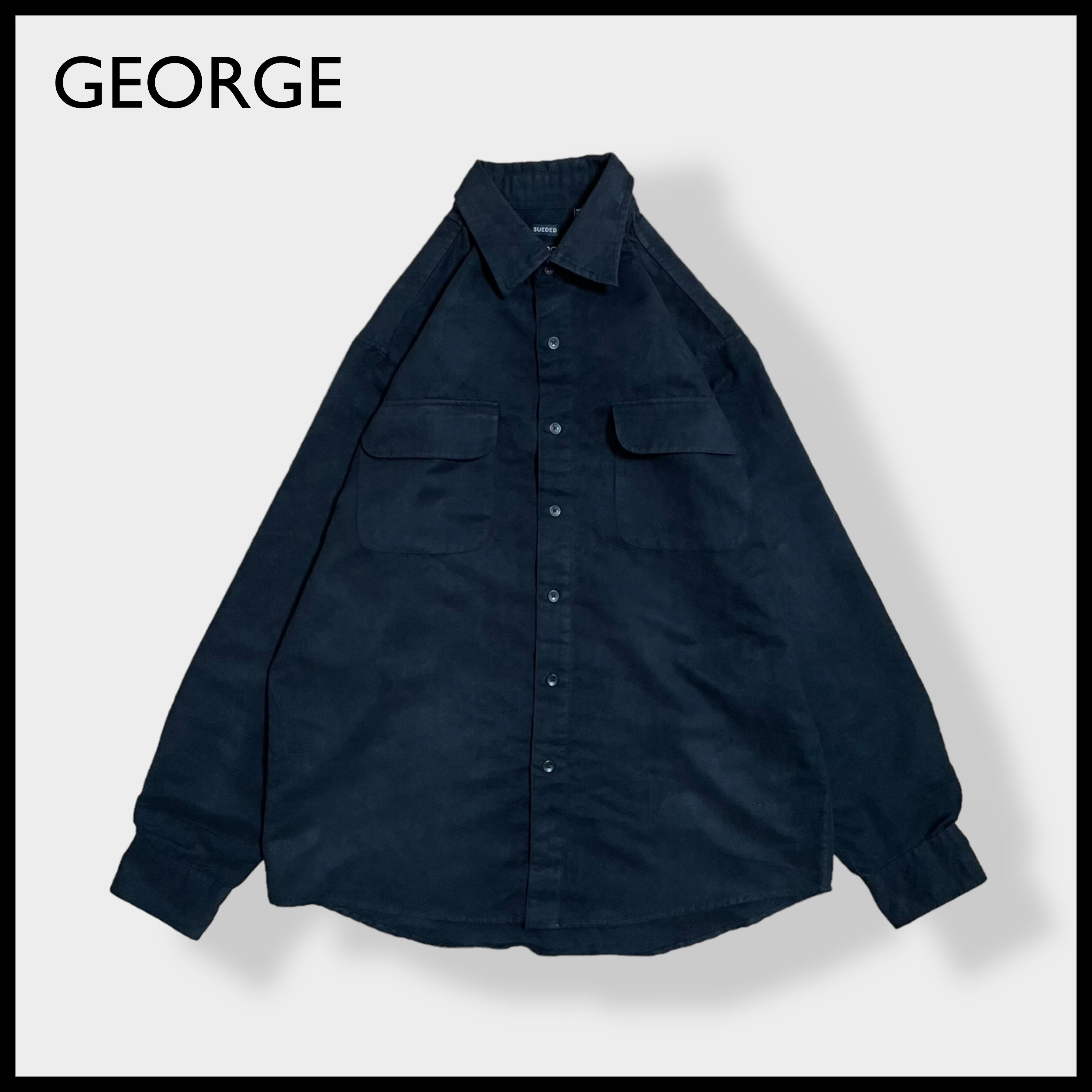 【GEORGE】フェイクスウェード 長袖シャツ ポリシャツ カジュアルシャツ M ブラック US古着