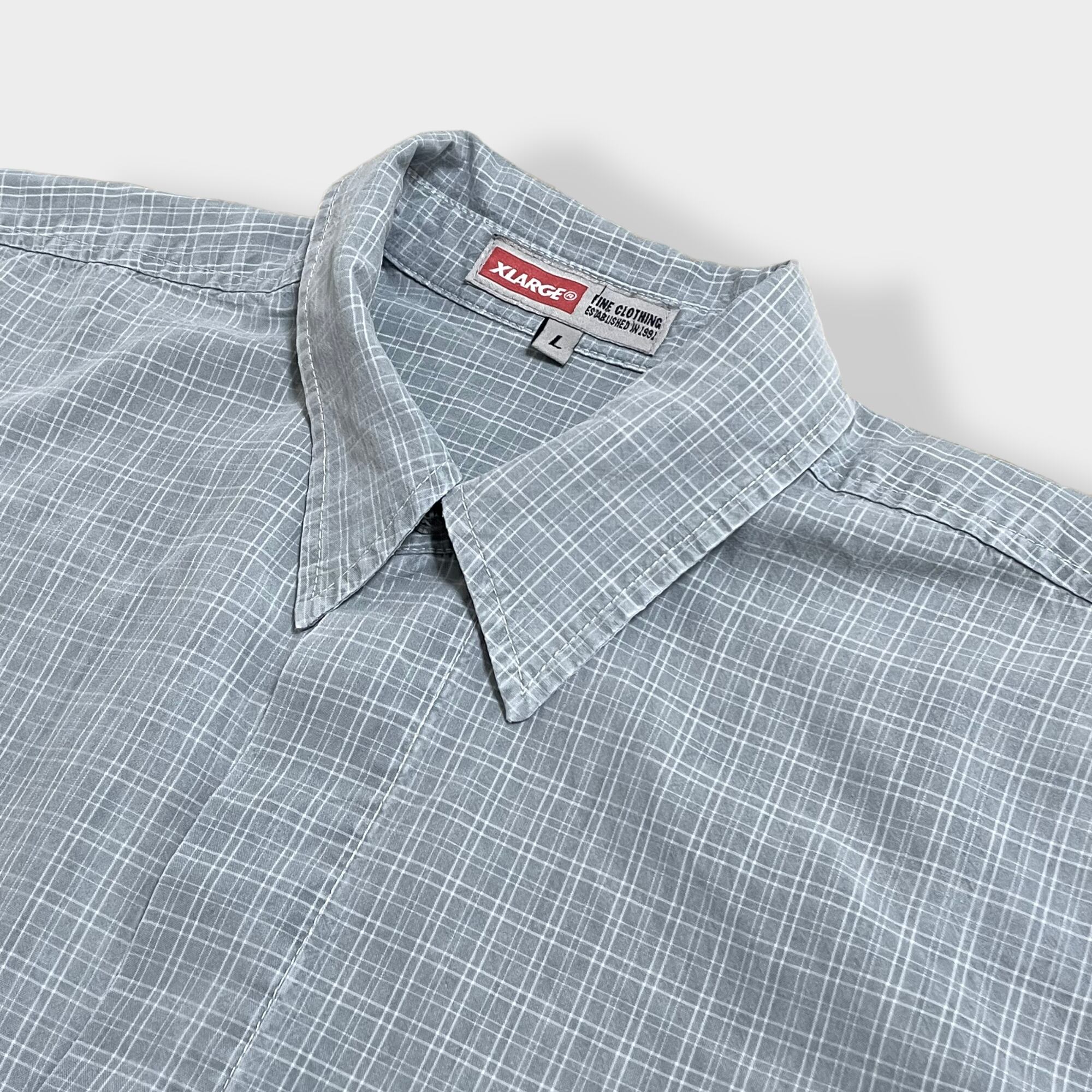 【XLARGE】USA製 デザインシャツ 切替 長袖シャツ カジュアルシャツ フロントフライ リヨセル生地 L エクストララージ US古着