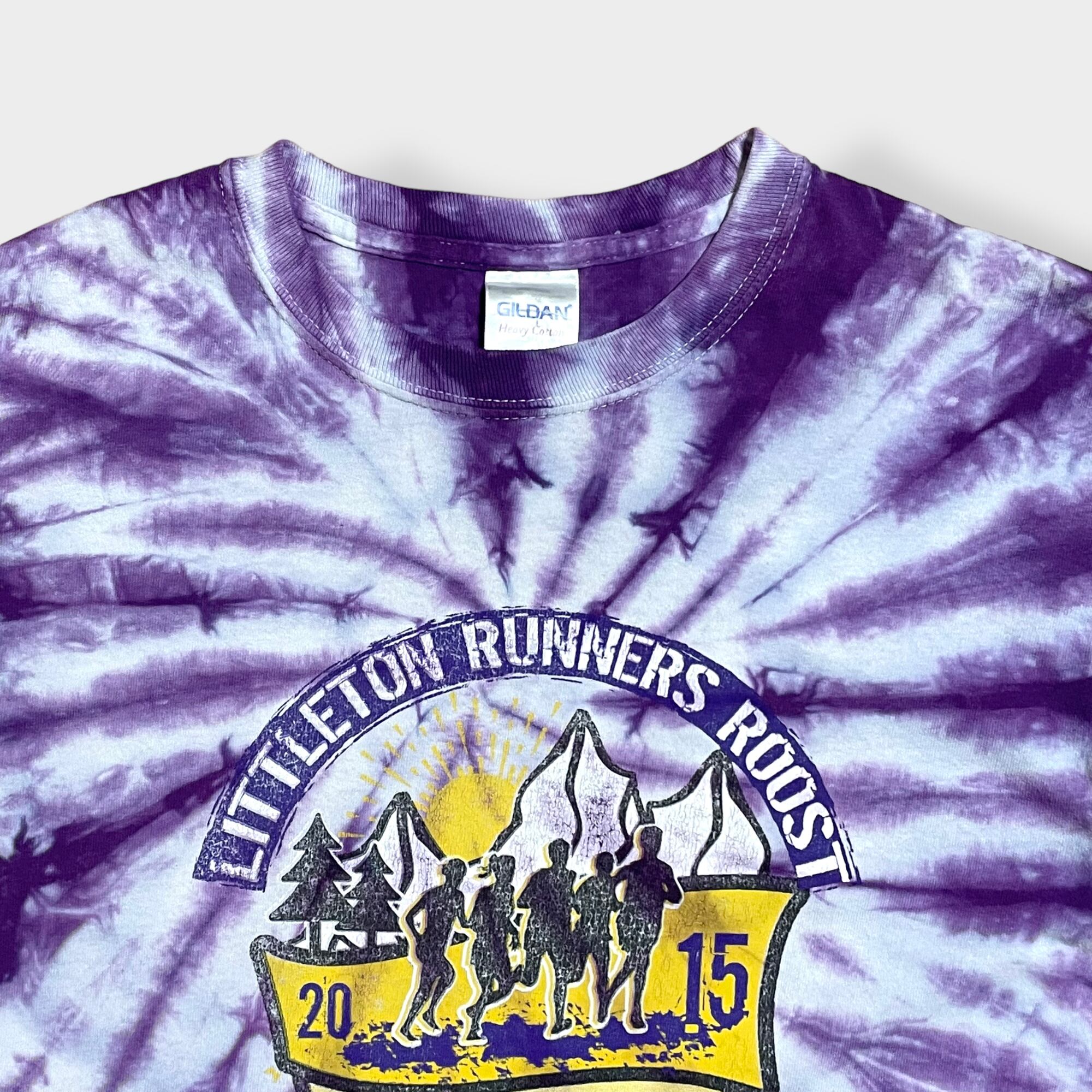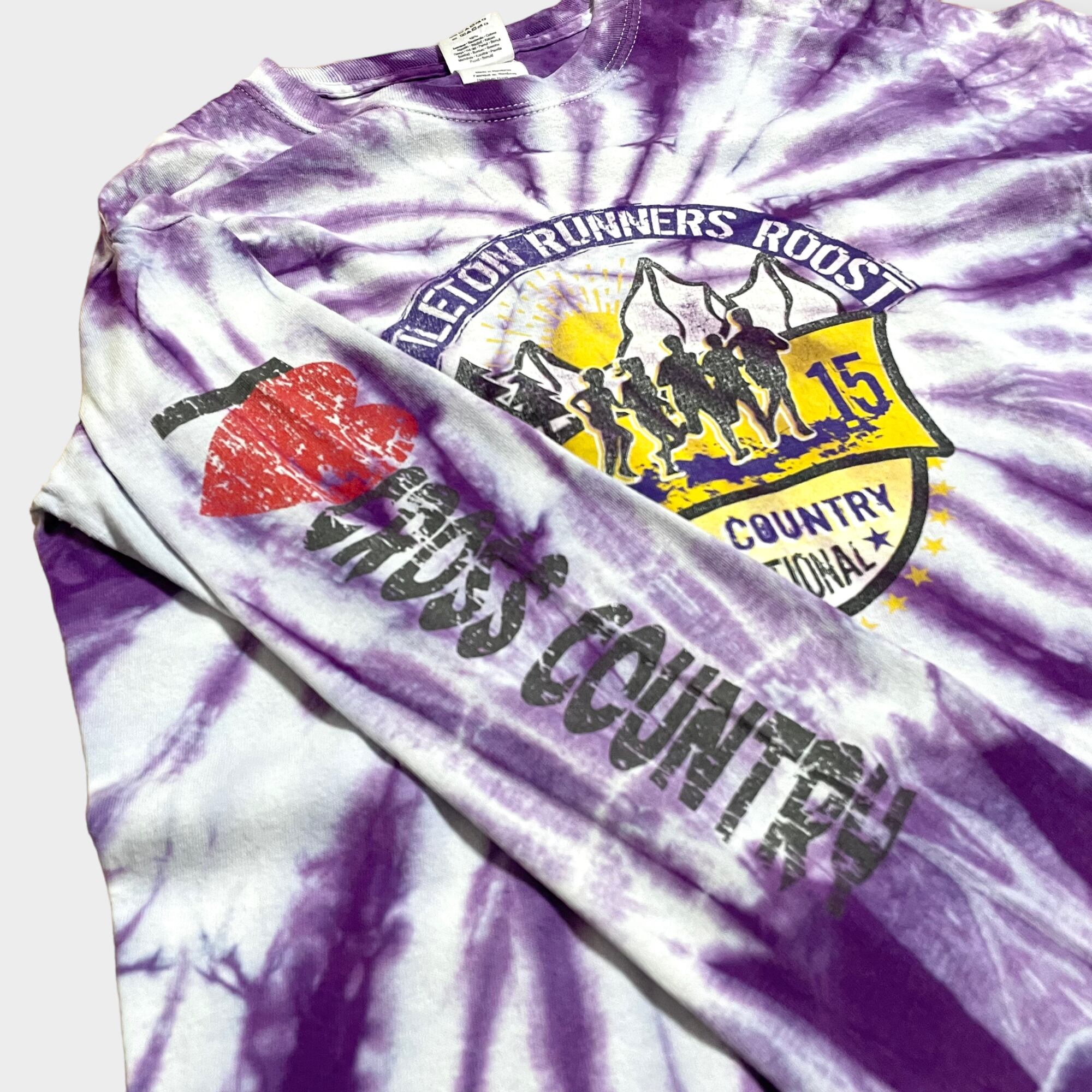 【GILDAN】タイダイ柄 ロンt 長袖Tシャツ ロングTシャツ long sleeve クロスカントリー CROSS COUNTRY ロゴ 袖ロゴ プリント S US古着