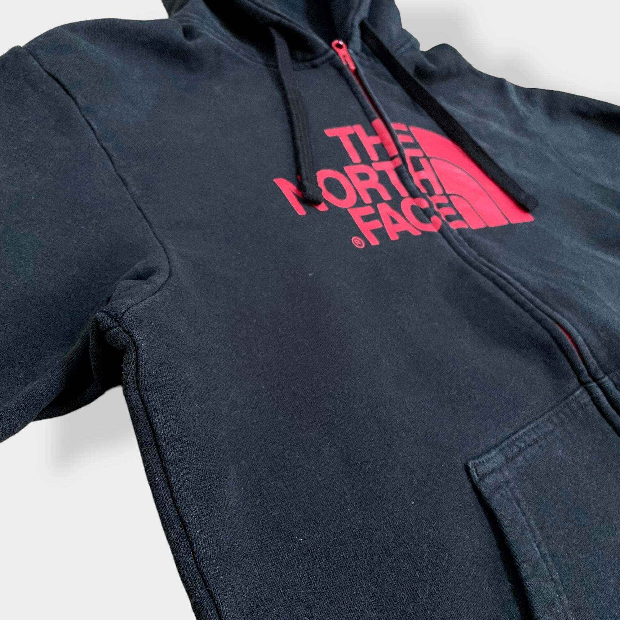 【THE NORTH FACE】ロゴ プリント パーカー フルジップ ジップアップ スウェット フーディー hoodie アウトドア M 黒 ノースフェイス us古着
