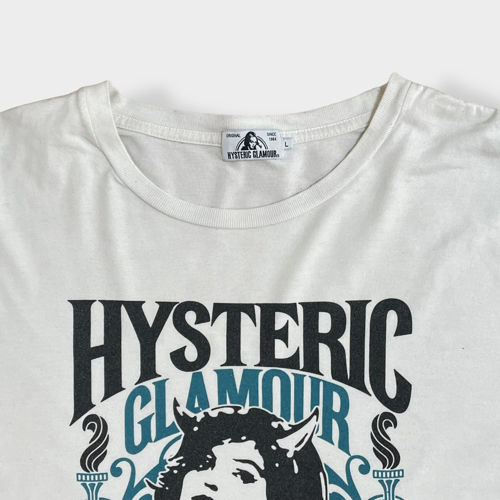 【HYSTERIC GLAMOUR】日本製 ロゴ プリントTシャツ イラスト ホワイト L ヒステリックグラマー 古着