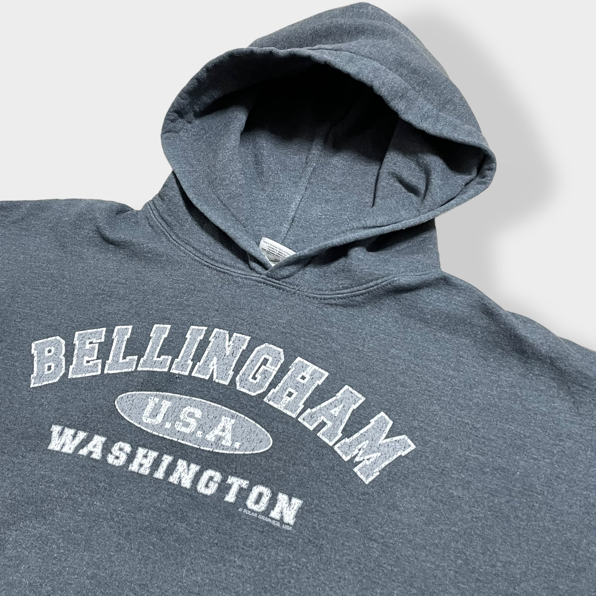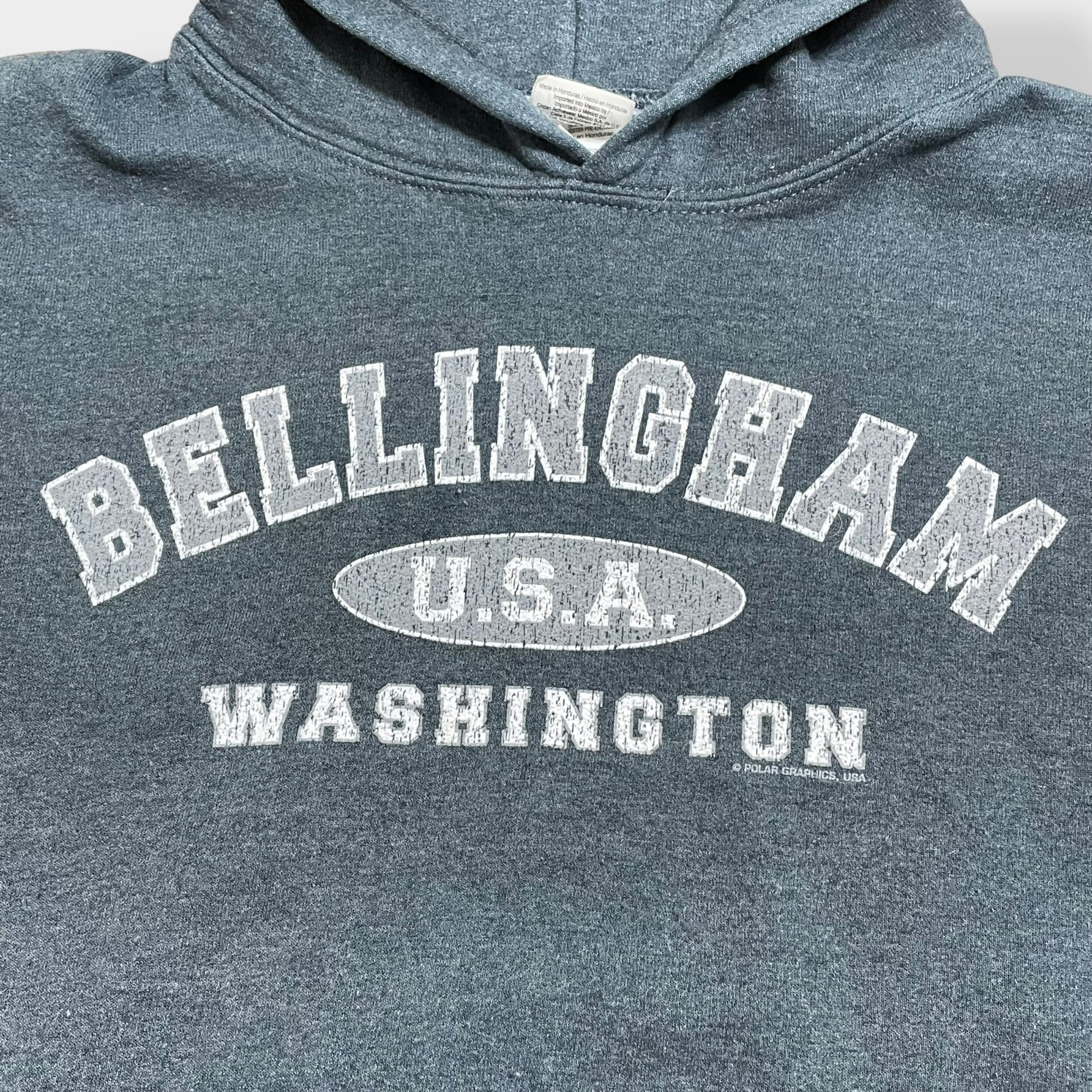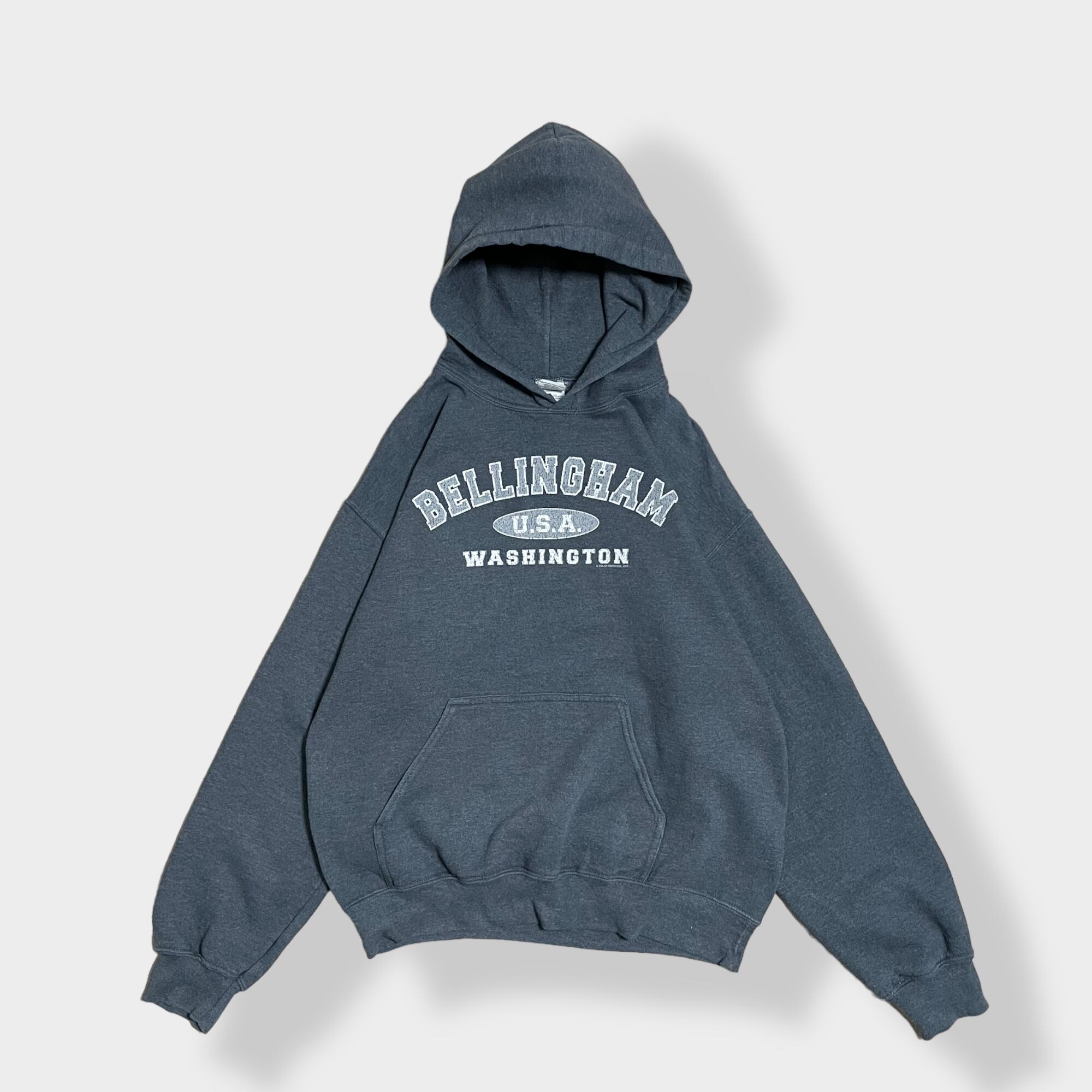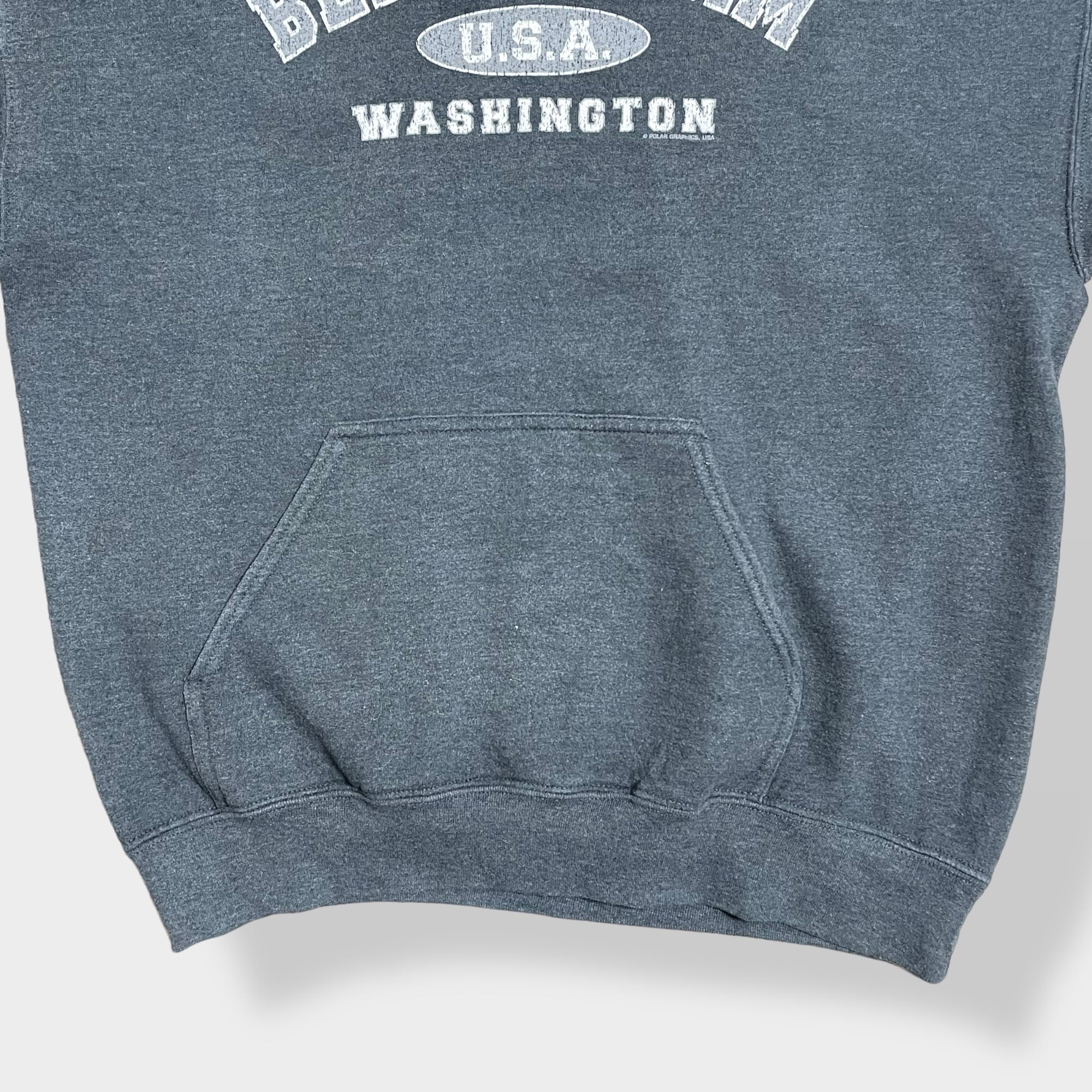 【GILDAN】 BELLINGHAM WASHINGTON パーカー フーディー hoodie プリント アーチロゴ スウェット トレーナー M US古着