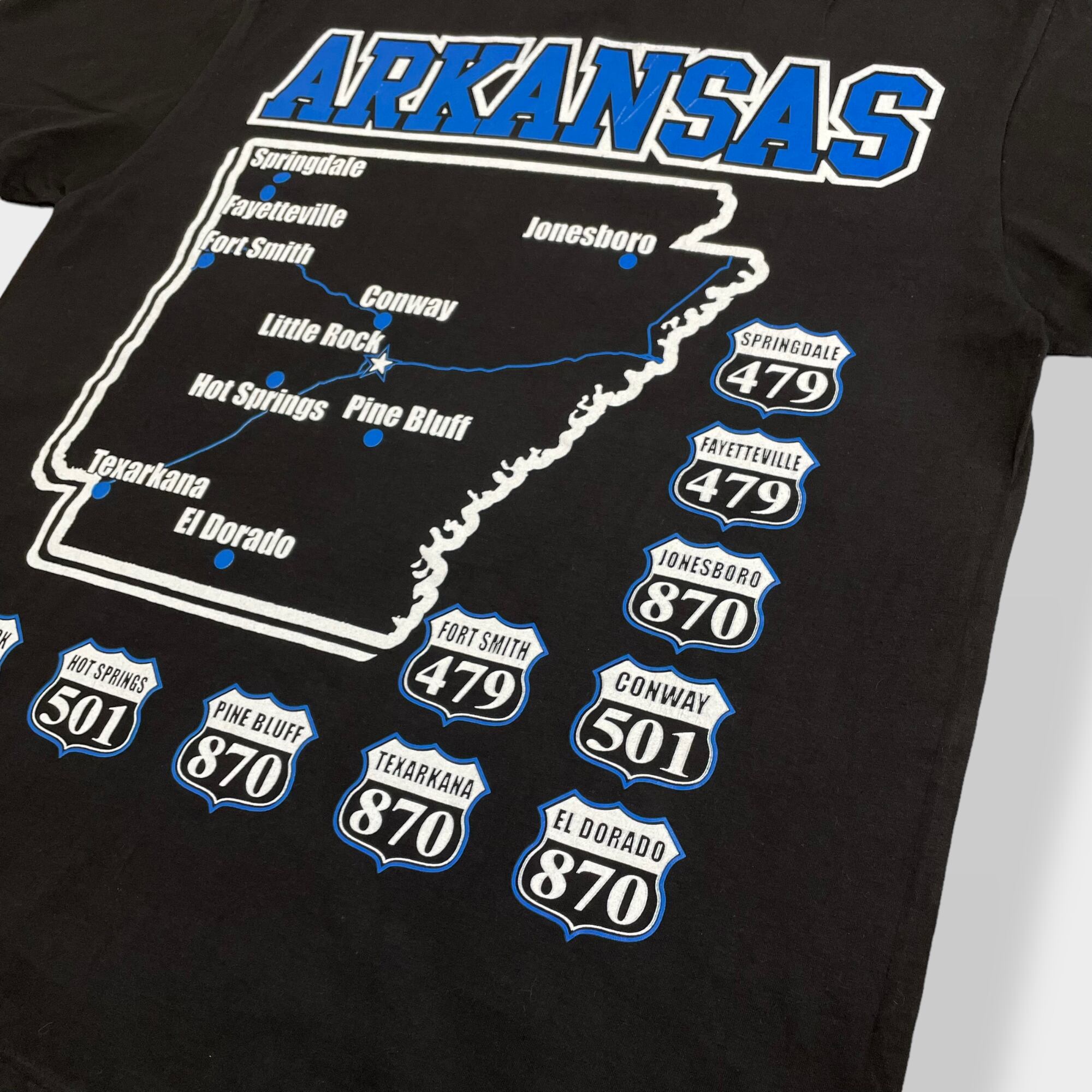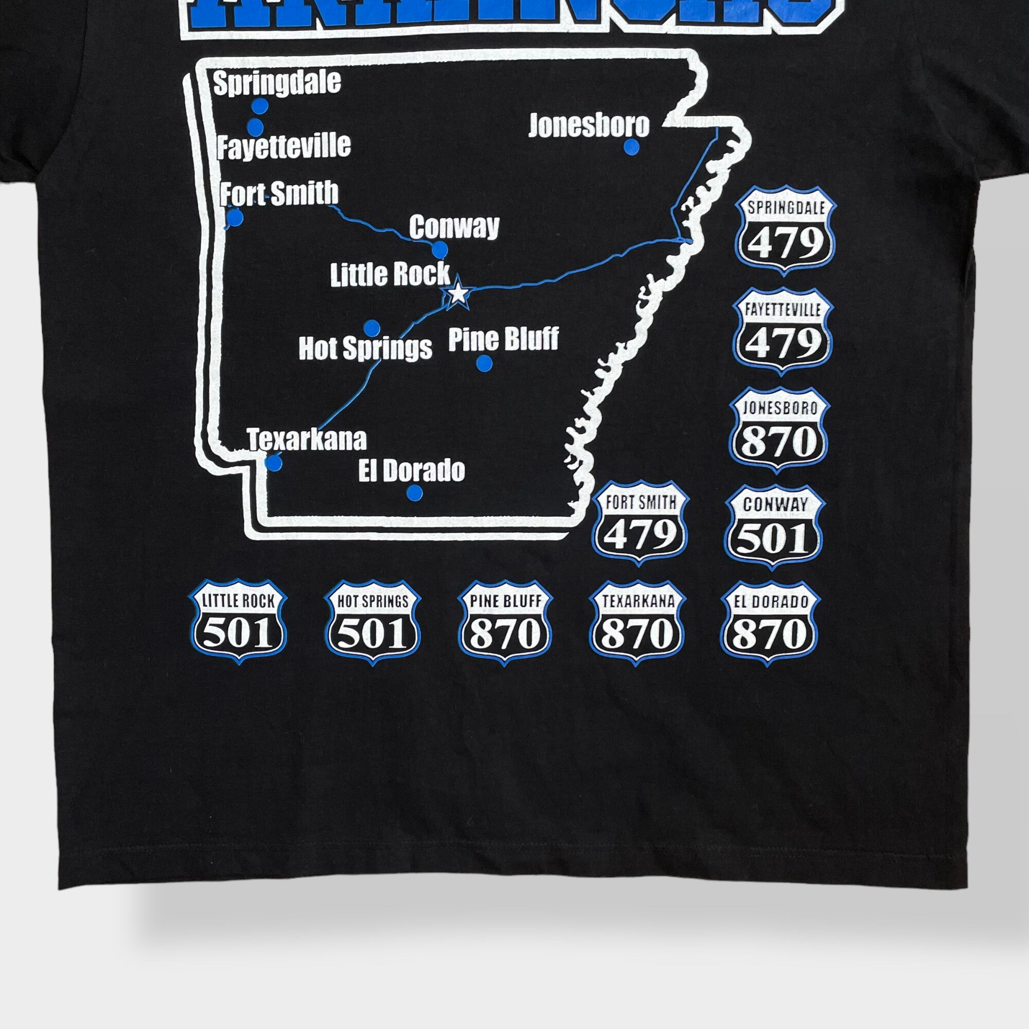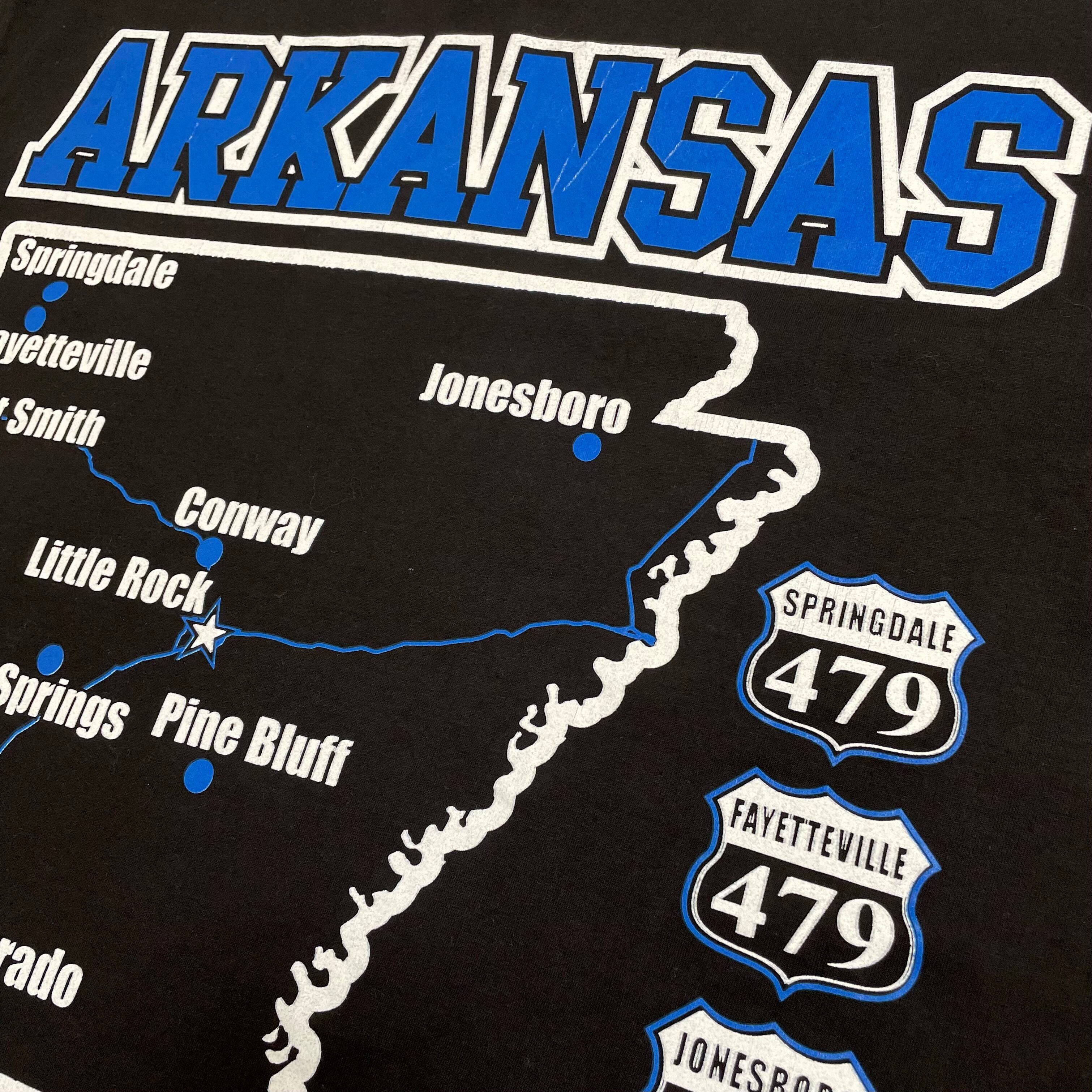 ARKANSASのロゴ、地図がプリントされたTシャツです。