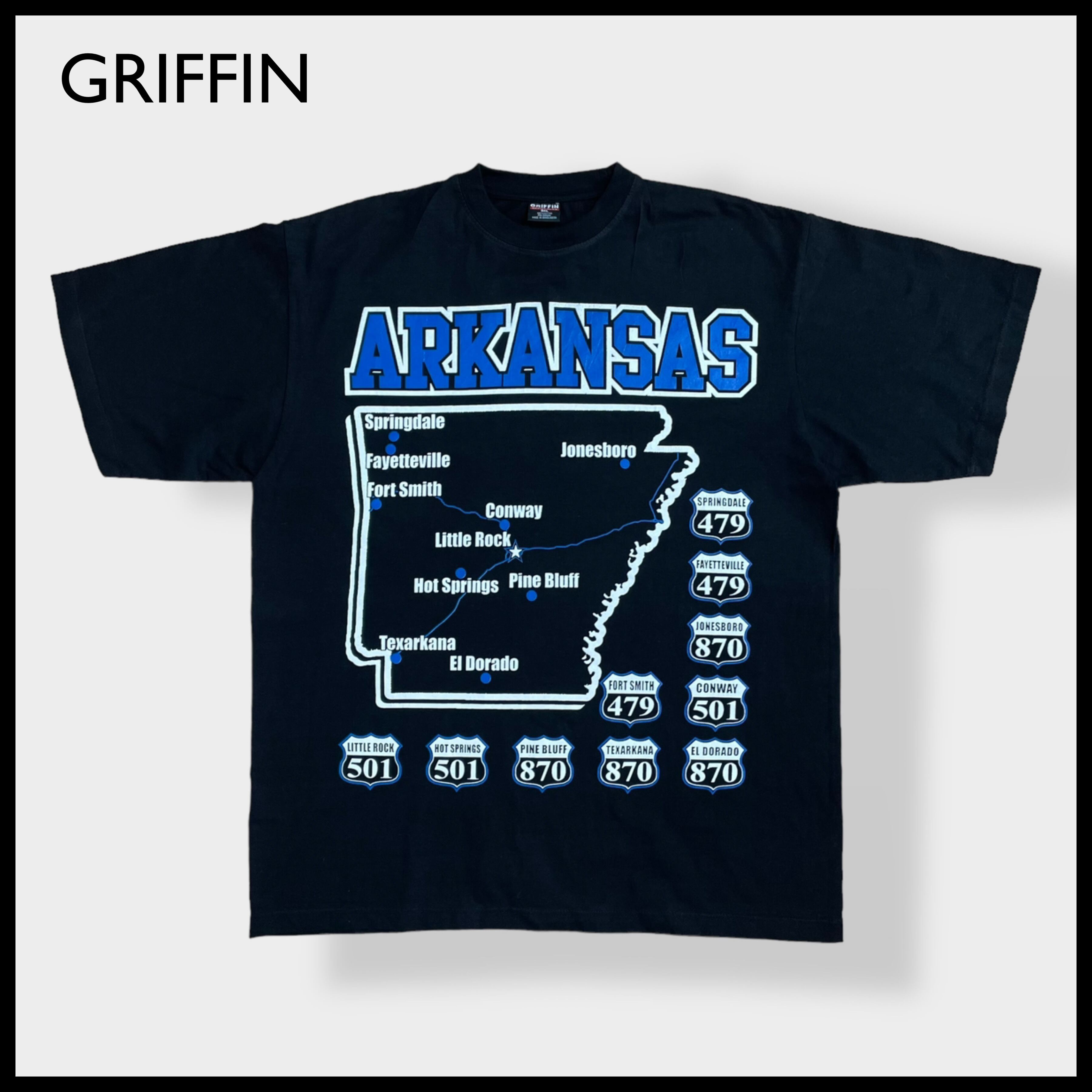 【GRIFFIN】3XL Tシャツ ビッグシルエット ビッグサイズ ARKANSAS ロゴ ビッグプリント アーカンソー 半袖 黒 グリフィン US古着