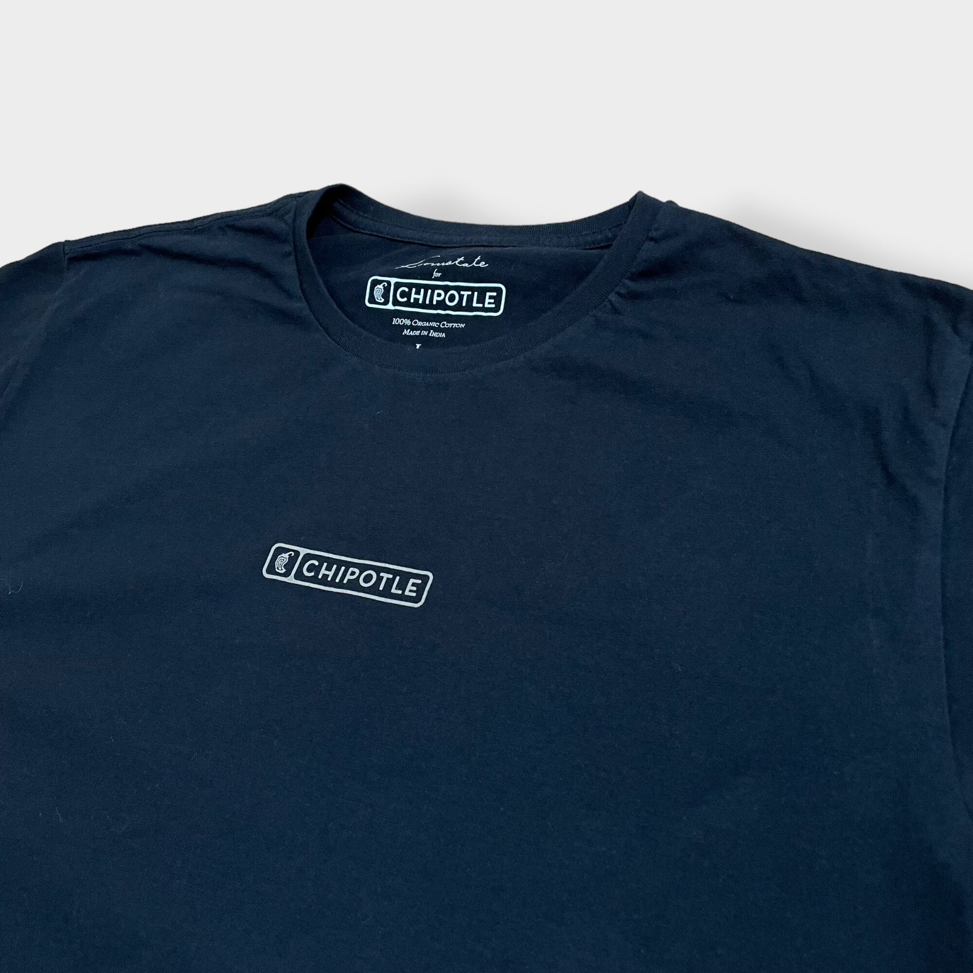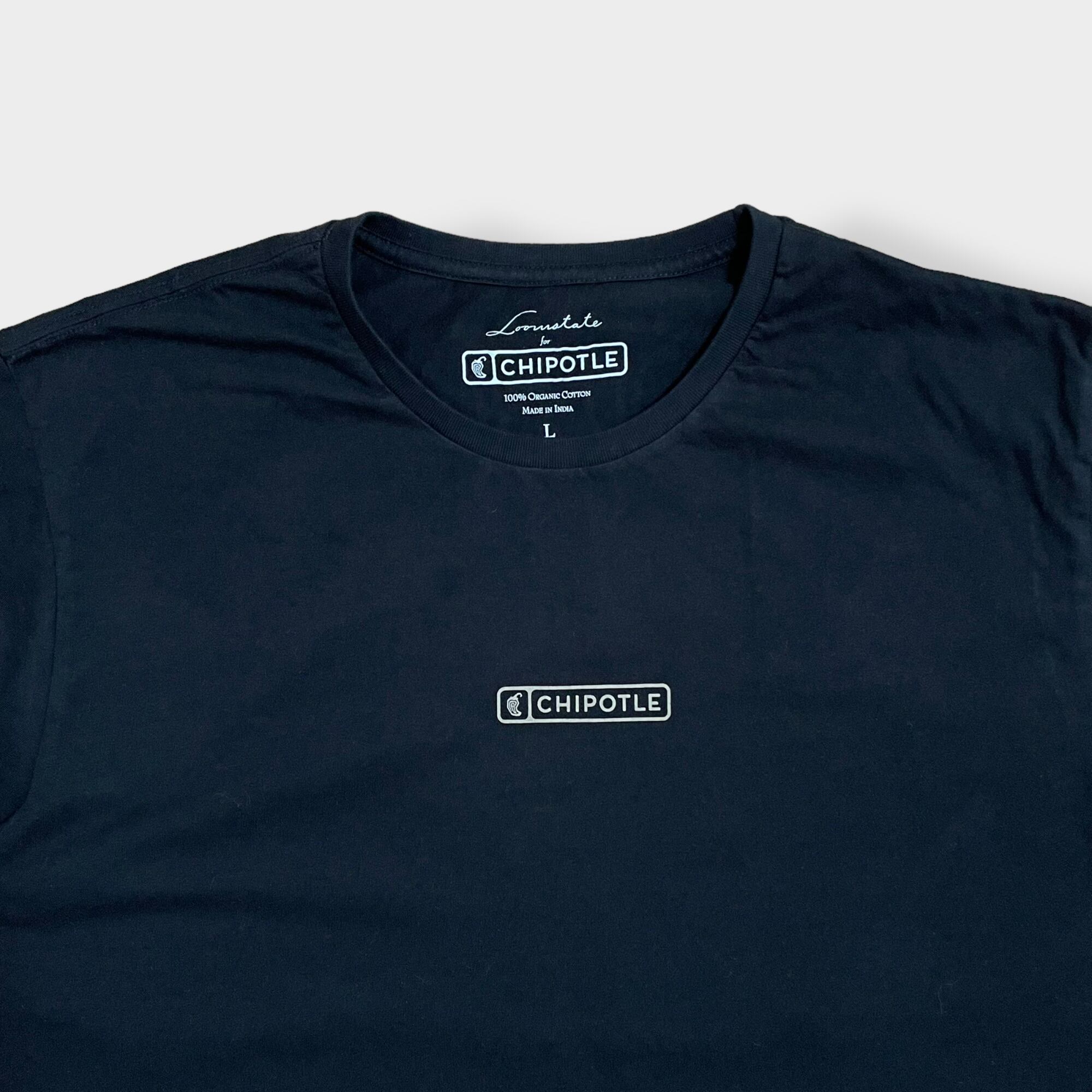 【CHIPOTLE】FOOD FIGHT ワンポイントロゴ Tシャツ バックプリント フードファイト 大食い 早食い L 半袖 黒 オーガニックコットン US古着