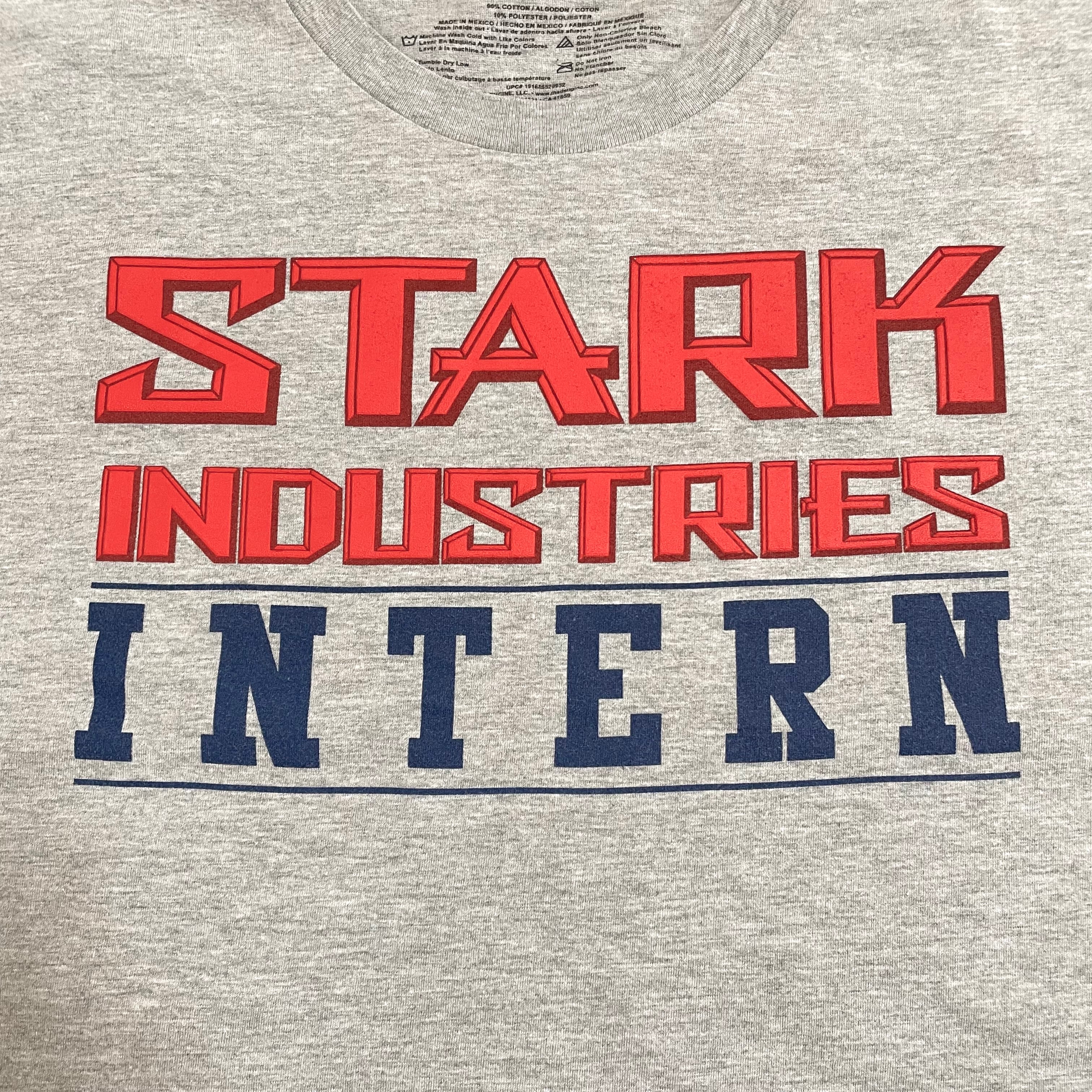 マーベルコミックに登場する架空の企業、スタークインダストリーズのプリントTシャツです。