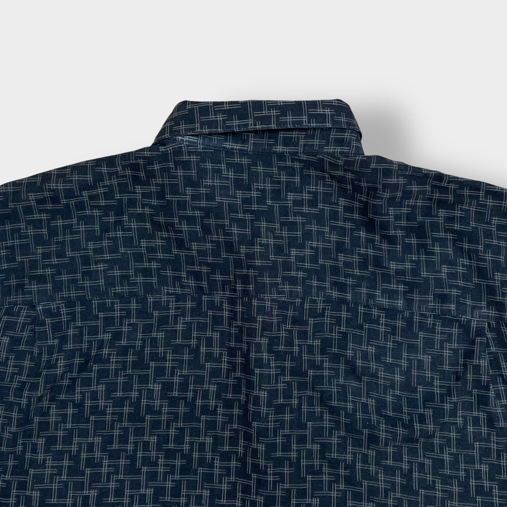総柄デザイン、左胸ポケット付き、両裾スリット入り、シルク&レーヨンの混紡で柔らかく手触りも良いです。