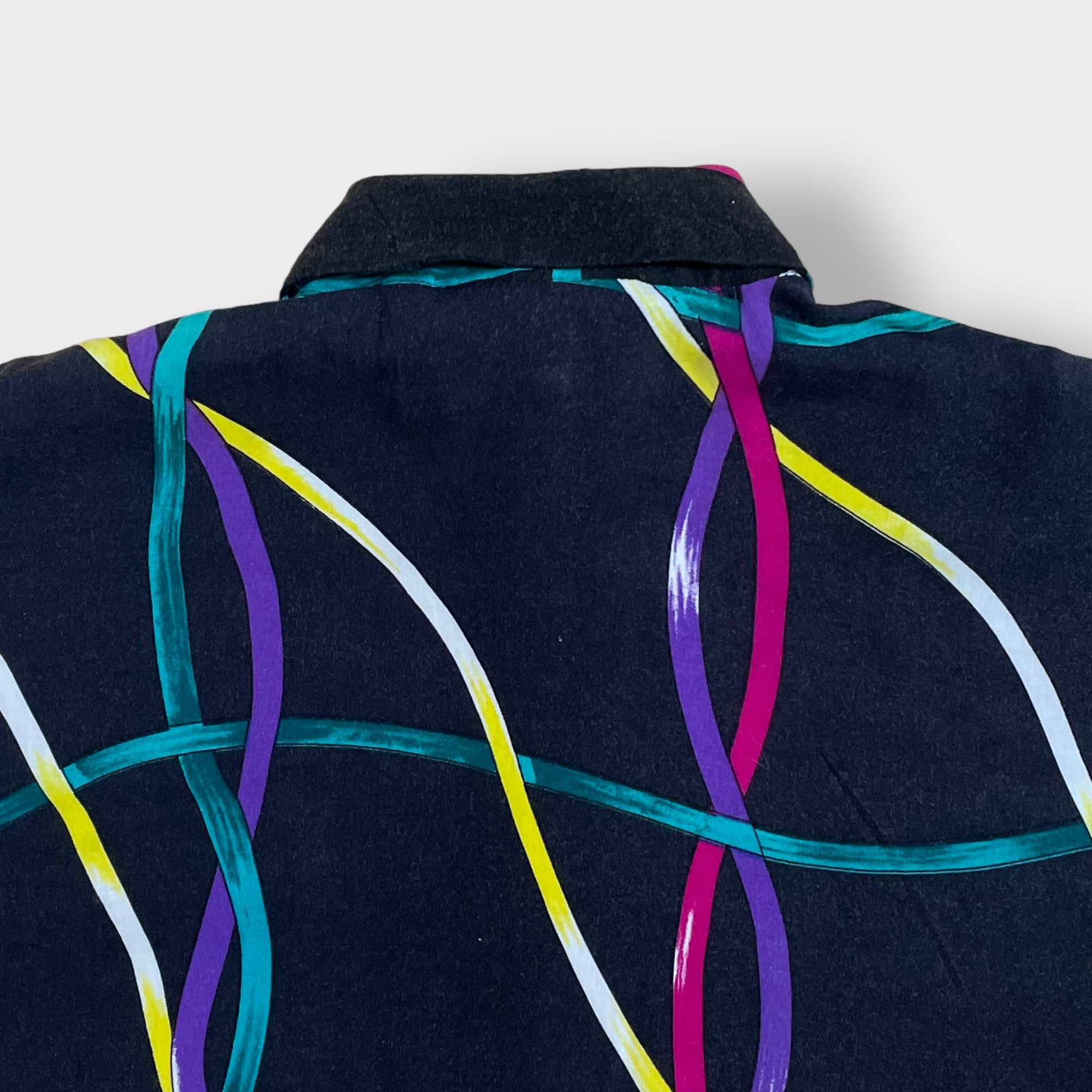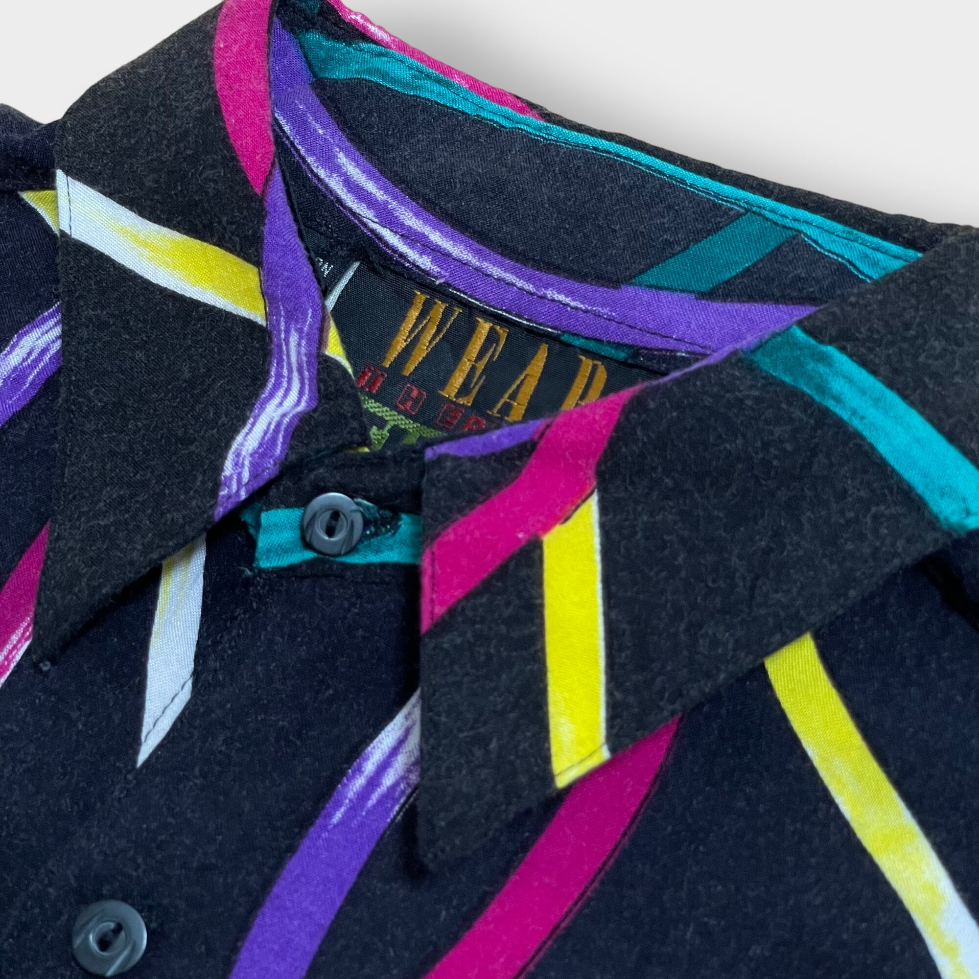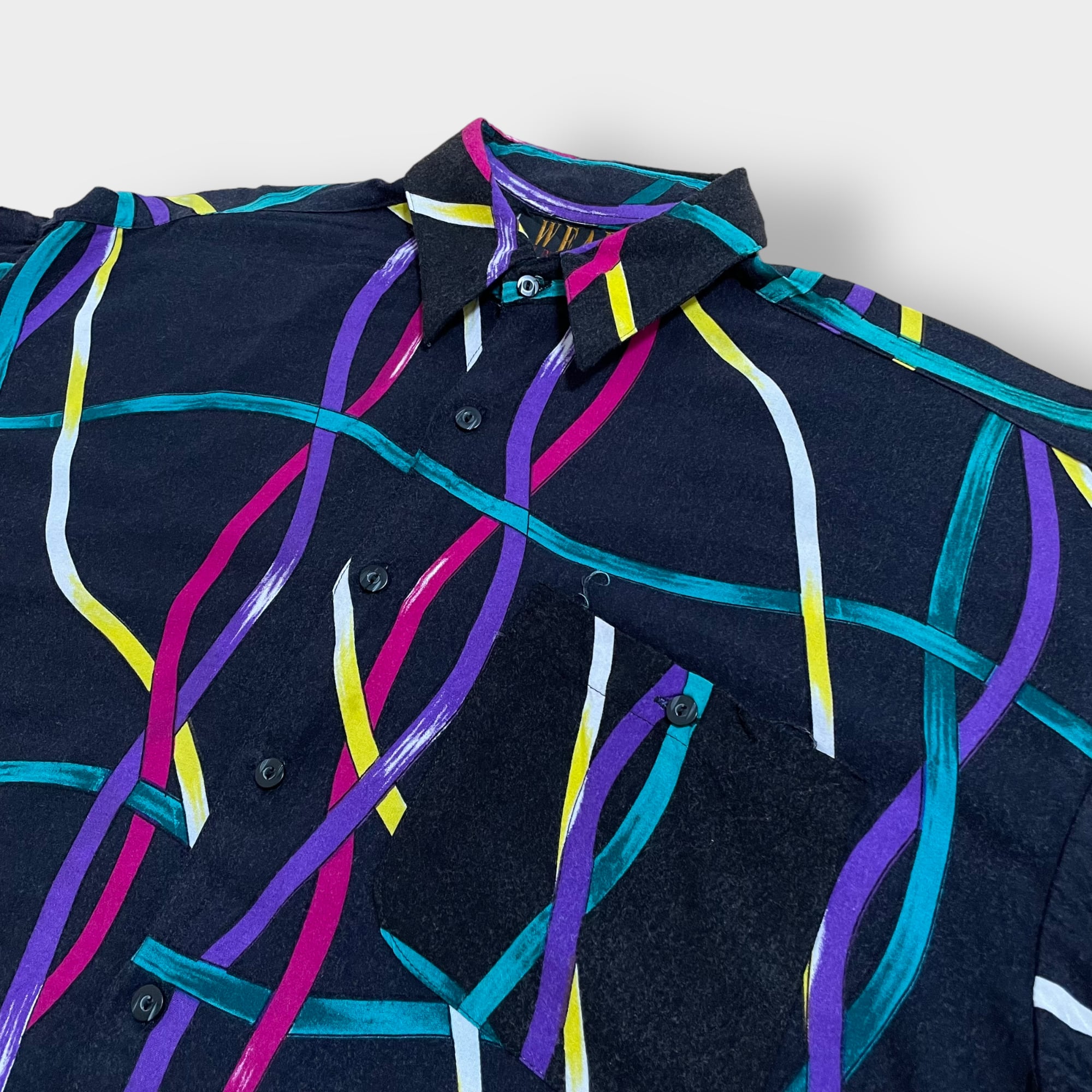 【WEAR THE RIGHT THING】半袖シャツ 個性的 総柄 柄物 ブラック レトロ オールパターン 韓国製 M US古着