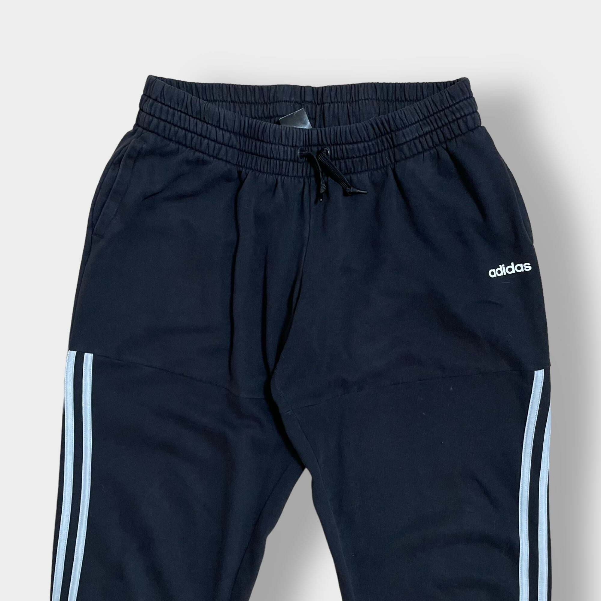 【adidas】スウェットパンツ ロゴ プリント 黒 LARGE スリーストライプ アディダス US古着